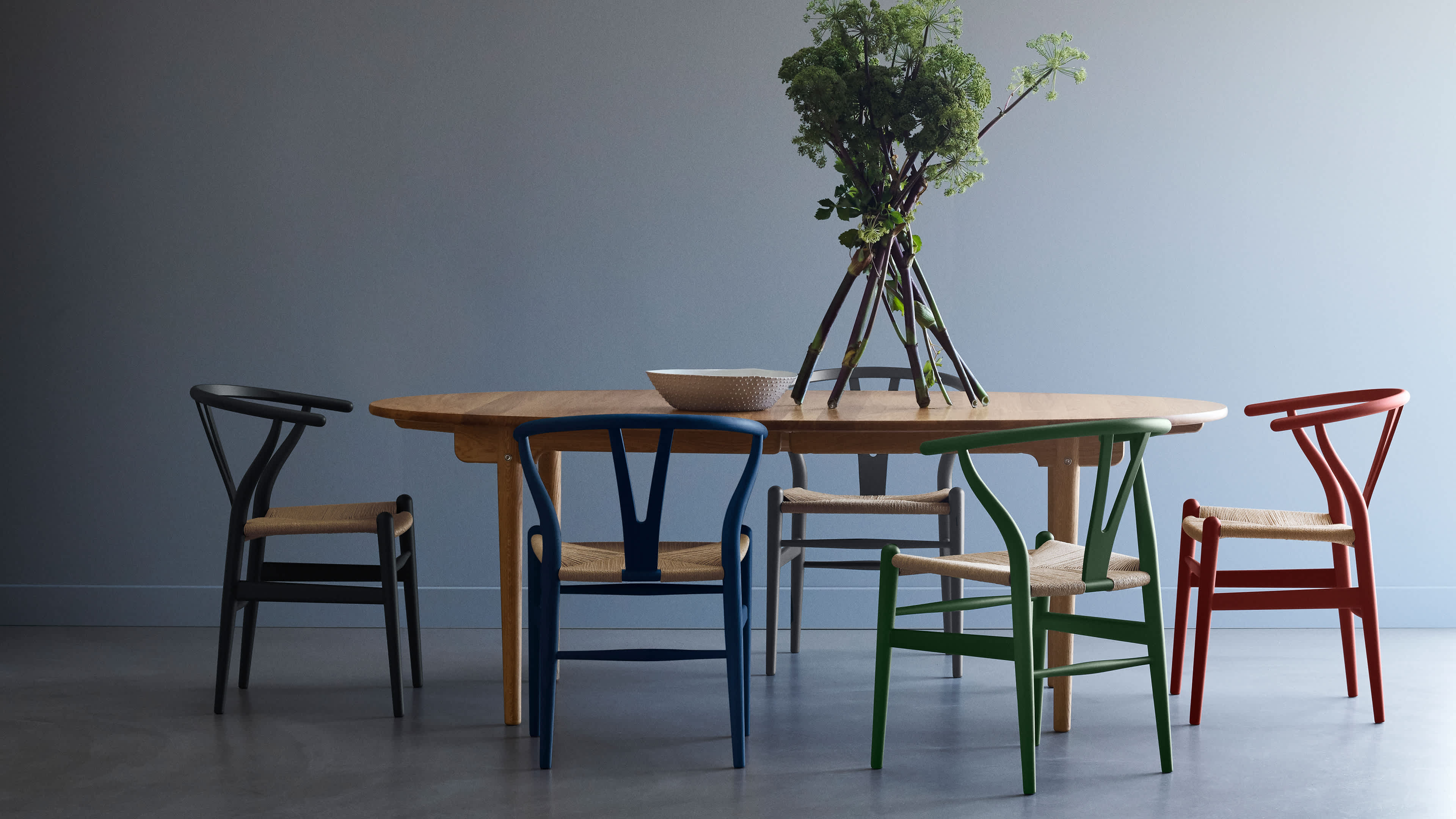 CH24 Soft Edition opdaterer den ikoniske Y-Stol i en mat blå nuance. Se den nye farve her.