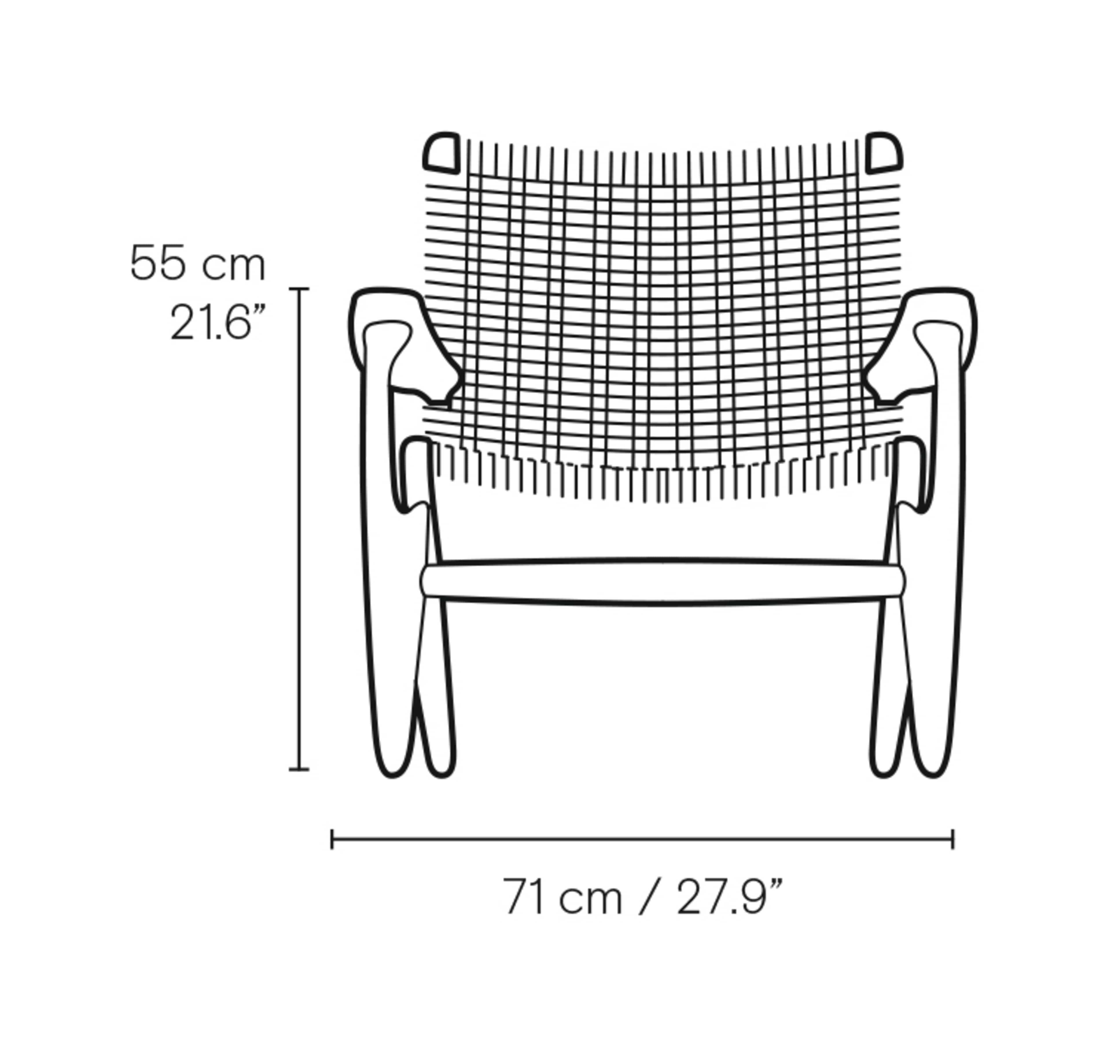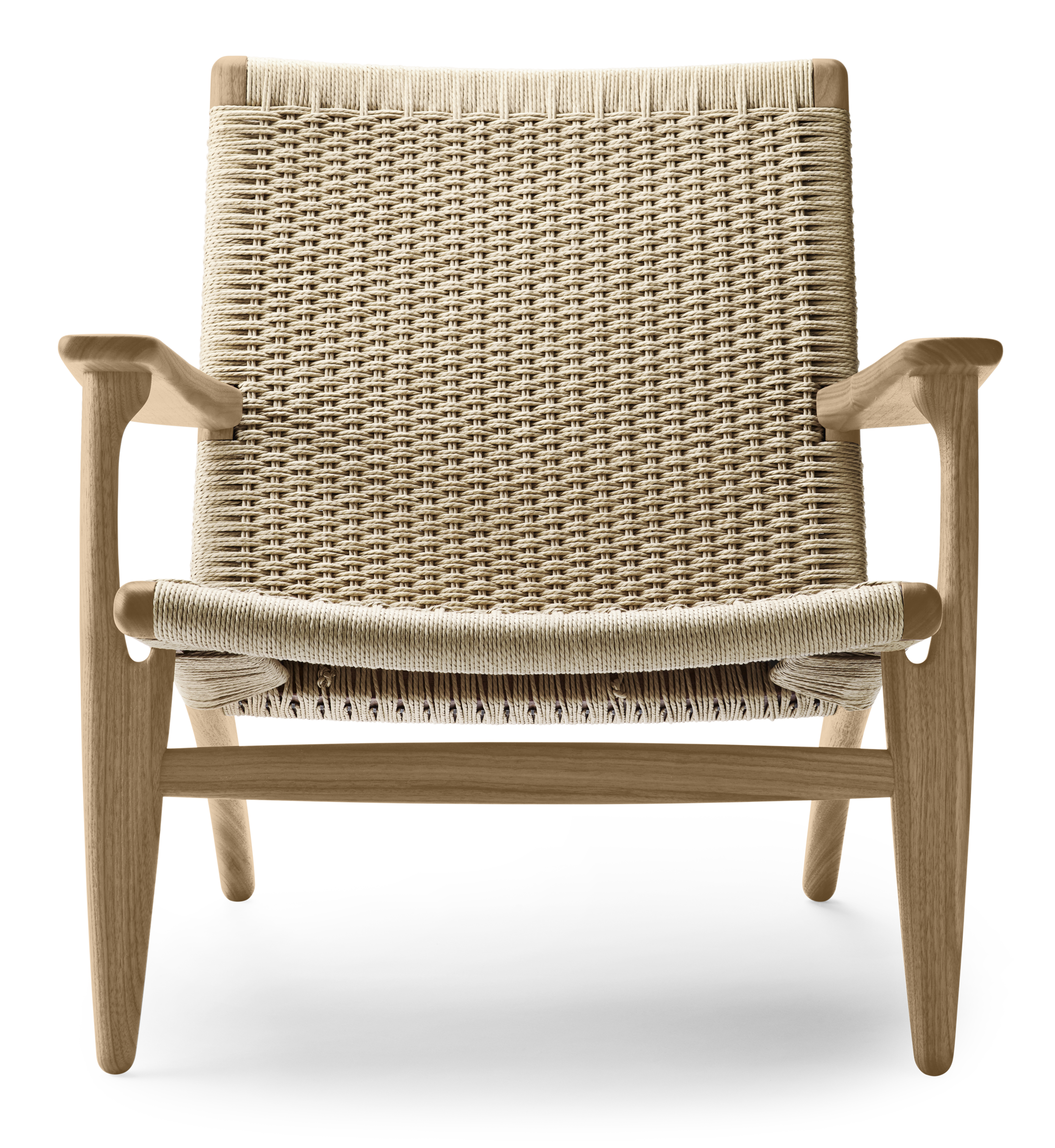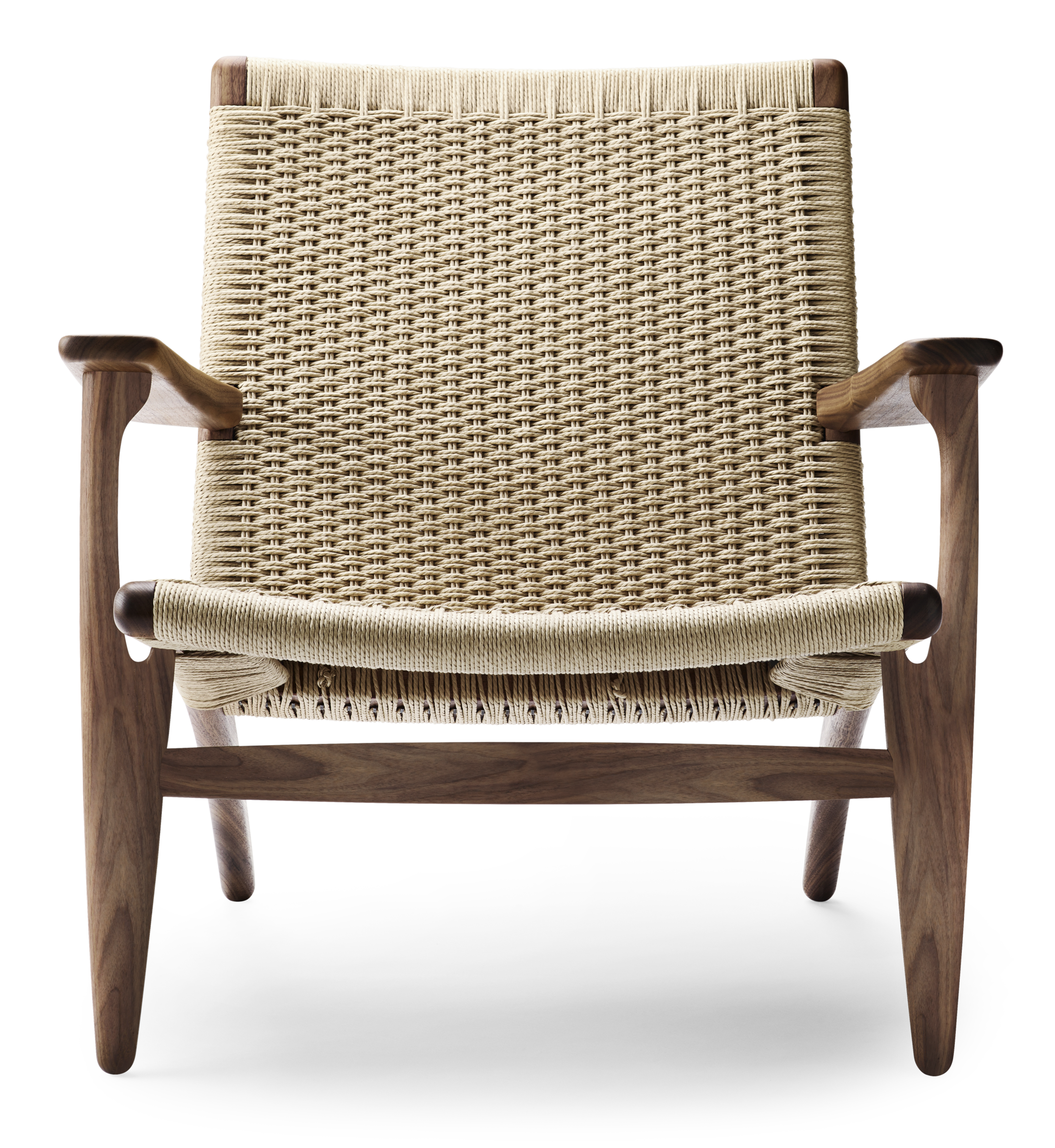 CH25 loungestolen har, som mange af Hans J. Wegners andre ikoniske design, en på én gang enkel og markant form. Ved sin introduktion vakte den også opsigt på grund af Hans J. Wegners valg af materiale på rygstykket og sædet. Det tvundne papirgarn, der var en erstatning for søgræs, blev udviklet under Anden Verdenskrig, men var hidtil ikke blevet anvendt i møbler. Hans J. Wegner var ligesom efterfølgende generationer begejstret for materialets udseende og optimale slidstyrke uden stræk. CH25 loungestolen er forblevet særdeles populær og har været i uafbrudt produktion siden 1950 – et tydeligt bevis på Hans J. Wegners visionære tilgang. En dygtig fletter bruger 10 timer og omkring 400 meter papirgarn på at håndflette sædet og ryggen i en særlig fletteteknik, der minder om vævning, og som går igen på begge sider af ryglænet. Resultatet af den krævende proces er en enestående stol, der er betagende fra alle vinkler.