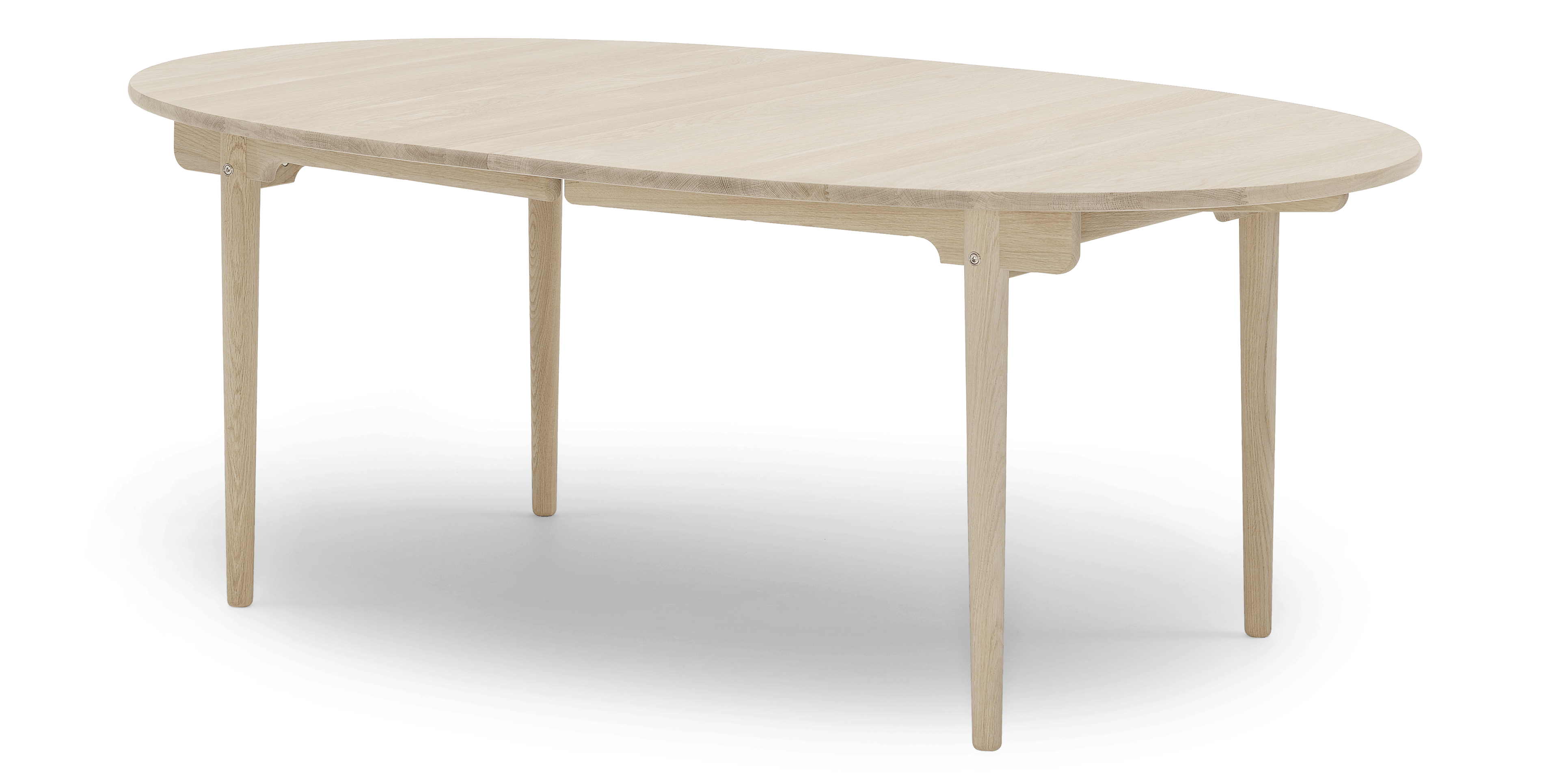CH338 spisebordet, som er beregnet til seks personer, er en forlænget udgave af Hans J. Wegners CH337 spisebord fra 1962. Med sin blødt formede plade i massivt træ virker bordet samlende, og med sine op til 14 pladser er det velegnet til møder såvel som større familiesammenkomster. CH338 er det mellemste af tre borde i samme design, som alle har elliptiske plader med tværgående årer og udtræk, og som derfor kan trækkes fra hinanden for udvidelse med op til fire ilægningsplader. I serien findes også CH337 og CH339.