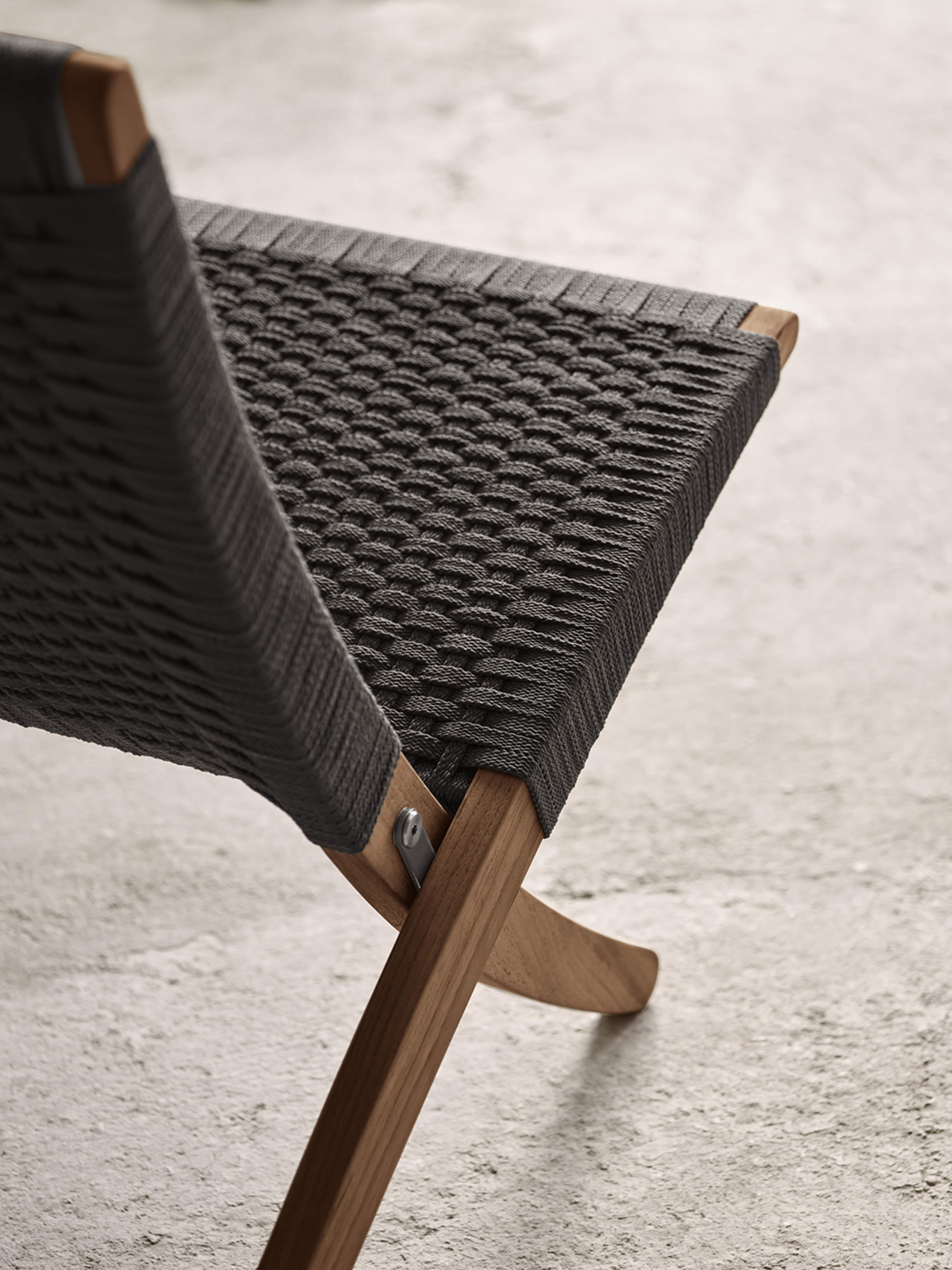 Cuba-stolen, MG501 outdoor, er flettet med tyndt reb fremstillet af fladvævet polypropylen. Polypropylen er en stærk syntetisk fiber, som er ideel til udendørs brug, da den er nem at rengøre og ikke suger fugt. Polypropylen er desuden nemt at genanvende.