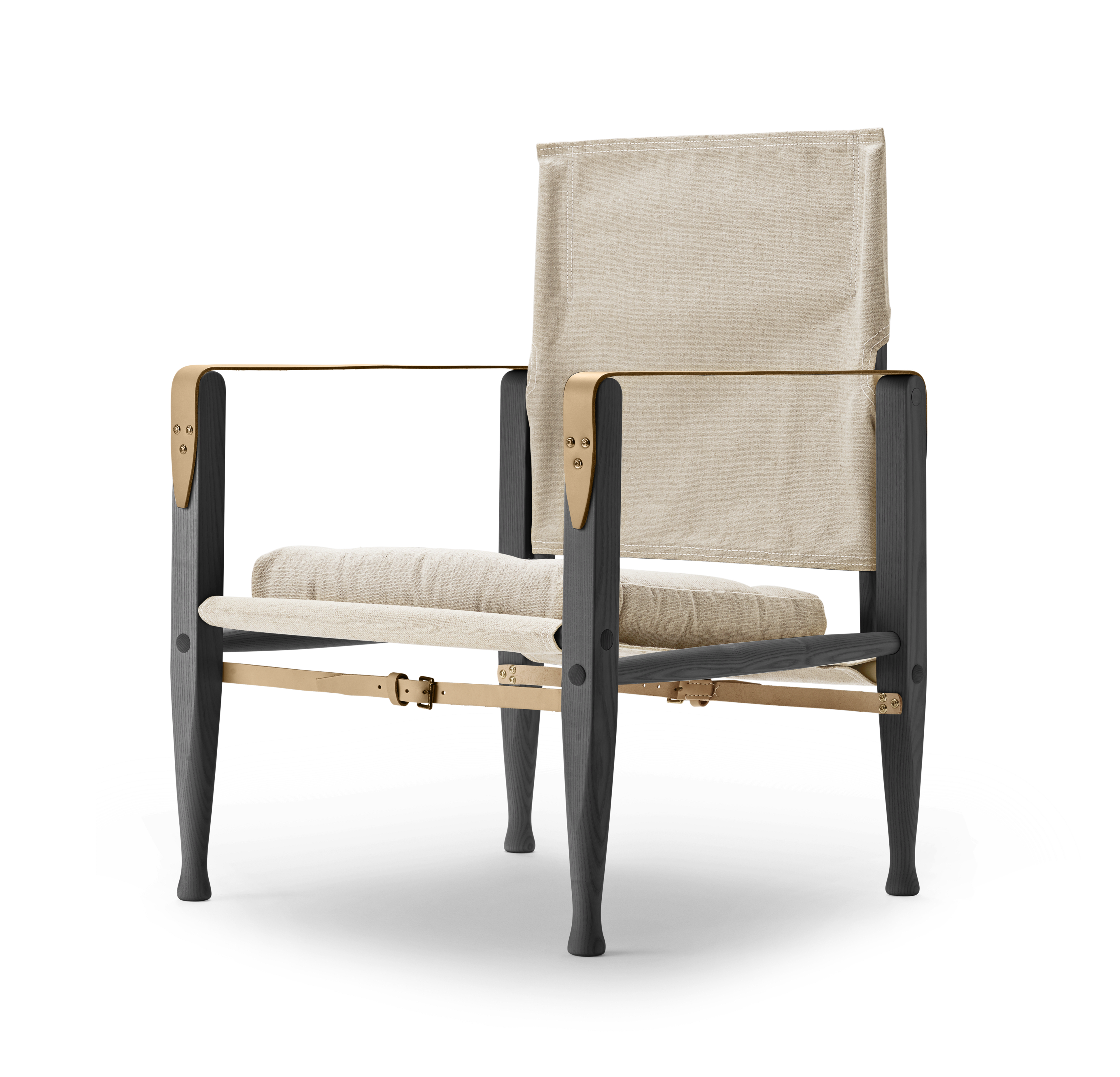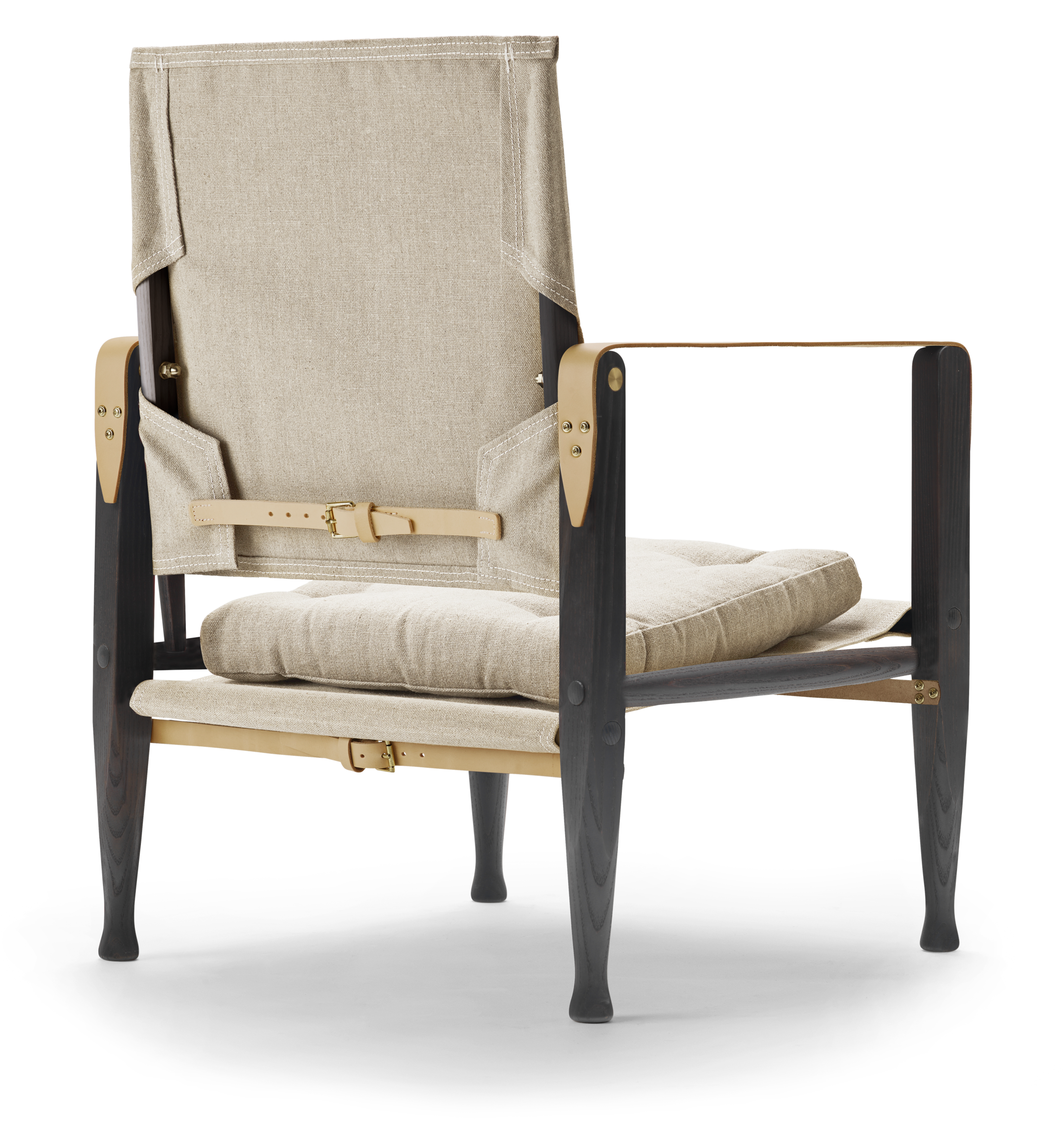 Der KK47000 Safari Chair von Kaare Klint ist eine Verfeinerung der Stühle, die ein amerikanischer Kameramann und seine Frau auf einer afrikanischen Safari mitgebracht hatten. Klint bemerkte sie auf den Fotos des Paares. Sie basierten höchstwahrscheinlich auf den indischen Roorkhee Chairs des britischen Militärs – den vielleicht ersten Beispielen für selbst montierte Möbel. Das Original erforderte keine Werkzeuge, war unverleimt und intelligent konstruiert: für mehr Stärke und Stabilität saßen die Verbindungen fester, sobald man auf dem Stuhl Platz nahm. Klint wollte den Lounge Chair vereinfachen, klarer gestalten und verfeinern. Der endgültige Safari Chair wurde im Jahr 1933 auf der Ausstellung der Kopenhagener Tischlerinnung ausgestellt. Als Inspiration diente sein britischer Vorgänger. Klints Stuhl überzeugt durch seinen systematischen Ansatz, erstklassige Handwerkskunst, gut durchdachte Proportionen und bemerkenswerte Materialeffekte.