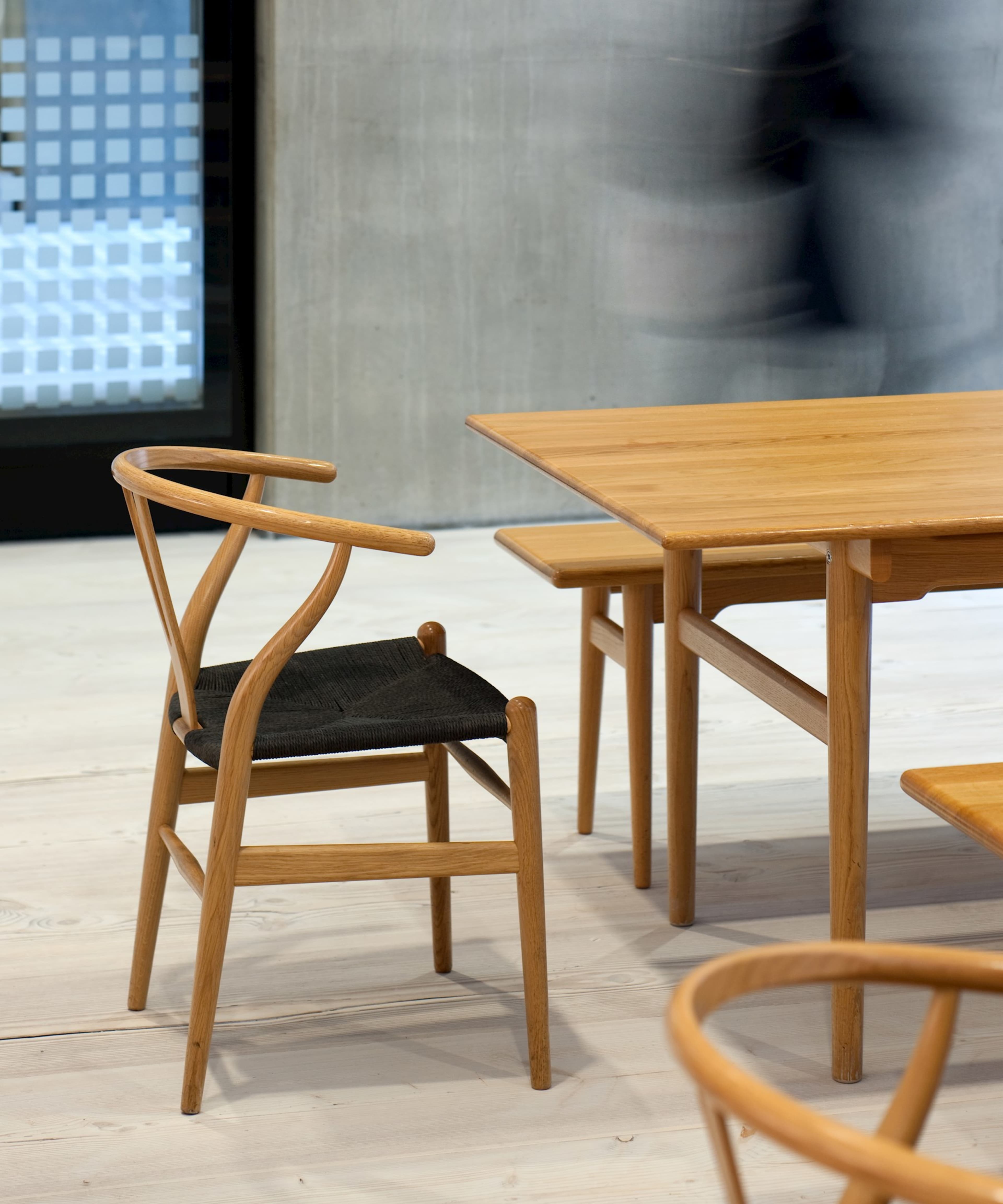 When you choose a product from Carl Hansen & Søn, you get more than just a piece of furniture. You will become part of a long and proud tradition of beautiful and distinctive craftsmanship where nothing is left to chance. We are the world’s largest manufacturer of furniture designed by Hans J. Wegner, and we also manufacture furniture created by renowned furniture designers such as Arne Jacobsen, Børge Mogensen, Ole Wanscher, Kaare Klint, Poul Kjærholm, Bodil Kjær, and Tadao Ando. Carl Hansen & Søn represents more than 100 years of Danish design history, and our furniture is sold worldwide.