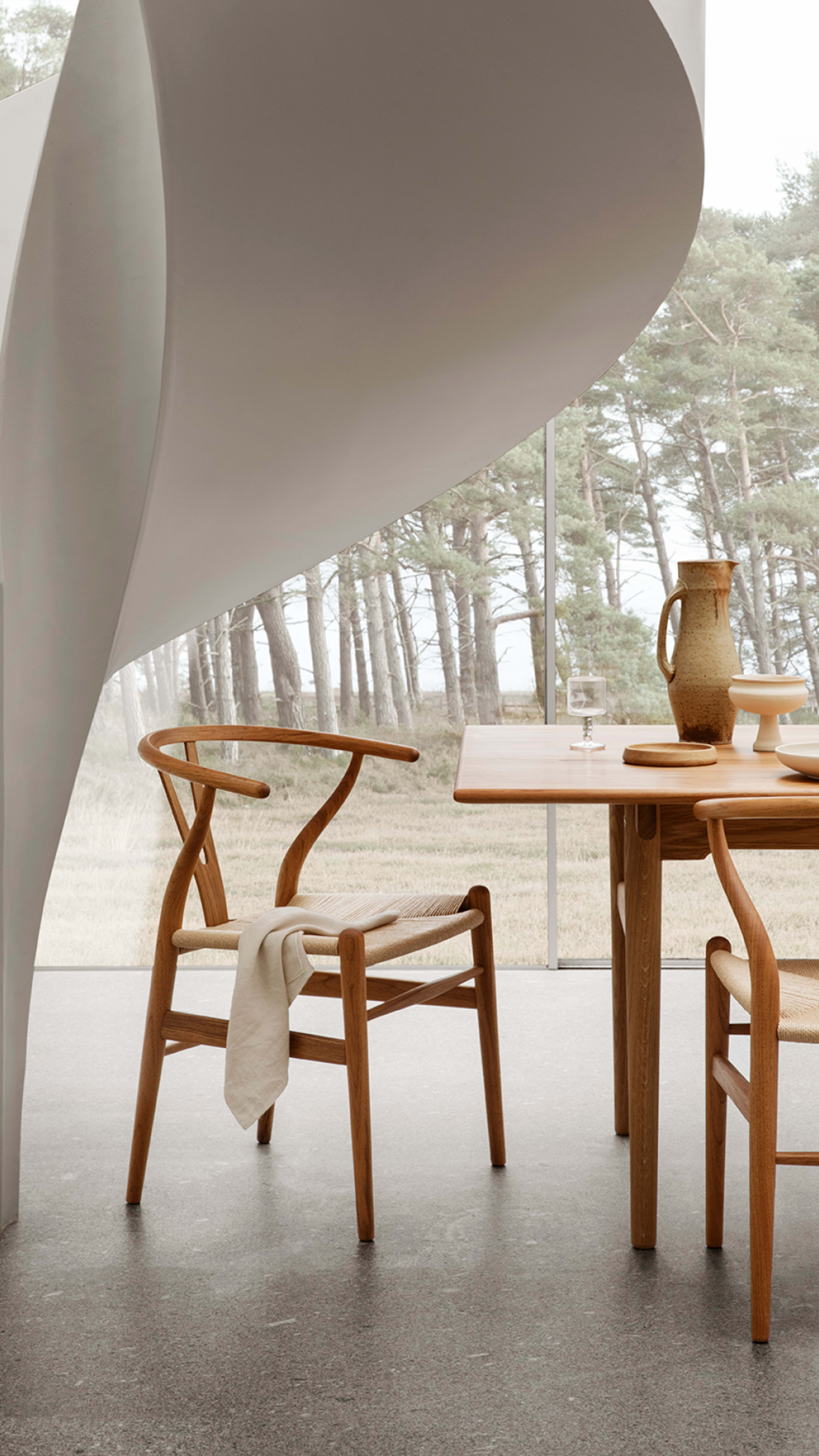 カール・ハンセン&サンの製品を選ぶことは、単に家具を買うことと同義ではありません。それは、美しく磨き抜かれたクラフトマンシップの長く誇り高い伝統の一部になることなのです。私たちはハンス J. ウェグナーのデザインを世界で最も多く製作する家具メーカーであるとともに、アルネ・ヤコブセン、ボーエ・モーエンセン、オーレ・ヴァンシャー、コーア・クリント、ポール・ケアホルム、ボディル・ケア、安藤忠雄など、名だたる家具デザインの巨匠たちの作品も製作しています。100年以上にわたる豊かな歴史を誇るカール・ハンセン&サンは、デンマークデザインを代表する家具を世界中で販売しています。