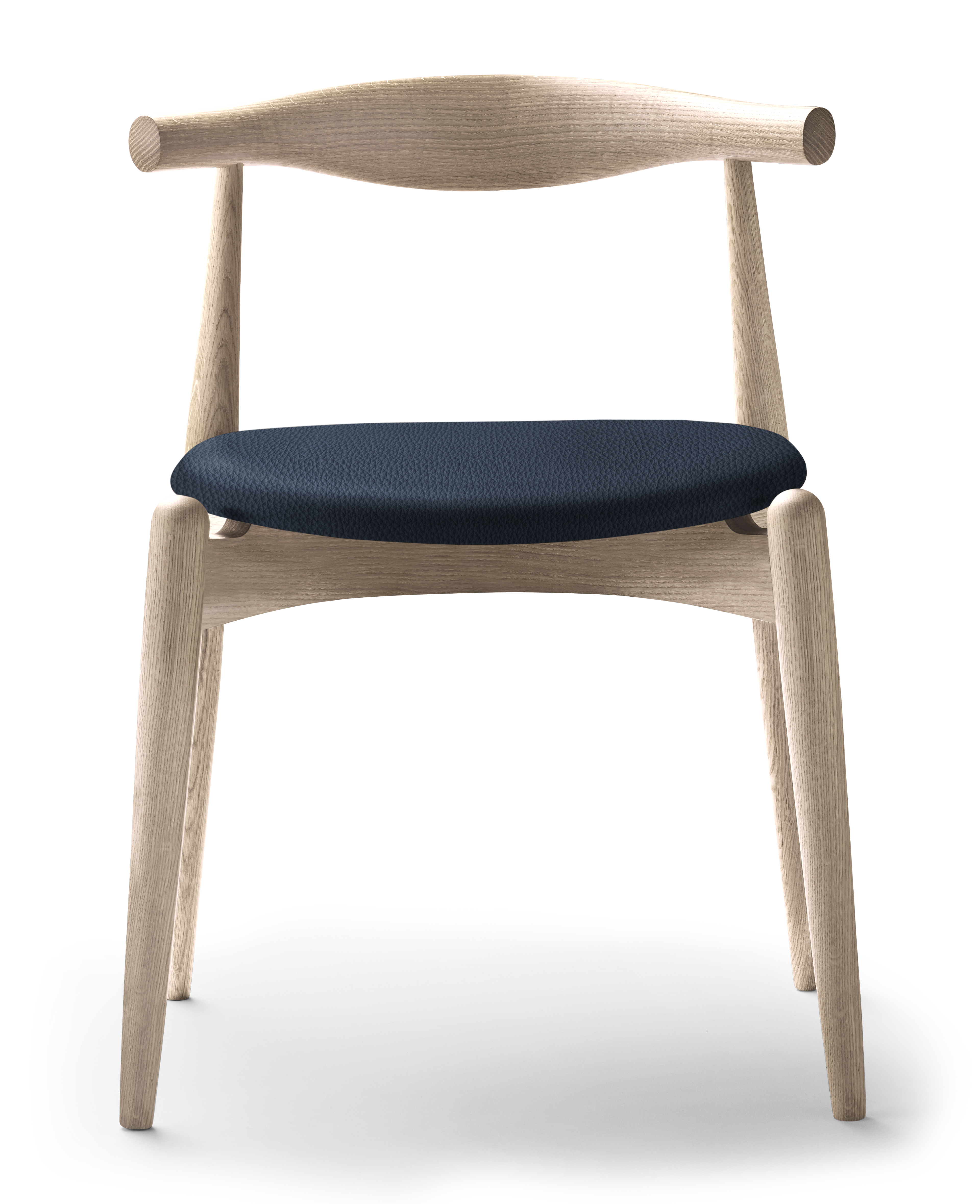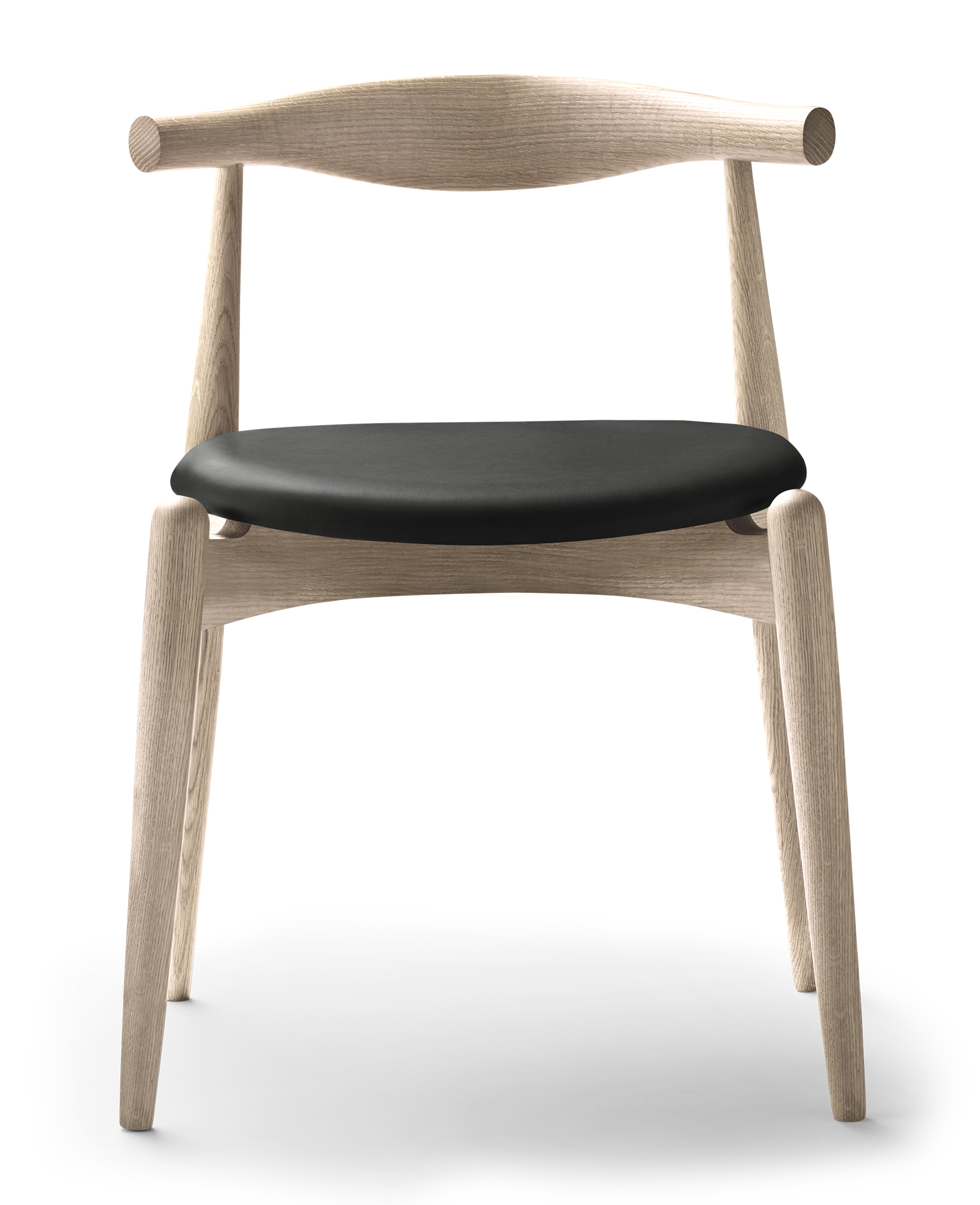 ハンス J. ウェグナーのエルボーチェアは2005年、カール・ハンセン&サンが発表すると同時に世界各国で大きな反響を集め、その年のニューヨークICFFエディター賞に輝いています。 エルボーチェアの大きな特徴は印象的な曲木製の背もたれ。一枚の無垢材から製作 され、背を支えると同時に、アームレストとしても機能する形状になっています。これにより、様々な座り方ができる椅子となっています。座のフォルムは曲線を描く背の形状を反映したもの。脚の上部にまるで浮いて見えるようにデザインされています。