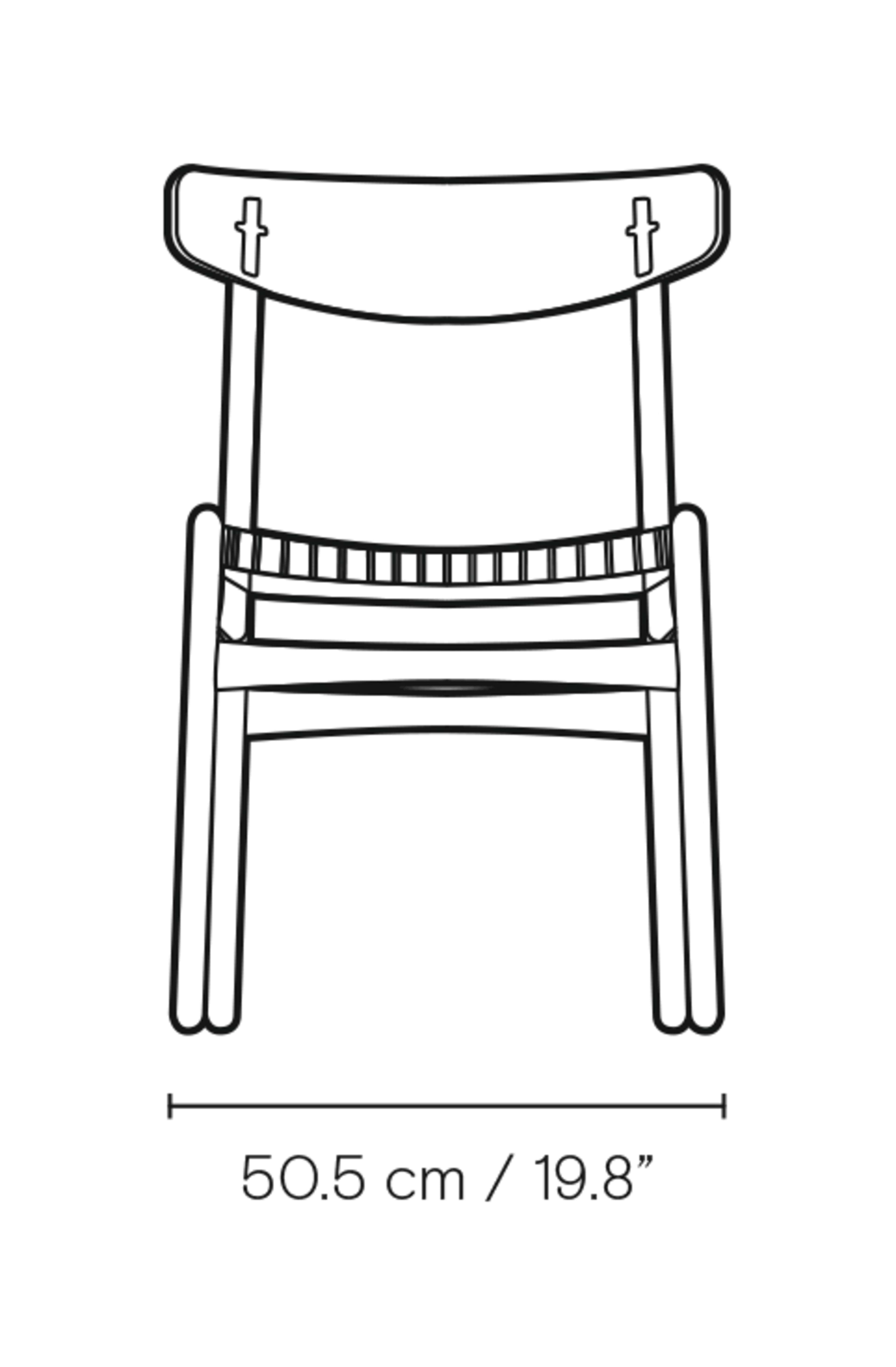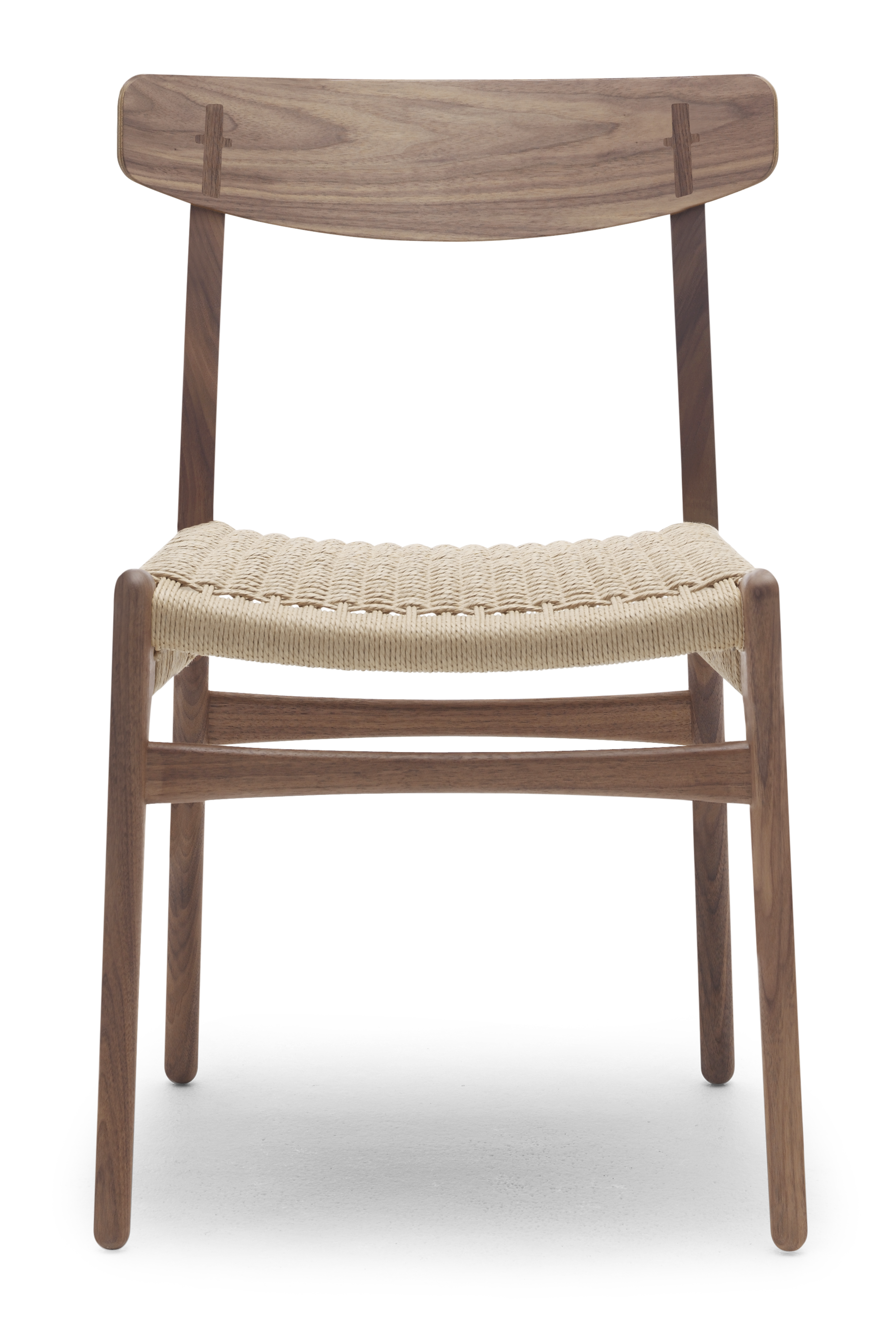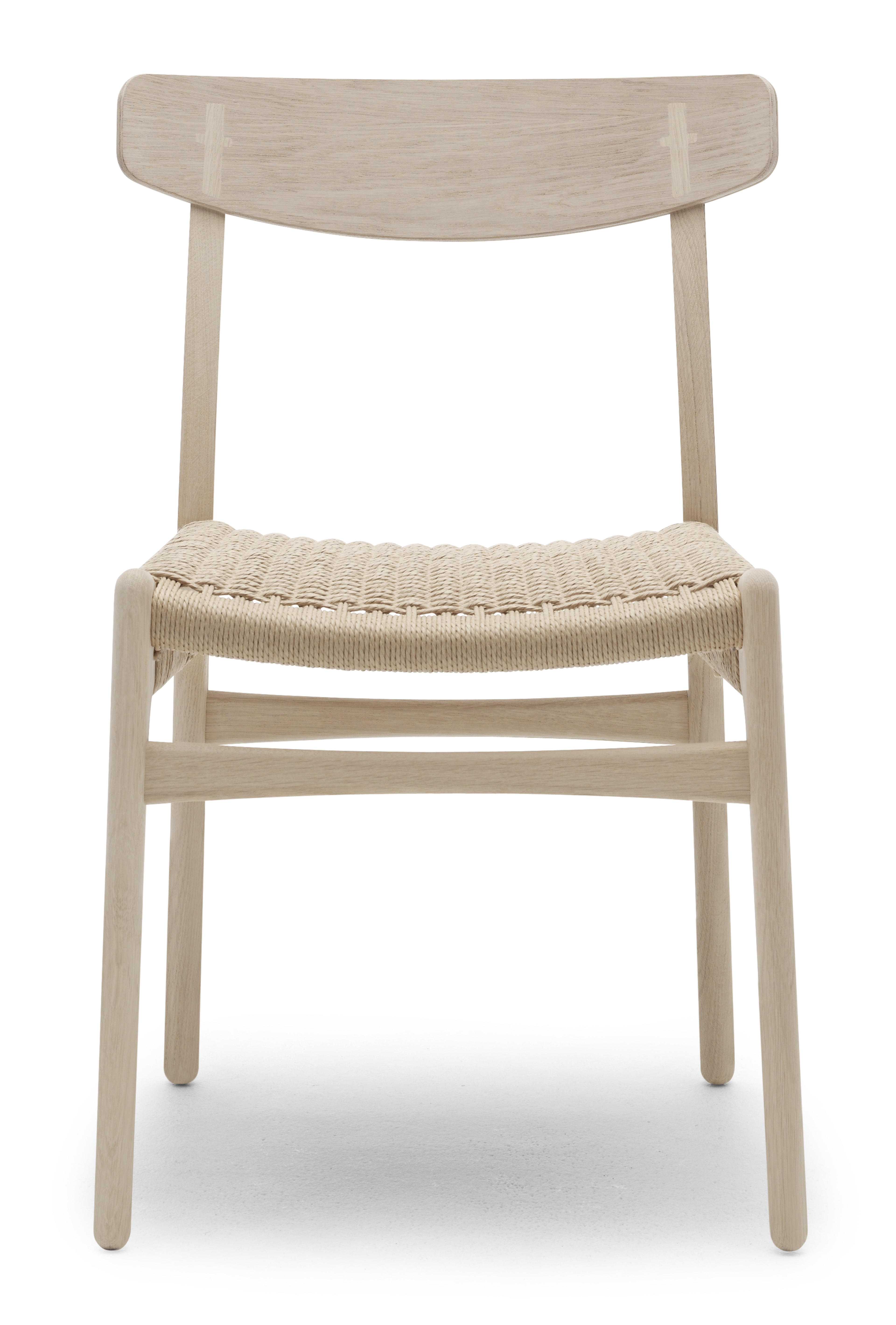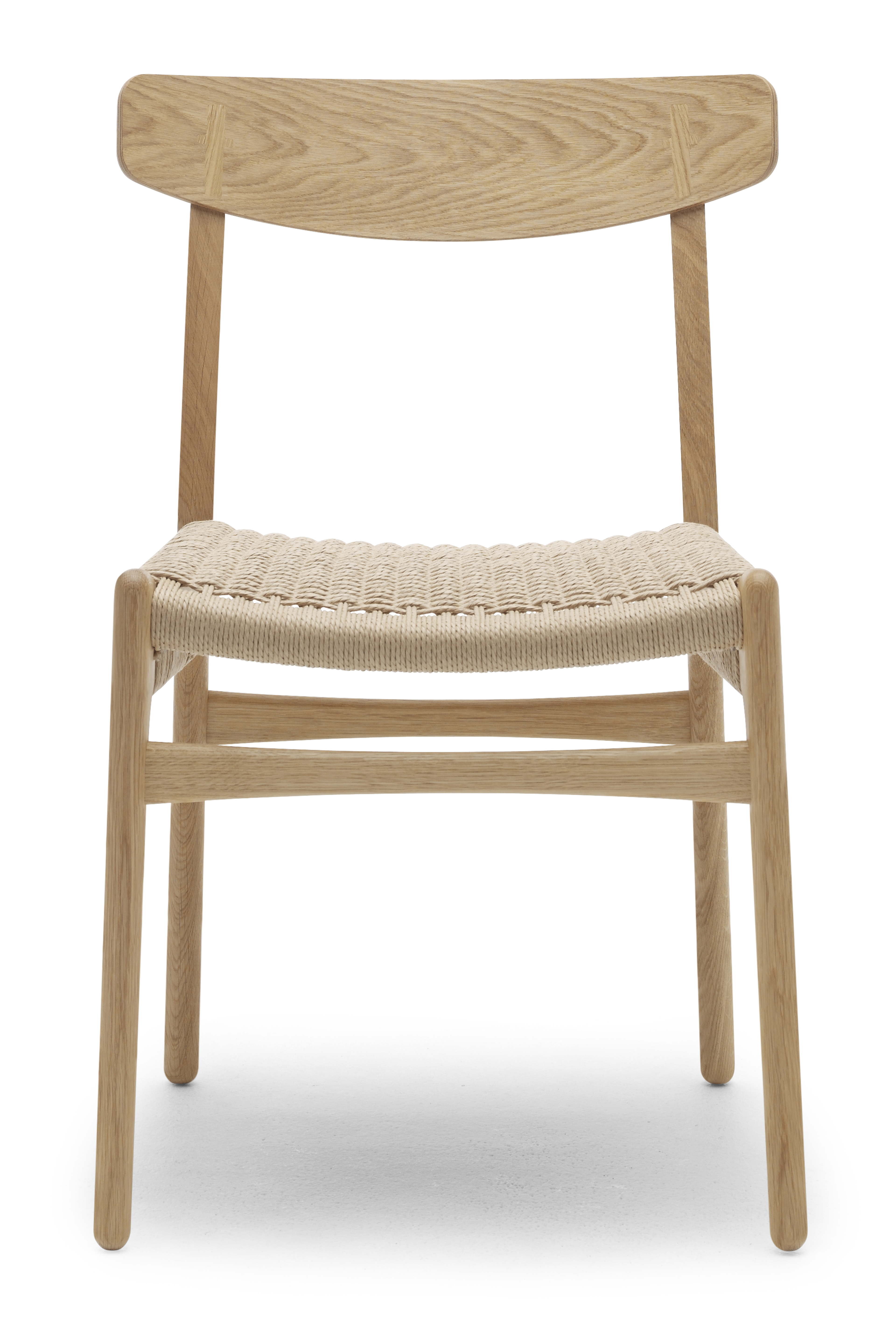CH23は1950年、ウェグナーがカール・ハンセン&サンにデザインした最初の椅子コレクションの一つです。芸術性、人間工学を考慮したフォルム。斬新なデザインというばかりでなく、ウェグナーはこの時、モダン家具デザインに新しい風を吹き込む一連の椅子を創り上げました。 クラフトマンシップが映える埋め木が美しい、曲げ木技術を応用した背もたれ。ダブルで 張られた美しいペーパーコード、そして、この椅子に安定性を与えている後脚のデザイン。 一見すると何も変哲のないシンプルな椅子ですが、よく見るとディテールに凝っていることがわかります。 カール・ハンセン&サンは、CH23を2017年に復刻、再びコレクションに加えました。ウェグナーが追求した美しさとフォルムをオリジナル図面に基づきに忠実に再現しています。