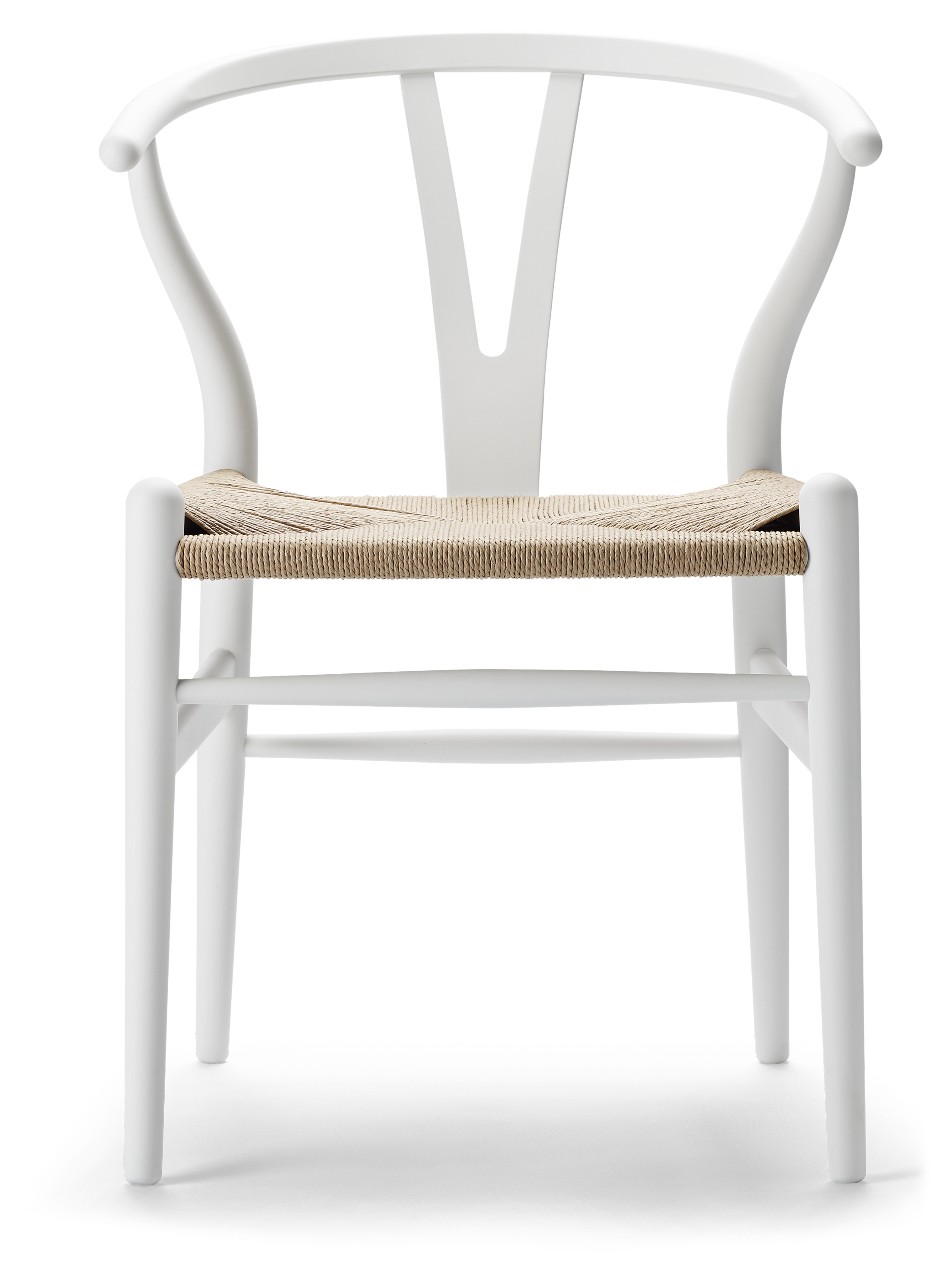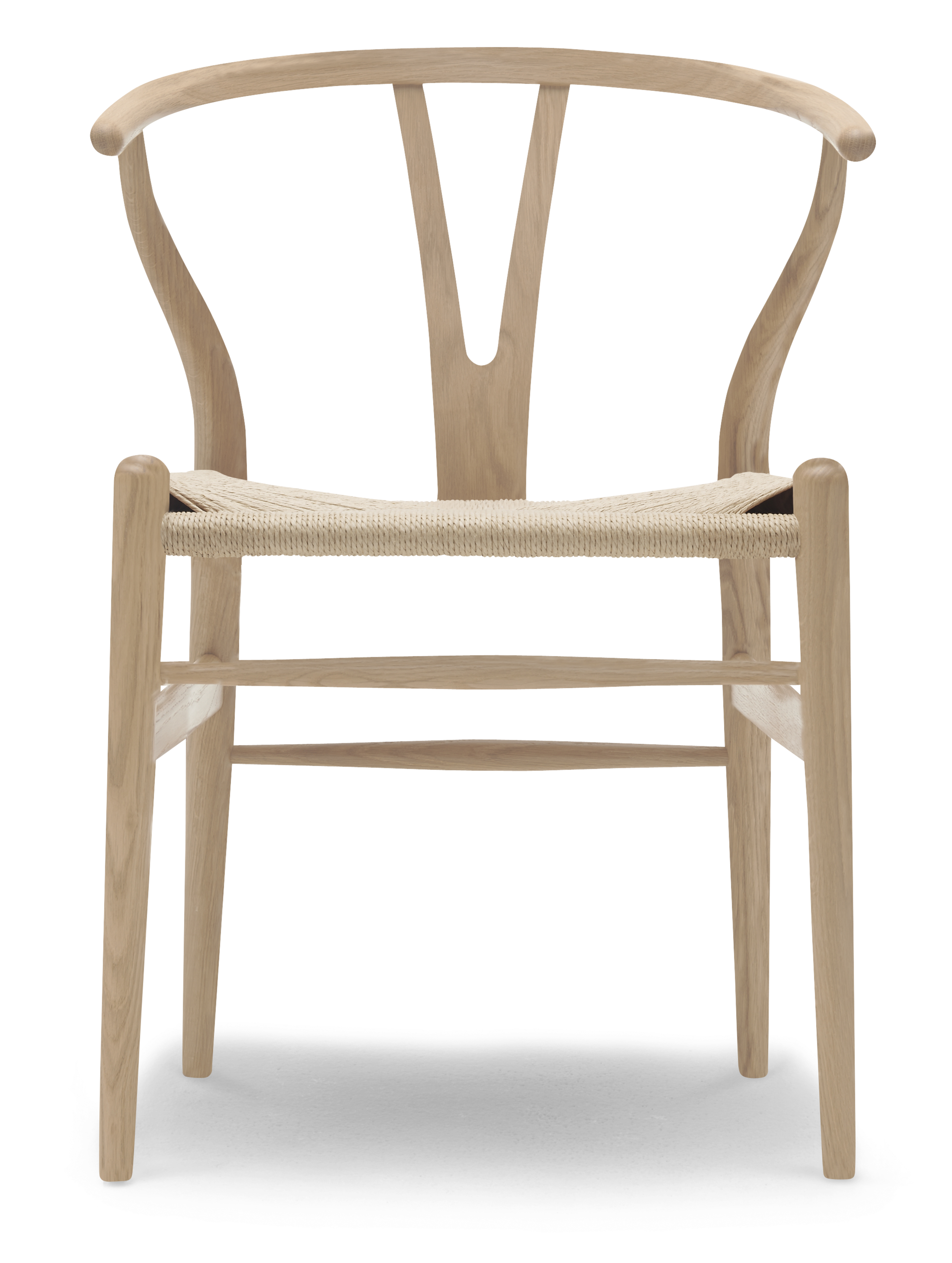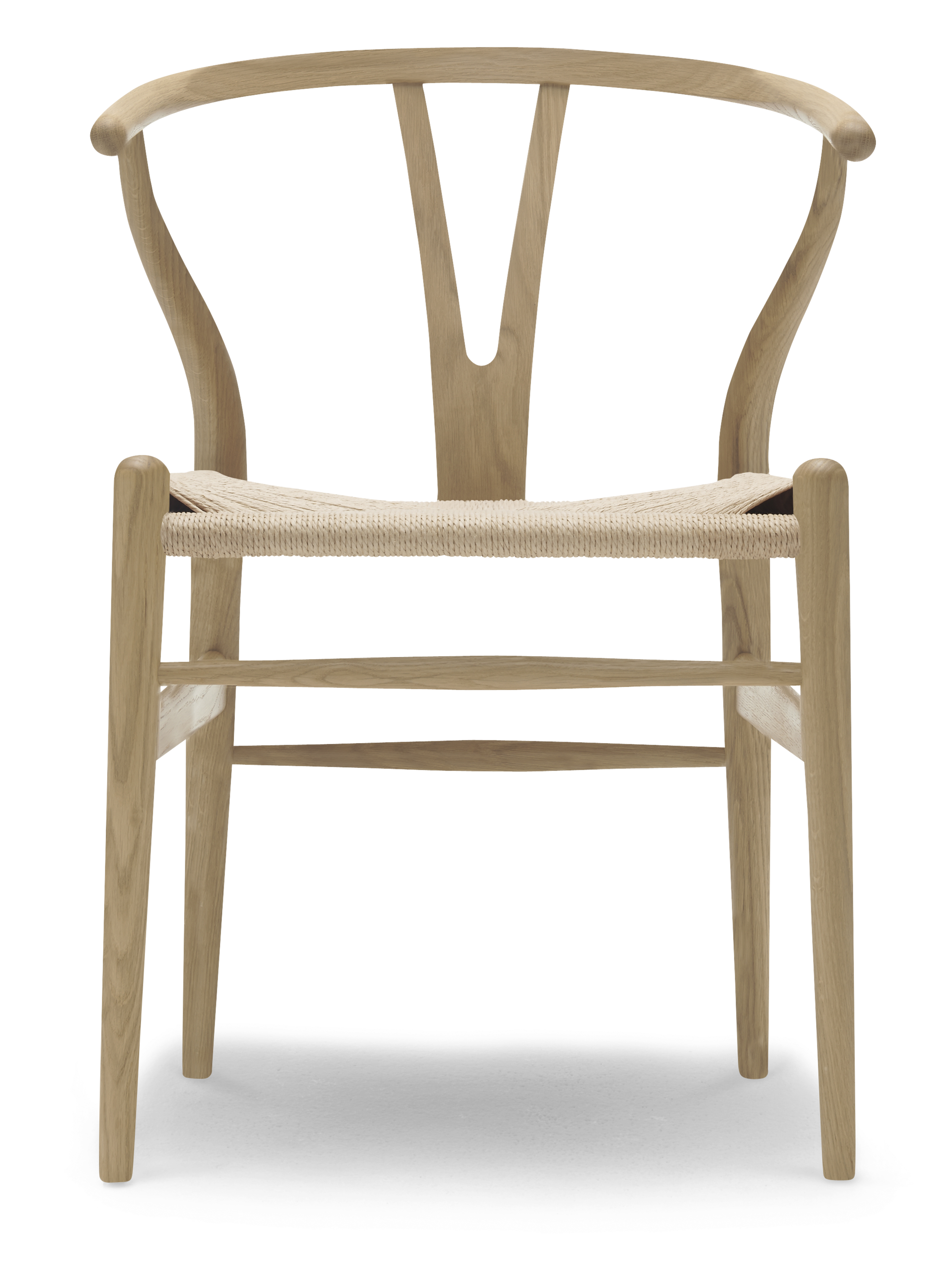 ハンス J. ウェグナーのYチェアは、その斬新なフォルムからモダンデザインの名作として世界的に知られてきました。 CH24のデザインにおいてウェグナーは、アームと背もたれを一体にするという、それまでの椅子デザインに見られなかった斬新な試みをしています。そしてこの曲木製のアームに安定性と心地よい使用感を与えるのが、印象的なY字形の背もたれ。この形状からYチェアと呼ばれるようになりました。 Yチェアの発端は中国の椅子に座るデンマーク商人の肖像画。商人が座る明代の椅子がデザインの起源となっています。素晴らしい使用感と使い勝手、そして特徴的なラインを描く美しいフォルム。椅子に求められる機能性と見た目の美しさを同時に満たす椅子、と多くの人が評価するCH24、Yチェア。まさに、デニッシュモダンの真髄と言えます。 CH24の完成に必要な製作工程は100以上。しかもそのほとんどが職人の手を通して作られています。座面にペーパーコードを張る作業は、熟練した職人でも1時間を要する重要な工程。1脚あたり、120メートルの強度と耐久性に優れたペーパーコードが使用し、長年にわたって使用できる座面を作り上げています。