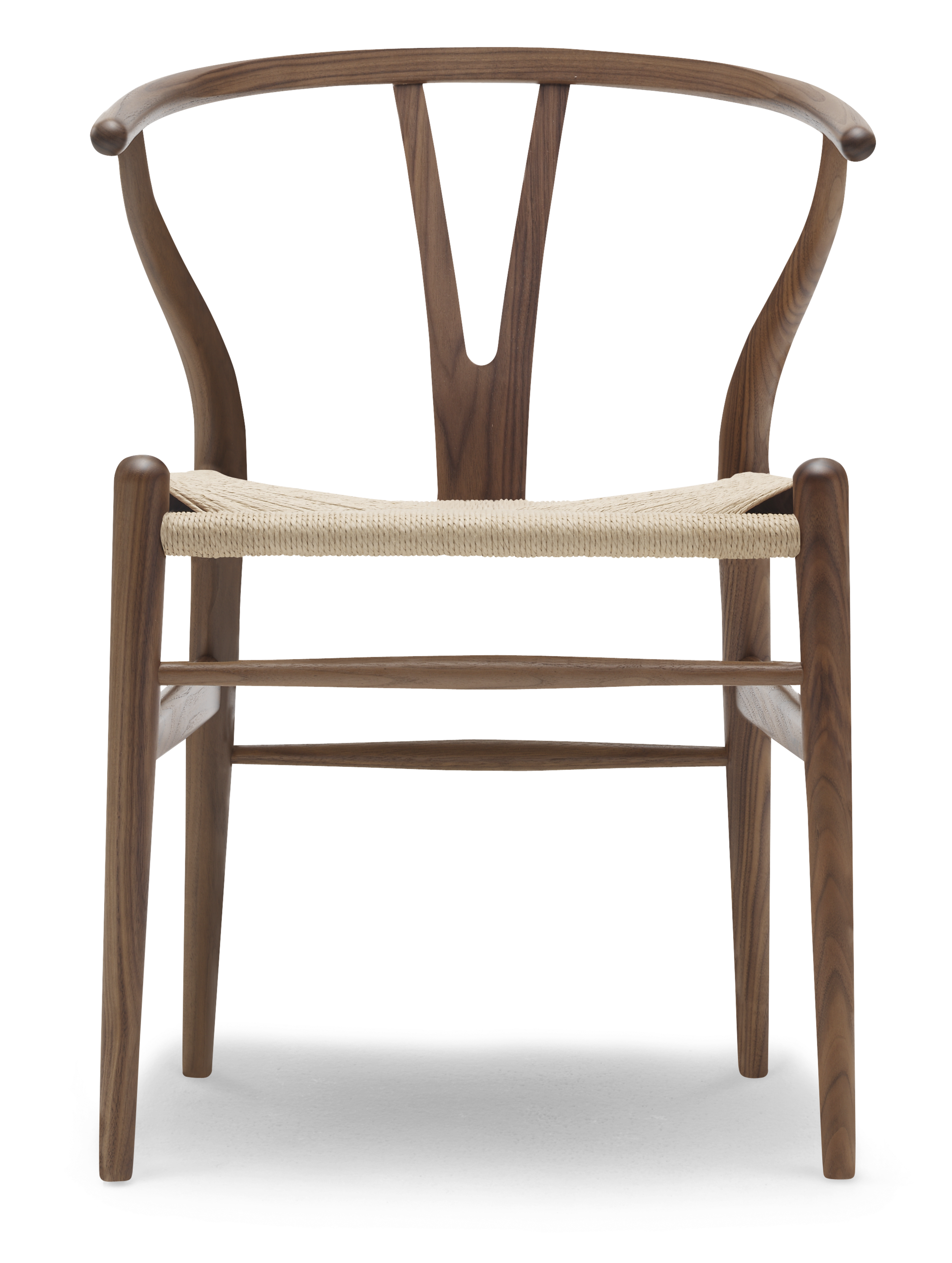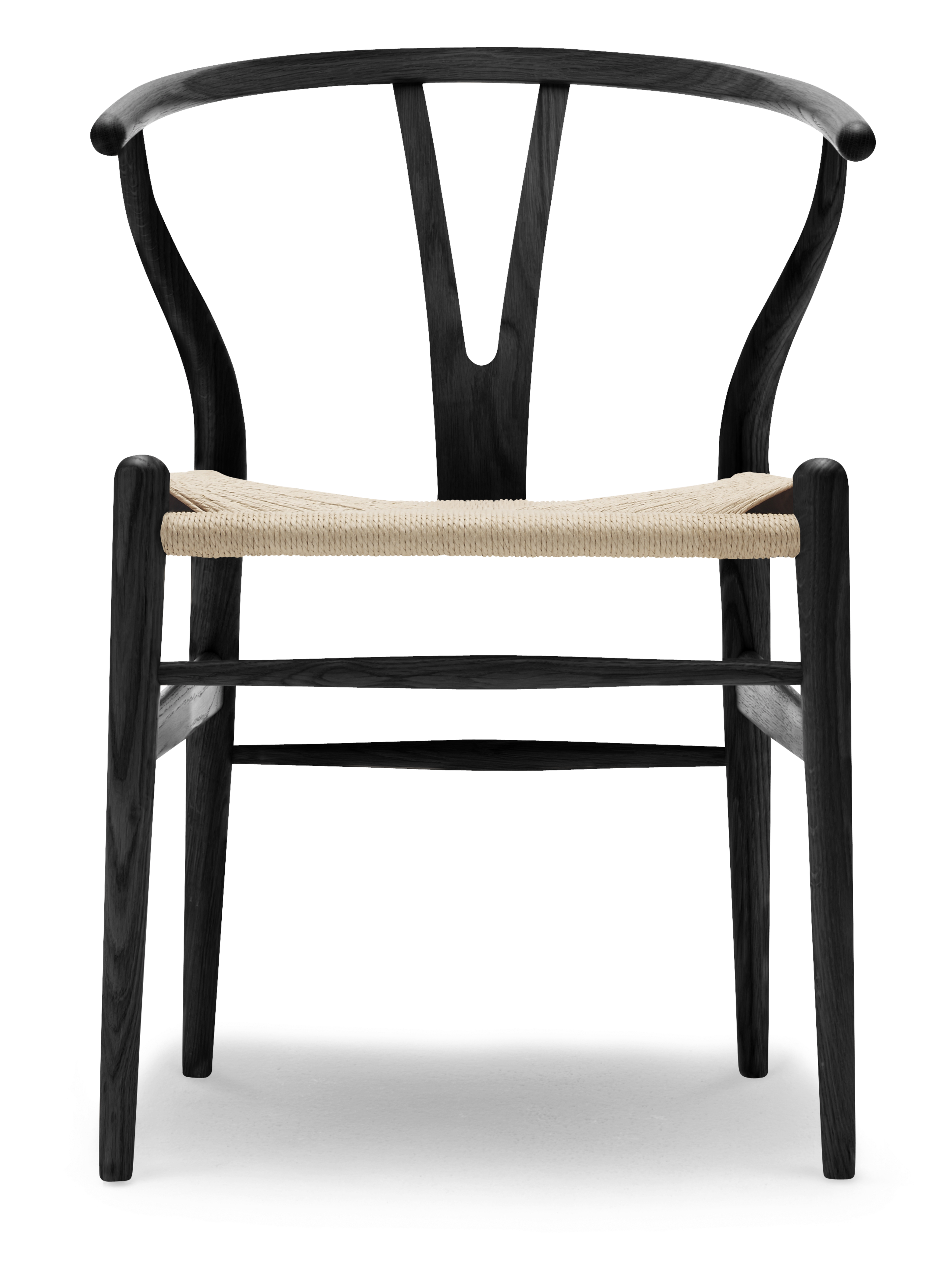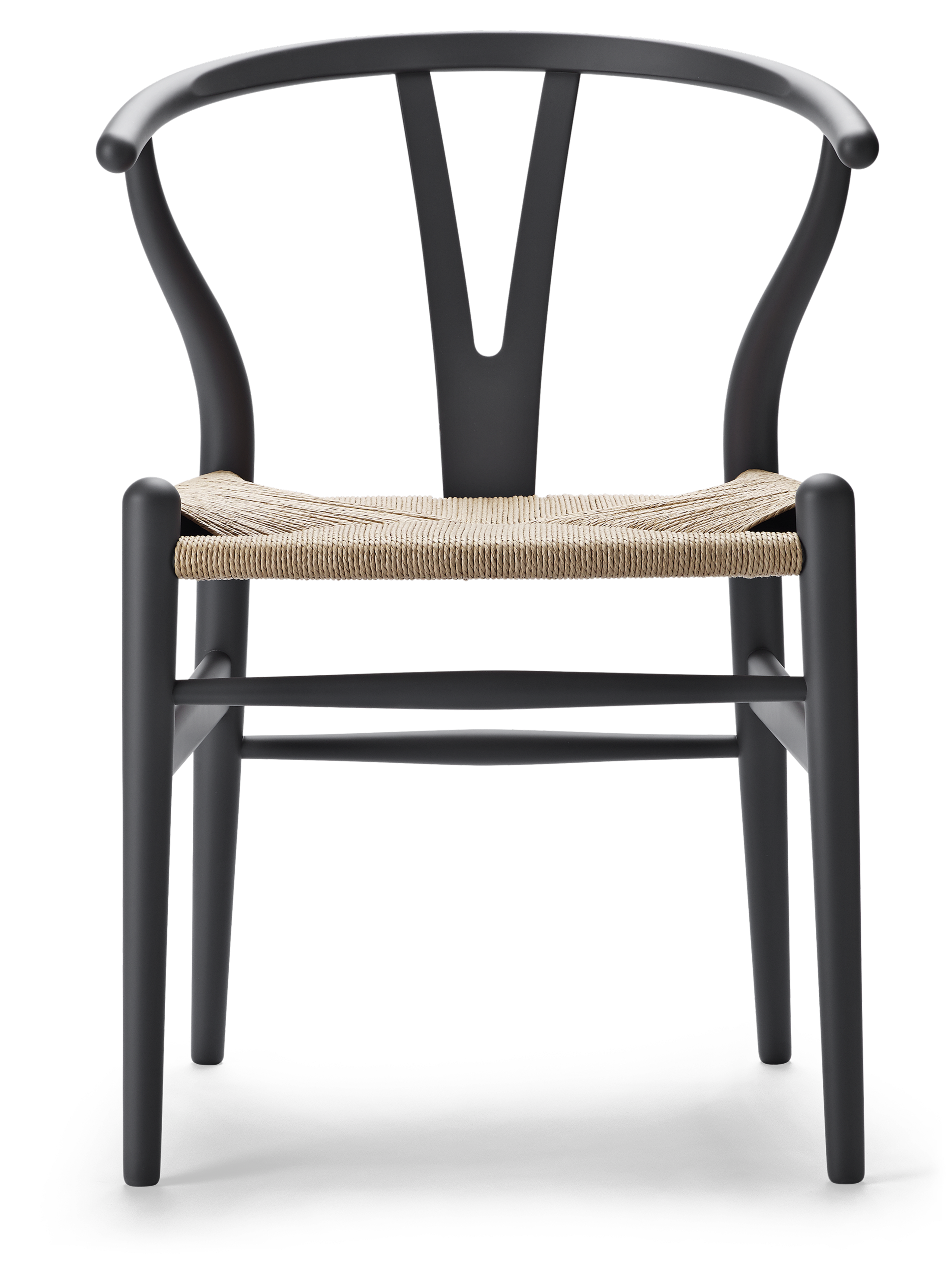ハンス J. ウェグナーのYチェアは、その斬新なフォルムからモダンデザインの名作として世界的に知られてきました。 CH24のデザインにおいてウェグナーは、アームと背もたれを一体にするという、それまでの椅子デザインに見られなかった斬新な試みをしています。そしてこの曲木製のアームに安定性と心地よい使用感を与えるのが、印象的なY字形の背もたれ。この形状からYチェアと呼ばれるようになりました。 Yチェアの発端は中国の椅子に座るデンマーク商人の肖像画。商人が座る明代の椅子がデザインの起源となっています。素晴らしい使用感と使い勝手、そして特徴的なラインを描く美しいフォルム。椅子に求められる機能性と見た目の美しさを同時に満たす椅子、と多くの人が評価するCH24、Yチェア。まさに、デニッシュモダンの真髄と言えます。 CH24の完成に必要な製作工程は100以上。しかもそのほとんどが職人の手を通して作られています。座面にペーパーコードを張る作業は、熟練した職人でも1時間を要する重要な工程。1脚あたり、120メートルの強度と耐久性に優れたペーパーコードが使用し、長年にわたって使用できる座面を作り上げています。