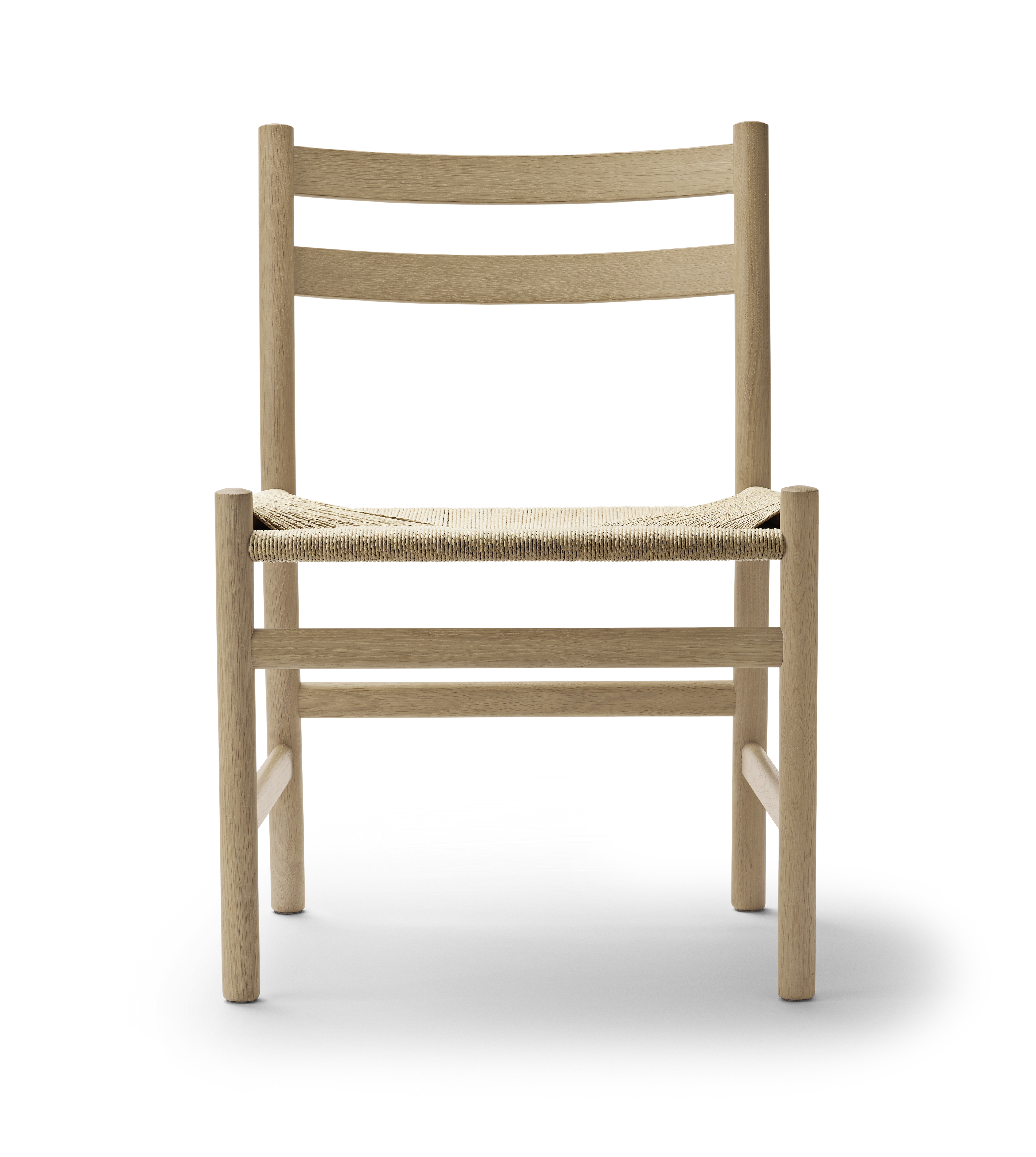 CH47は、ハンス J. ウェグナーが1965年に発表した椅子。ウェグナーデザインの典型ともいえる無駄をそぎ落とした機能美が印象的な一脚です。 CH47は、職人技巧と厳選された天然素材が印象に残るダイニングチェア。シェーカー家具の影響が色濃いウェグナーデザインです。穏やかに傾斜するフレーム、ダイナミックでありながらも、優雅さのあるシルエット。彫刻的ともいえるアームは、ペーパーコードを施した座と相まって至極のコンフォートを創り出しています。 CH47は、自然素材で構成された穏やかなフォルムがその特徴です。エントランス、ダイニングルーム、待合室、そして会議室に至るまで幅広く使用できるデザインです。アームチェアとなるCH46も用意されています。