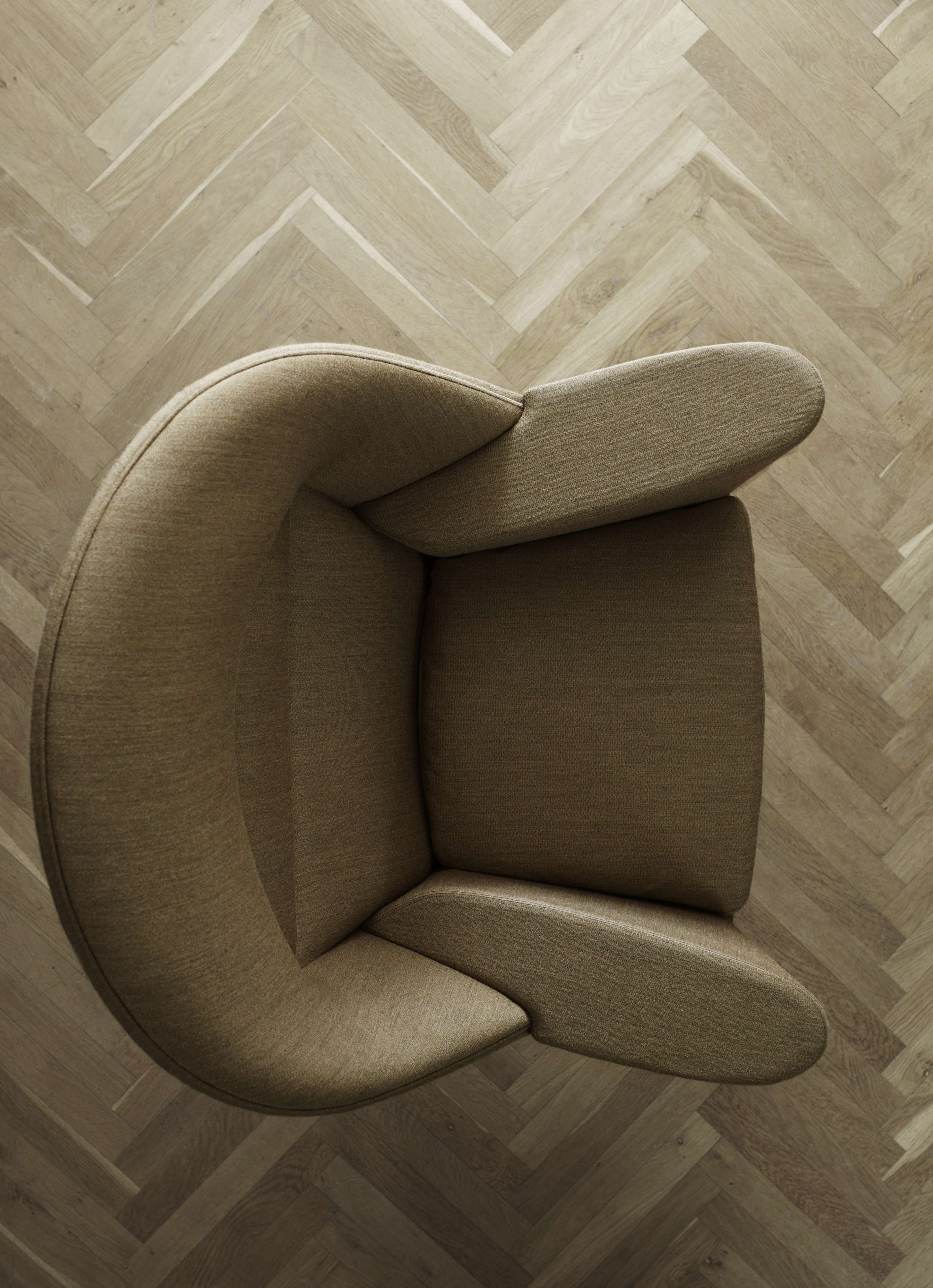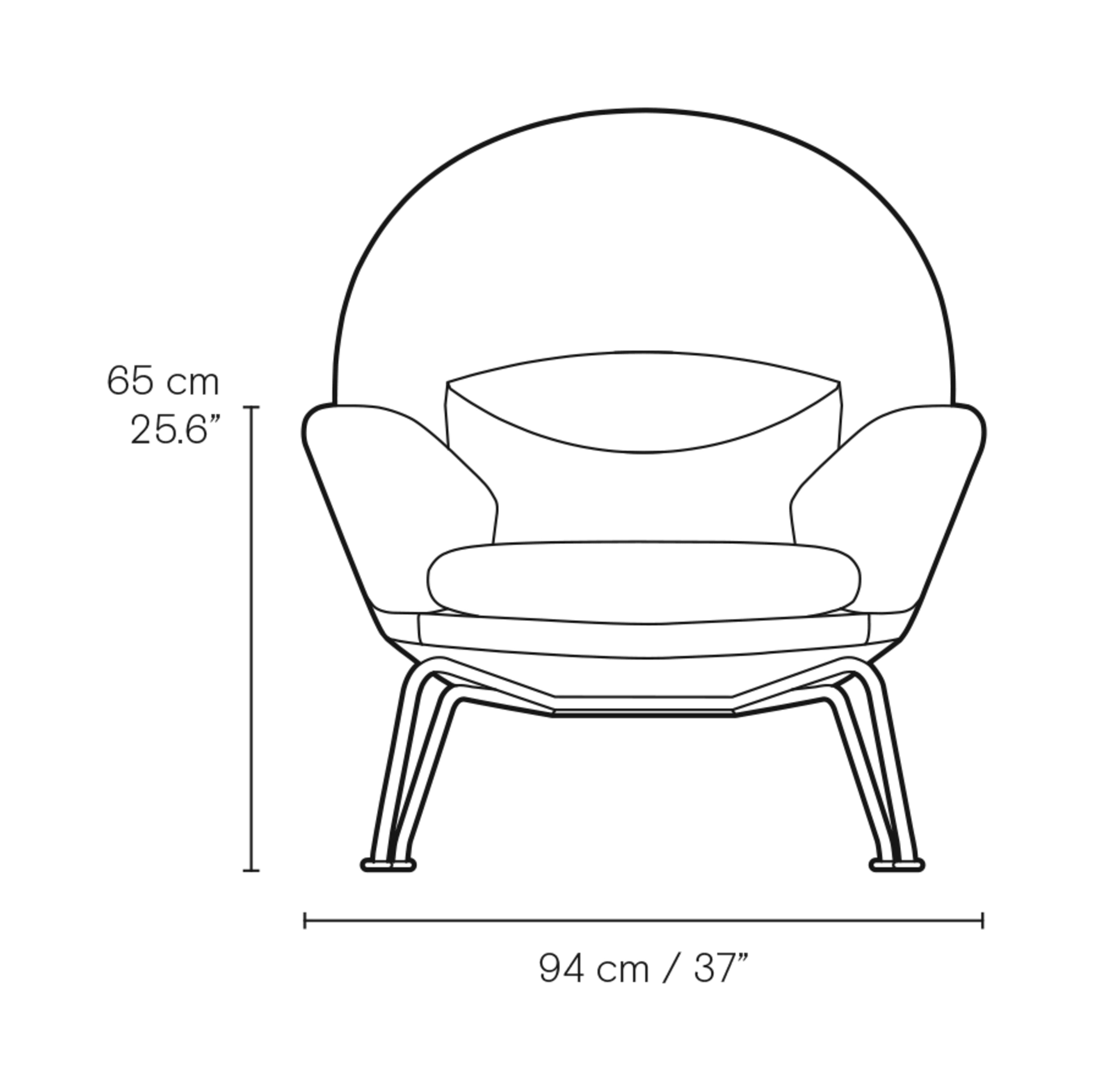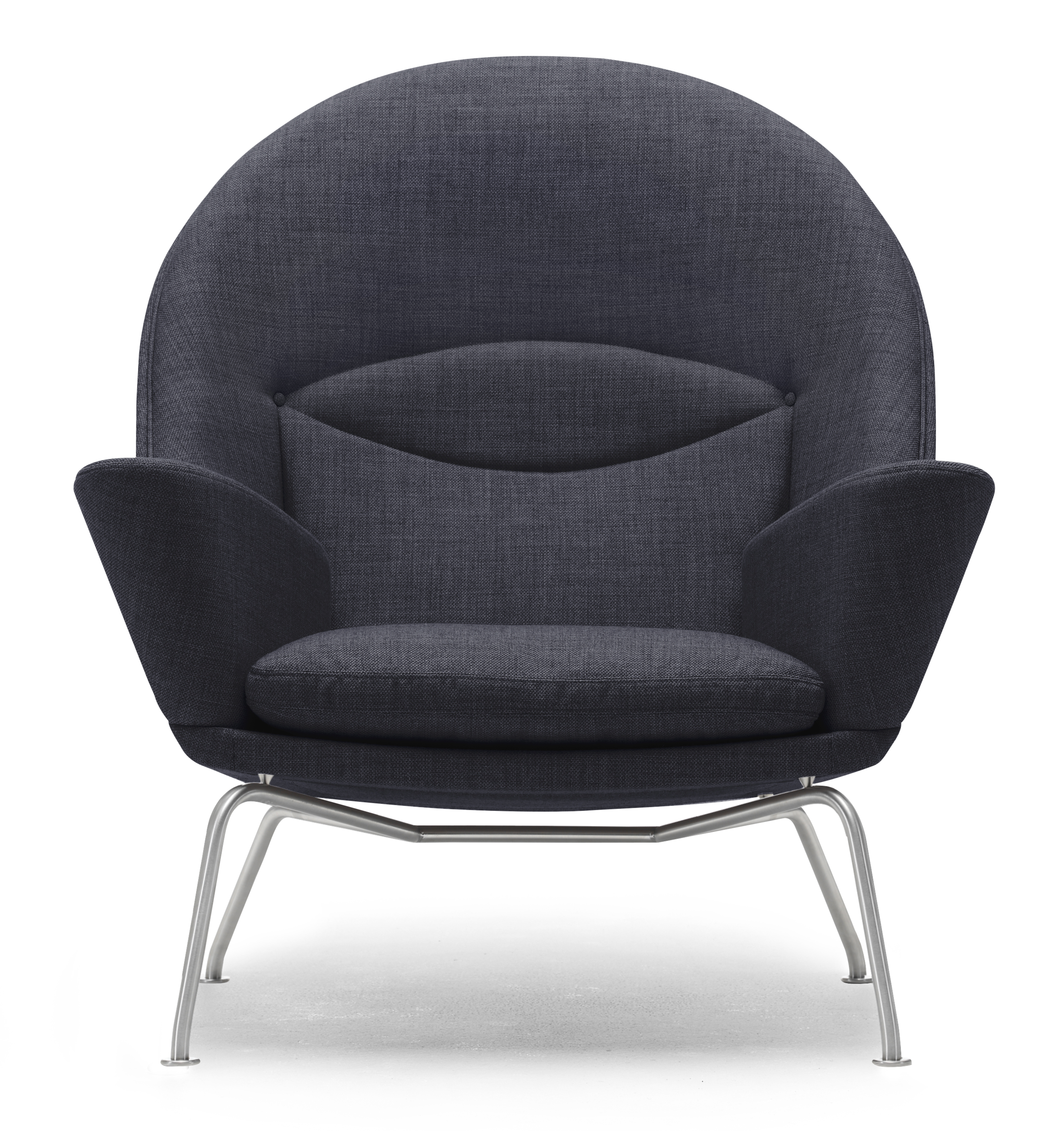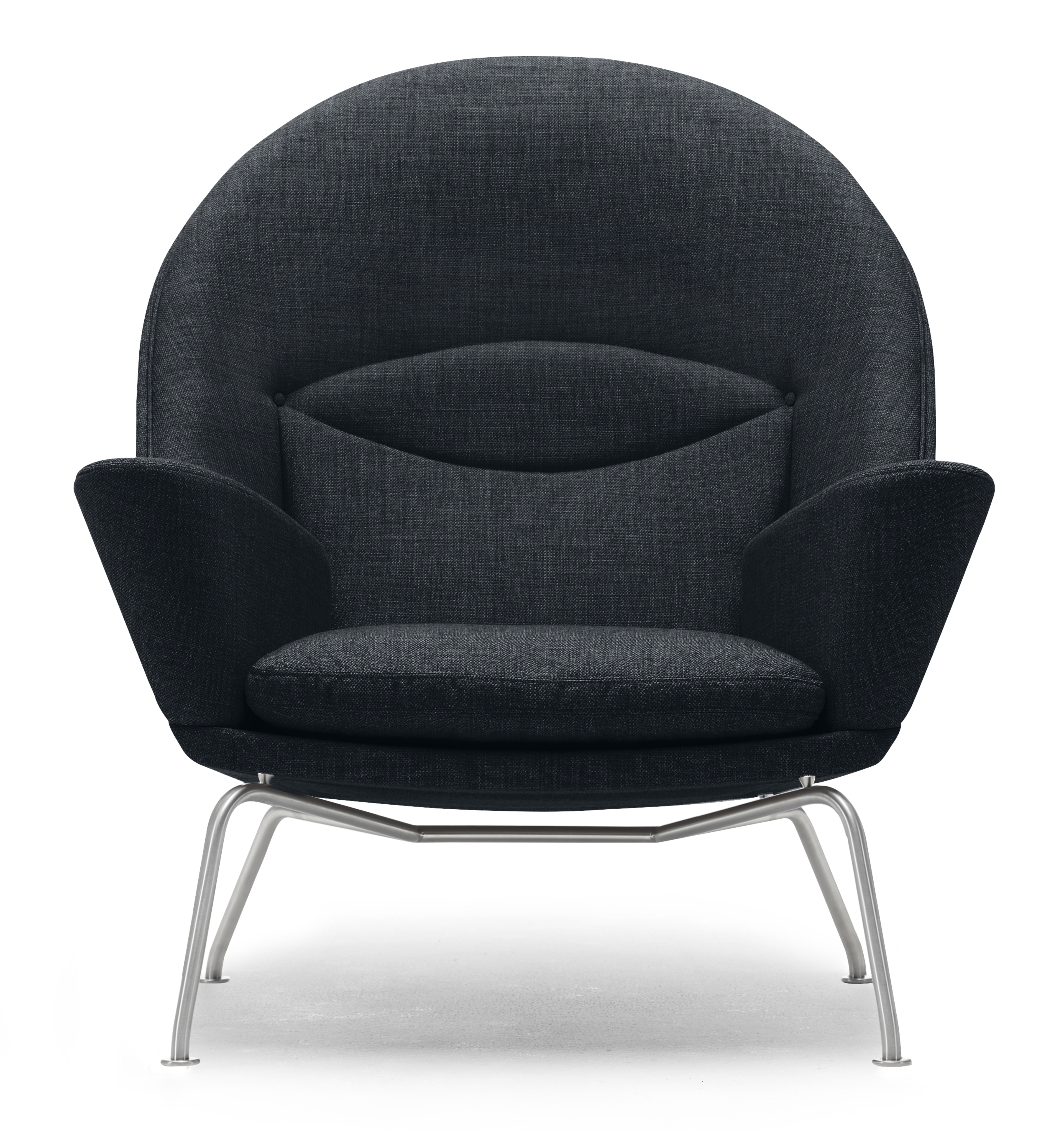 ハンス J. ウェグナーのCH468 オキュラスチェアが市場に出た経緯は、他の製品と大きく異なります。ウェグナーデザイン事務所に山と積まれたデザイン資料。カール・ハンセン&サンはその中に、これまでに見たことのないラウンジチェアの石膏モデルと試作品の写真を発見しました。ほどなくしてウェグナーの図面も入手。2010年、オリジナル・デザインに忠実にこのオキュラスチェアを復刻しました。 ラテン語で目を意味する「オキュラス」。この椅子の背の中央が目の形をしていることから名づけられました。心地よい座り心地としっかりと体を支える構造。独創的なフォルムをもつオキュルスチェアは、発表されるとすぐに大きな注目を集めました。 曲線が美しい大きめ背とスロープを描くアーム。心地よいリラックス感を生み出すともに、シンプルでスリムなステンレススチール製の脚と大胆なコントラスを出しています。単独で配置しても、空間で大きな存在感を発揮する、ボリューム感のあるシルエット。広い空間では、数脚グループで置いて使用するのにも適したラウンジチェアです。 CH468 オキュラスチェアには、使用感をさらに高めるフットスツール CH446があります。