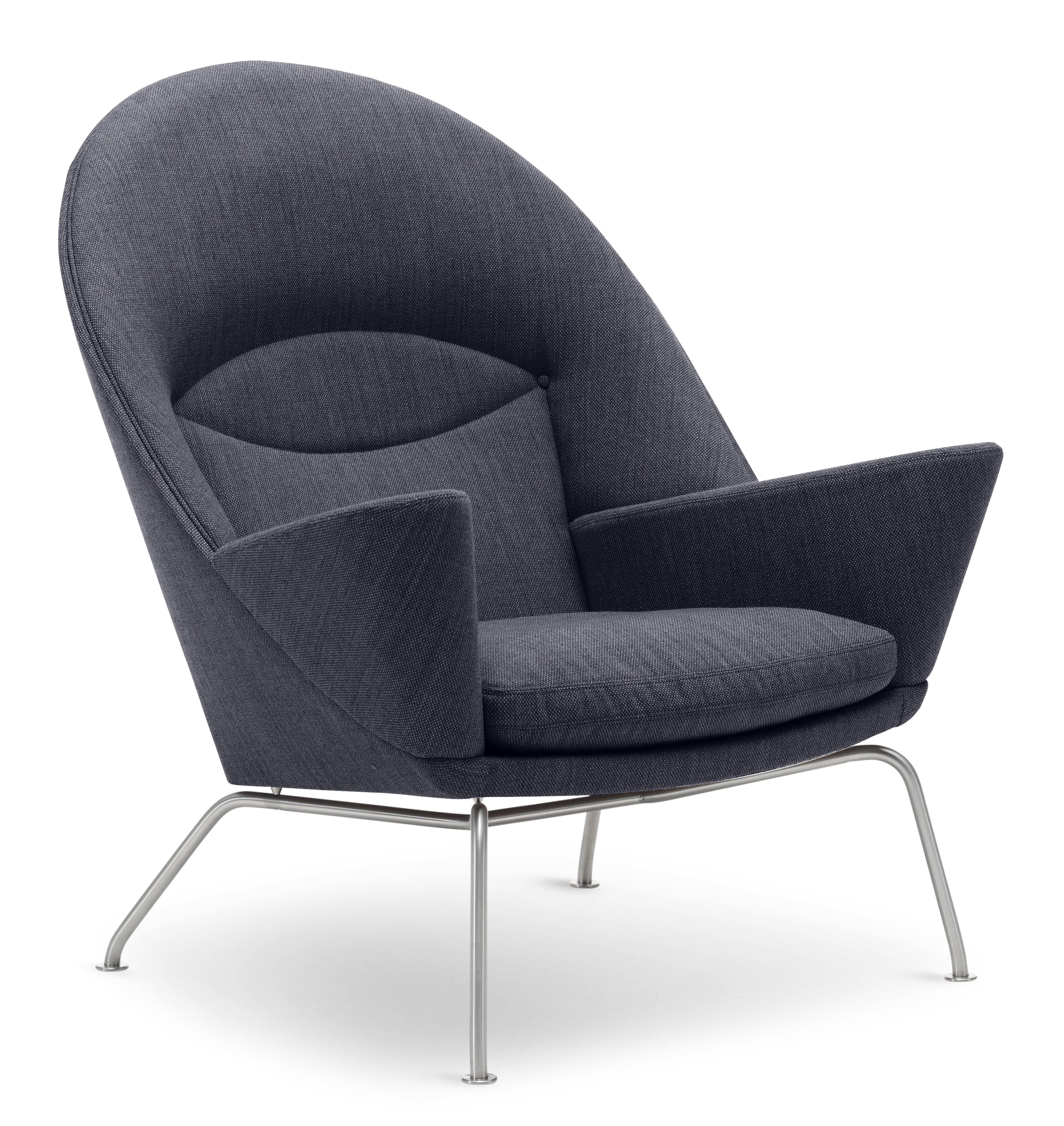 ハンス J. ウェグナーのCH468 オキュラスチェアが市場に出た経緯は、他の製品と大きく異なります。ウェグナーデザイン事務所に山と積まれたデザイン資料。カール・ハンセン&サンはその中に、これまでに見たことのないラウンジチェアの石膏モデルと試作品の写真を発見しました。ほどなくしてウェグナーの図面も入手。2010年、オリジナル・デザインに忠実にこのオキュラスチェアを復刻しました。 ラテン語で目を意味する「オキュラス」。この椅子の背の中央が目の形をしていることから名づけられました。心地よい座り心地としっかりと体を支える構造。独創的なフォルムをもつオキュルスチェアは、発表されるとすぐに大きな注目を集めました。 曲線が美しい大きめ背とスロープを描くアーム。心地よいリラックス感を生み出すともに、シンプルでスリムなステンレススチール製の脚と大胆なコントラスを出しています。単独で配置しても、空間で大きな存在感を発揮する、ボリューム感のあるシルエット。広い空間では、数脚グループで置いて使用するのにも適したラウンジチェアです。 CH468 オキュラスチェアには、使用感をさらに高めるフットスツール CH446があります。