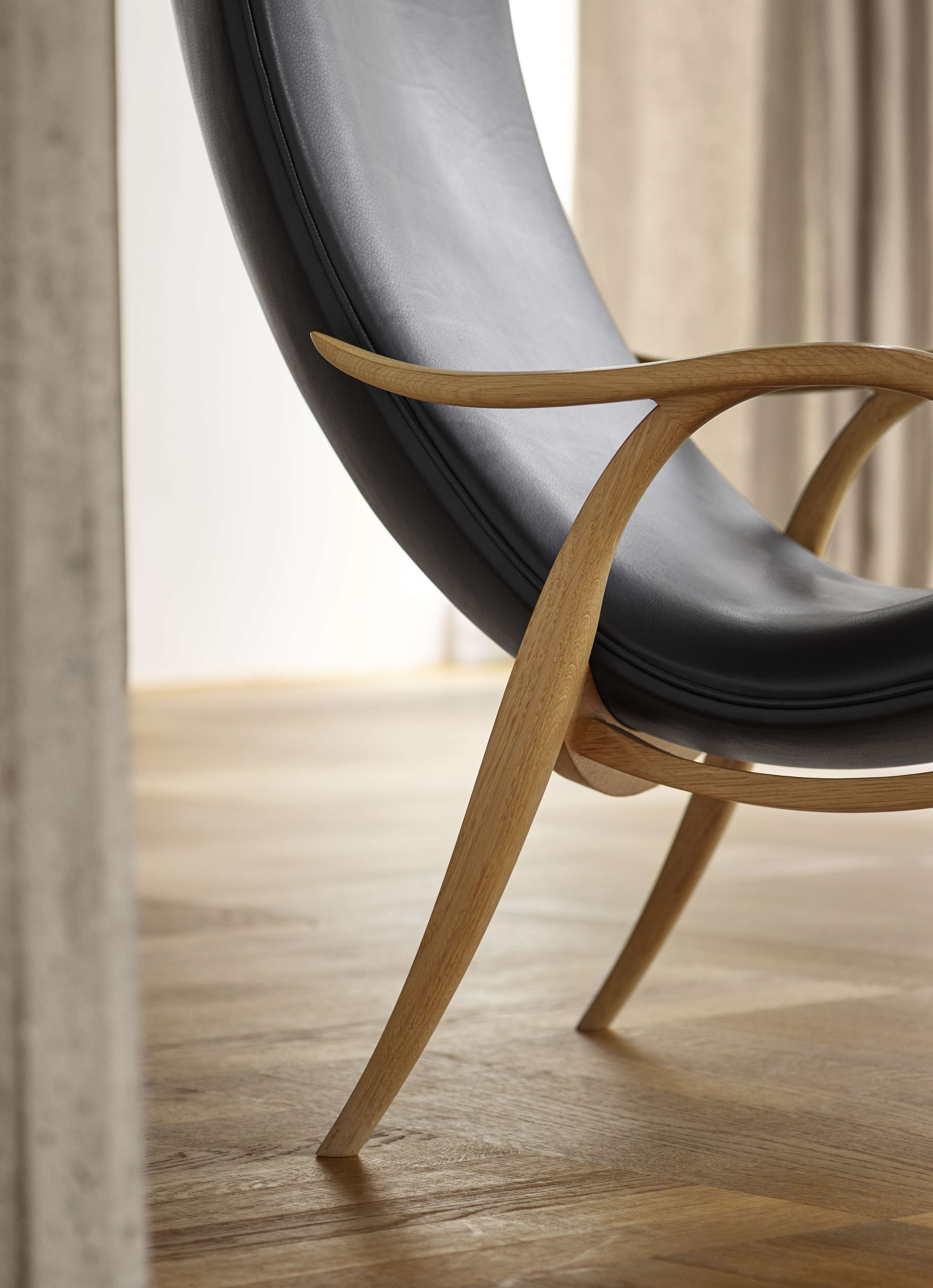 FH429 シグネチャーチェアを発表したフリッツ・ヘニングセンは、家具職人としての誇りとクラフトマンシップへのこだわりから、作る家具はすべて自分でデザインし、自分で製品化していました。そのプロセスは、いつも小さな模型の製作から始まります。この椅子も例外ではありません。シグネチャーチェアの模型はインダストリアルクレイとマッチ棒で製作されました。実際の製作に当たりフレームは、コペンハーゲンにあった自身の工房で製作。満足のいくものが完成するまで、数か月に渡り、試作が繰り返されました。 シグネチャーチェアが完成したのは1954年。当時20脚あまりが製品として世に送り出されました。それから半世紀を過ぎた2015年、カール・ハンセン&サンによって本格的な生産が開始されました。 長いキャリアの中、へニングセンの作風は次第により簡素化したフォルムを持つデザインに移行しています。そして最後に行き着いたのがこのシグネチャーチェア。へニングセンデザインの中でこれほどシンプルなデザインはありません。上品な曲線でこの上ない座り心地を創り出す。これが、ヘニングセンの最後のテーマでした。思わず座ってみたくなるようなソフトで温かいフォルム。浮いたようなアームが創り出すオーガニックな曲線。安堵感が全身を包み込むような素晴らしい座り心地をもつ椅子となっています。 FH429 シグネチャーチェアには、さらに使用感をさらに高めるフットスツール FH430があります。