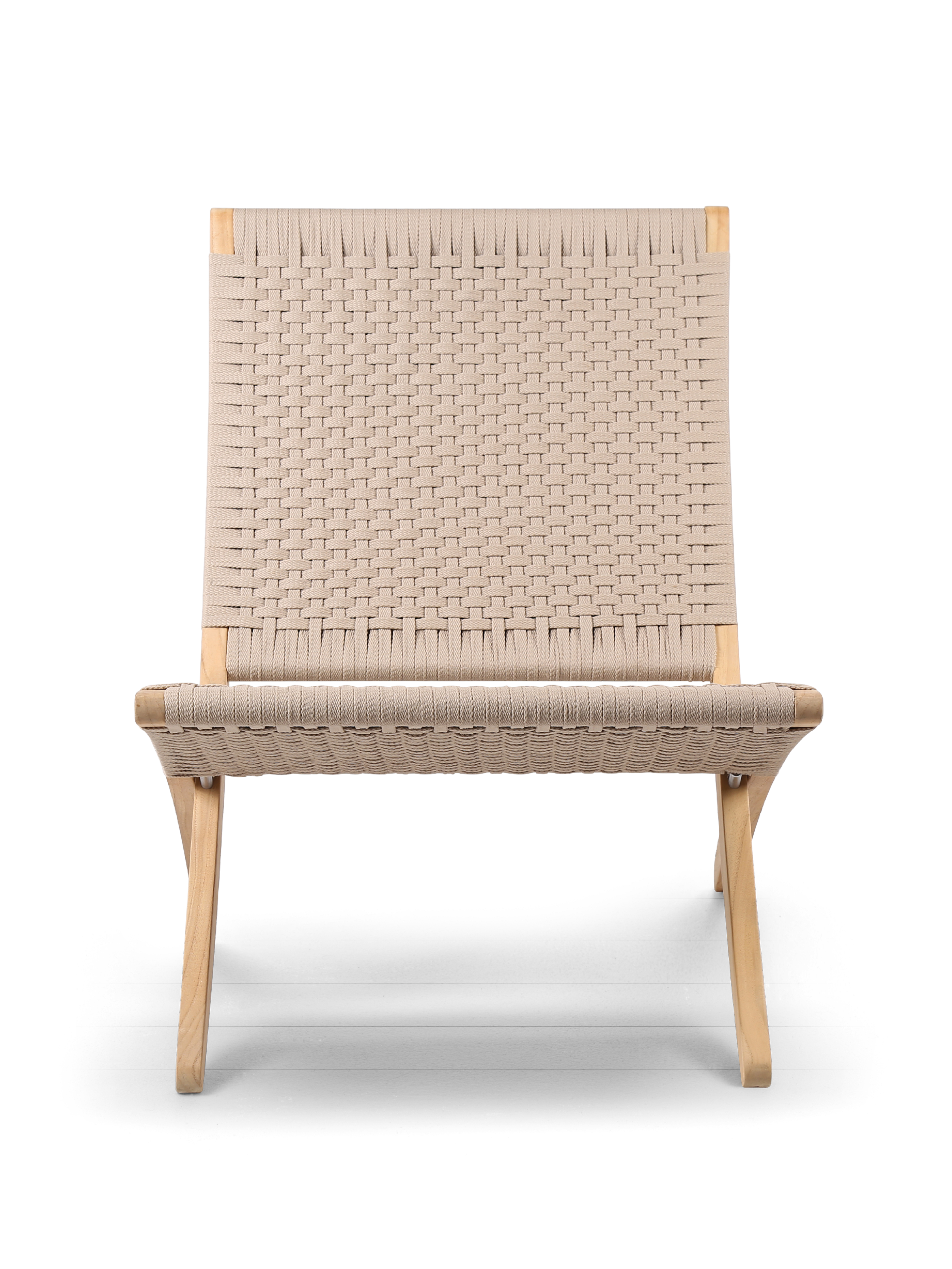 MG501 キューバチェアにおいて、モーテン・グッドラーはエキストラの椅子をより高いレベルにまで引き上げることを追求しています。フレームは無垢のオーク材、背と座を構成するのはコットンのウィービングテープ。体のラインに沿って優しく支える、素晴らしいサポートを創り出しています。 軽量で折りたたみ式のMG501 キューバチェア。エキストラの椅子として優れた機能を発揮します。折りたたんで壁に掛けることも、収納スタンドに保管することも可能です。彫刻的な美しいフォルム、クリーンなラインを描くウィービングテープ、そしてクラフトマンシップが映える造り。キューバチェアは、まさに複雑な機能をシンプルに美しくまとめた一脚と言えます。 フォルムとシンプルな美しさを追求するグッドラーならではの、MG501 キューバチェア。使用感とディテールにもこだわったラウンジチェアです。厳選された各部の素材にも注目してください。
