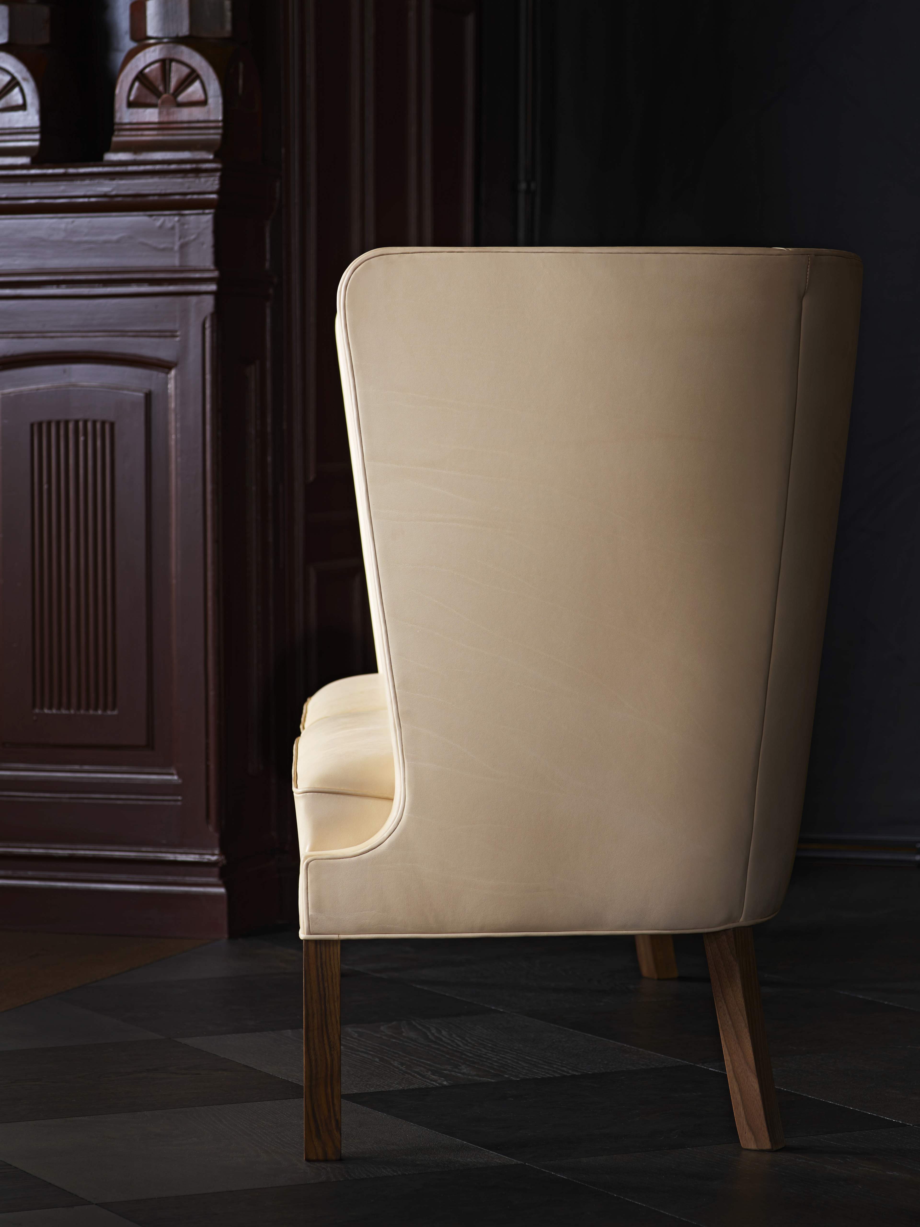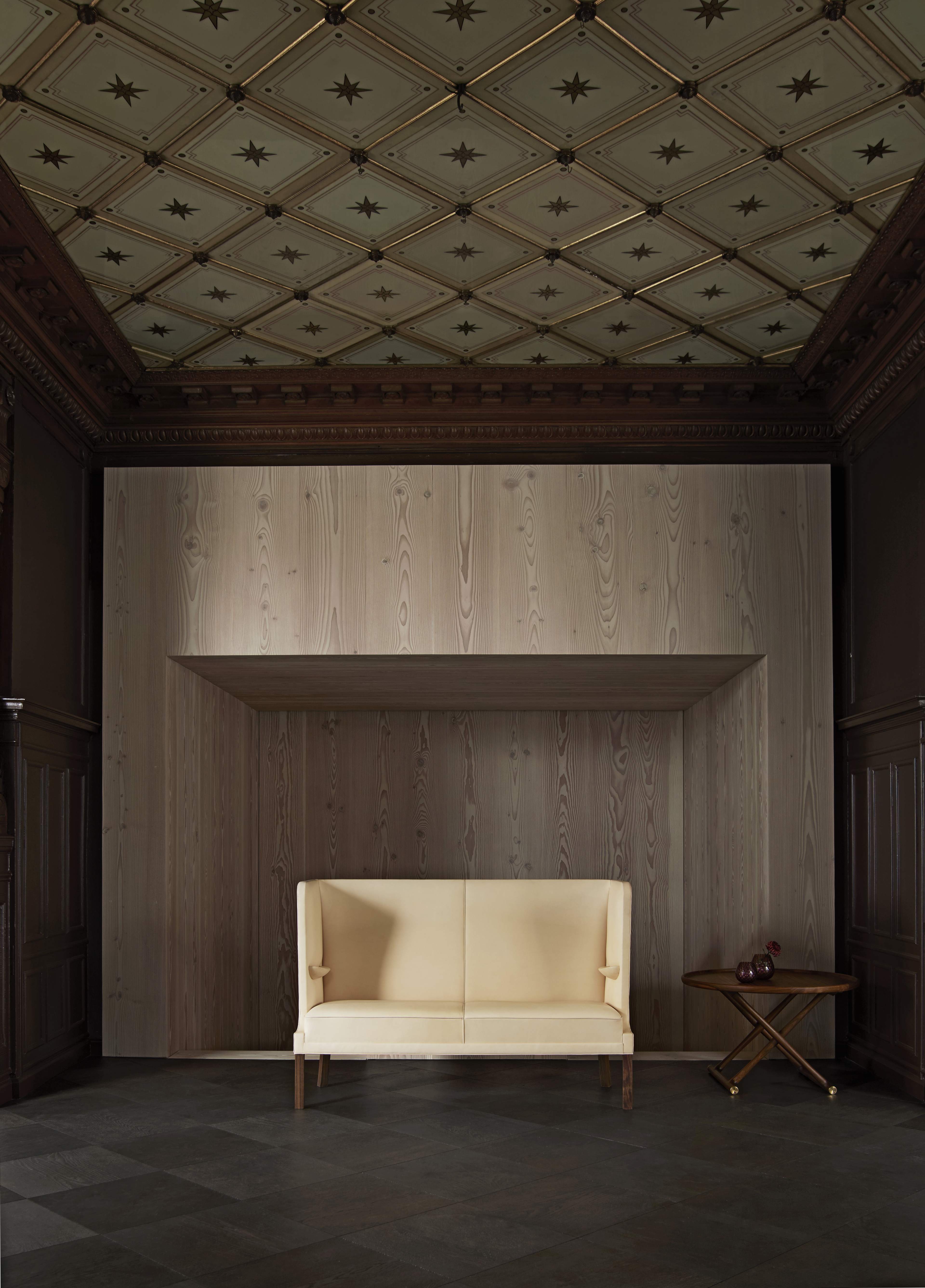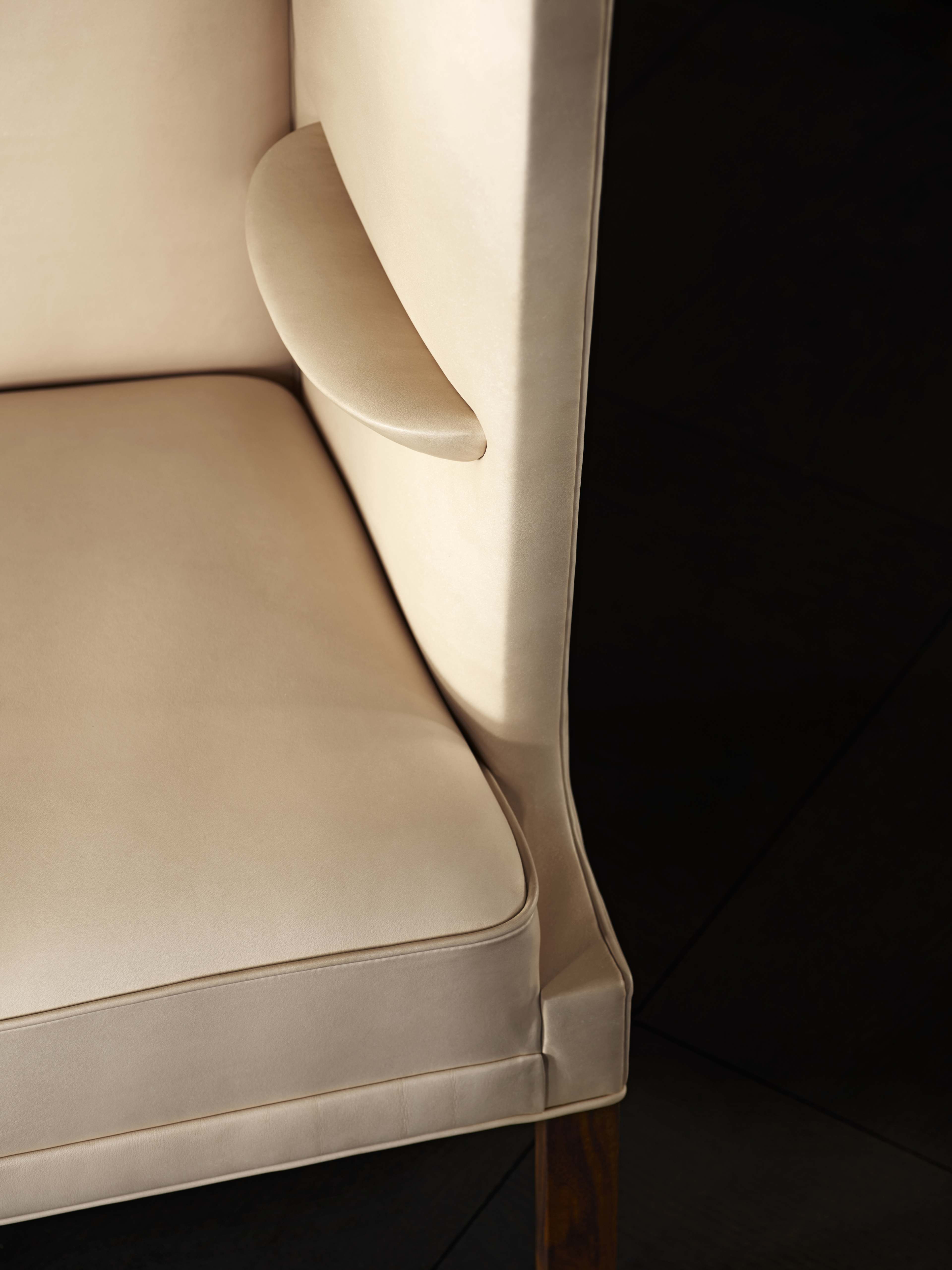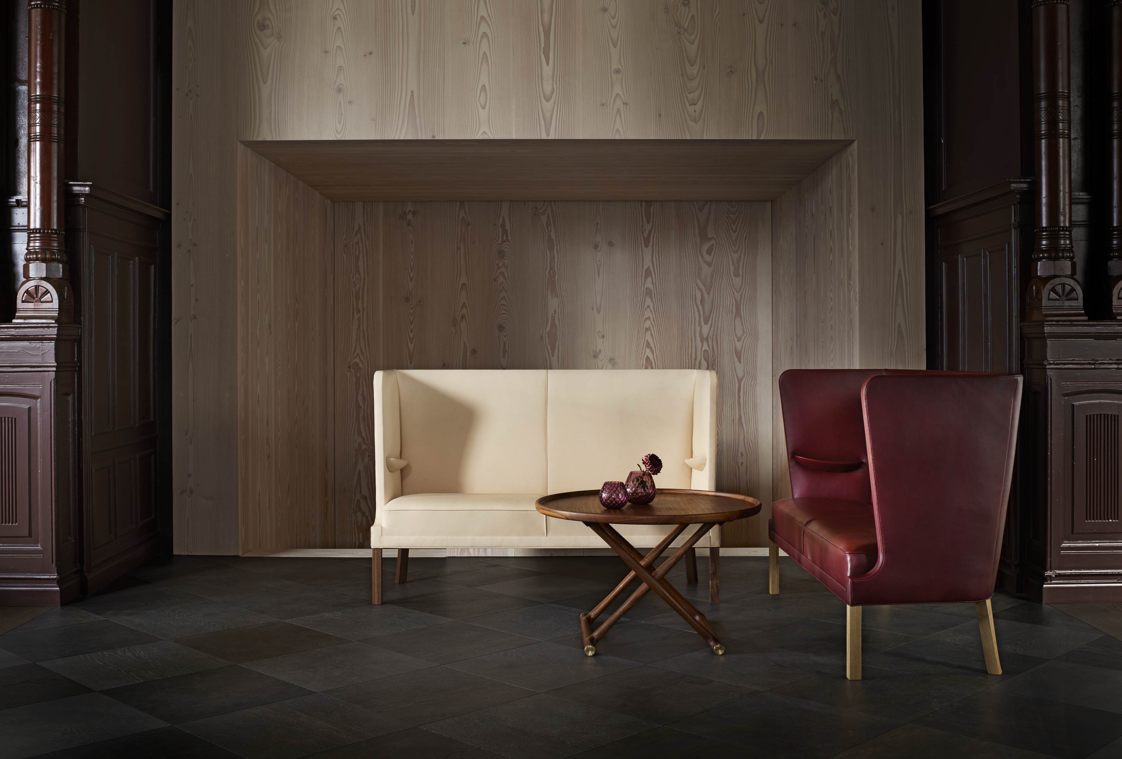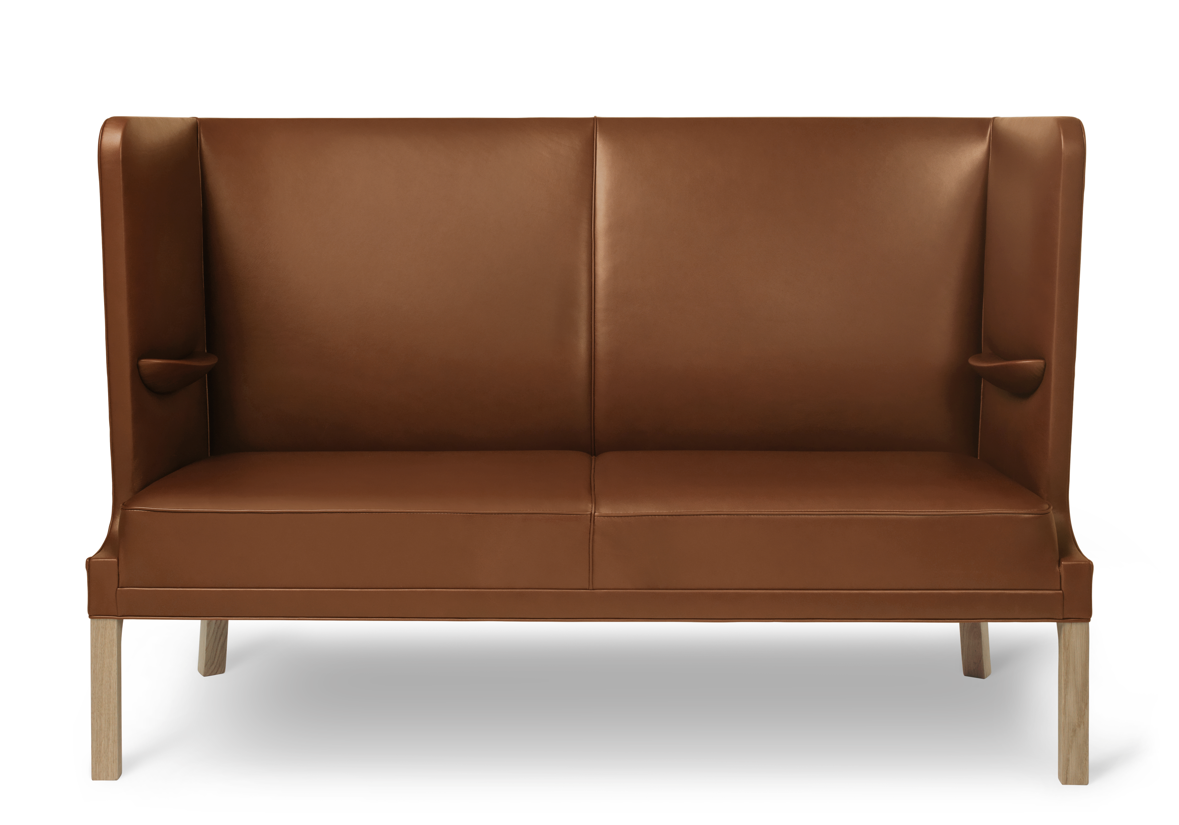 デンマークを代表する家具職人、フリッツ・へニングセンが1936年に発表した、クーペ・ソファ。2019年に復刻された、ヘニングセンの独創性溢れるデザインの一つです。ヘニングセンの情熱的な性格と細部にまでこだわるクラフトマンシップが映えます。 肩の高さまである背とサイドパネル、アングルの付いた後ろ脚、内側にさりげなく取付けられた美しいアーム。フリッツ・ヘニングセンならではの美しいプロポーションが映えるデザインの一つです。コペンハーゲン家具職人ギルド展で発表されたクーペ・ソファ。ヘニングセンの素材への深い造詣と高い職人技術によるデザインです。 今回の復刻では、クーペ・ソファのオリジナルデザインを忠実に再現。ヘニングセンが求めたクラフトマンシップにこだわり製作しています。内部のフレームはビーチ材。パディング加工と小さなポケットスプリングが、秀逸な座り心地を創り出しています。 素材は、オーク材またはウォルナット材、仕上げは各種。最高級の皮革またはファブリックを用いた張り加工には高い技術が要求されます。印象的でありながら、さり気なく空間を演出するソファです。