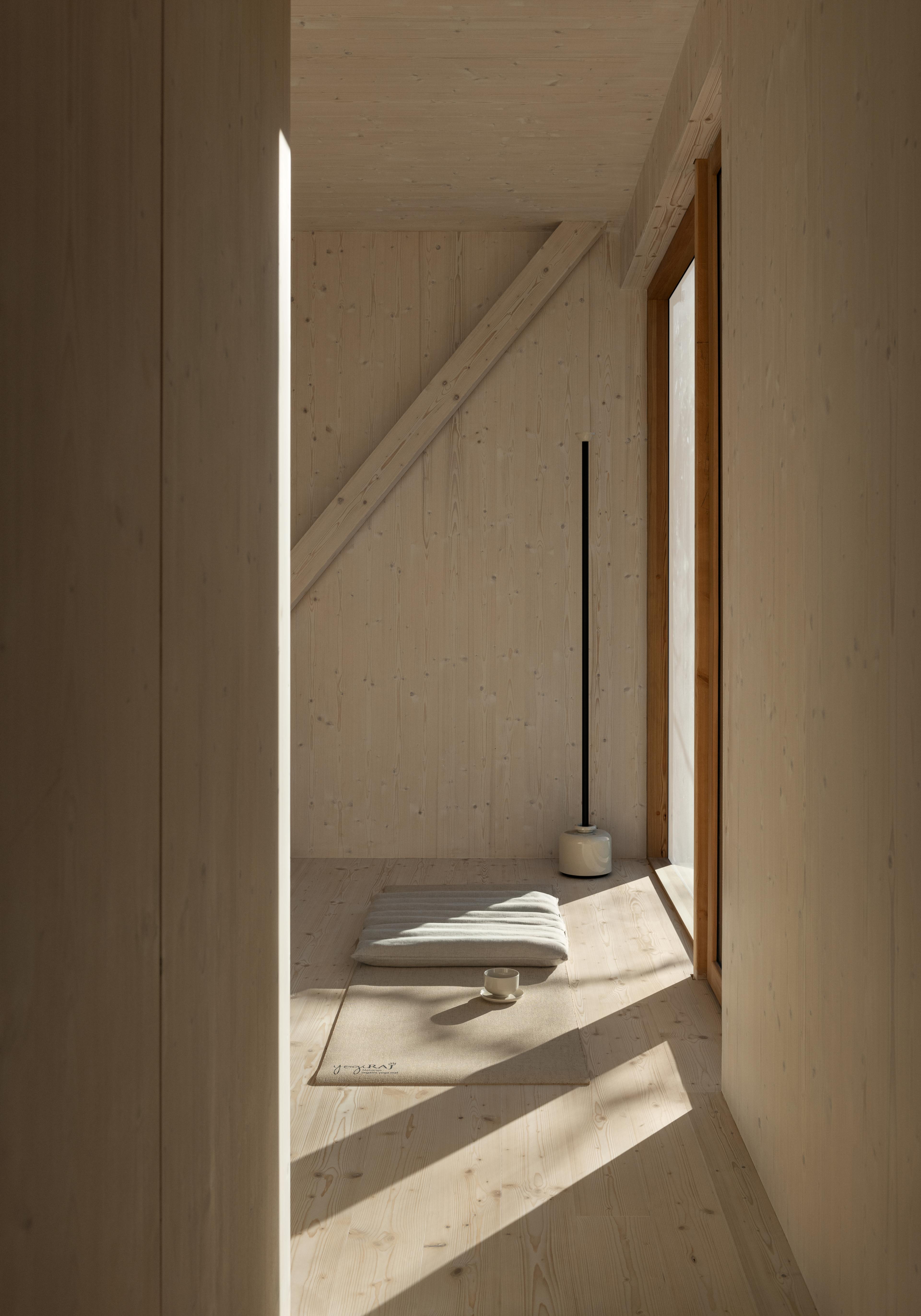 「ヴィラ スヴァルトガーン」は、この持続可能性という理念にのっとり、修理と維持が可能な天然素材のみを使って建築した家屋です。建築家ダニエル・ウィドマンとの協働により、二人は現代の生活に対応しながらも豊かなクラフトマンシップの伝統を讃える、安らかでミニマルな空間を設計しました。壁、天井、床は、主にスウェーデン産のトウヒを使用し、15世紀にさかのぼる地元の製法に従って蜜蝋と亜麻仁油を混ぜた伝統的な処理剤で表面加工しました。