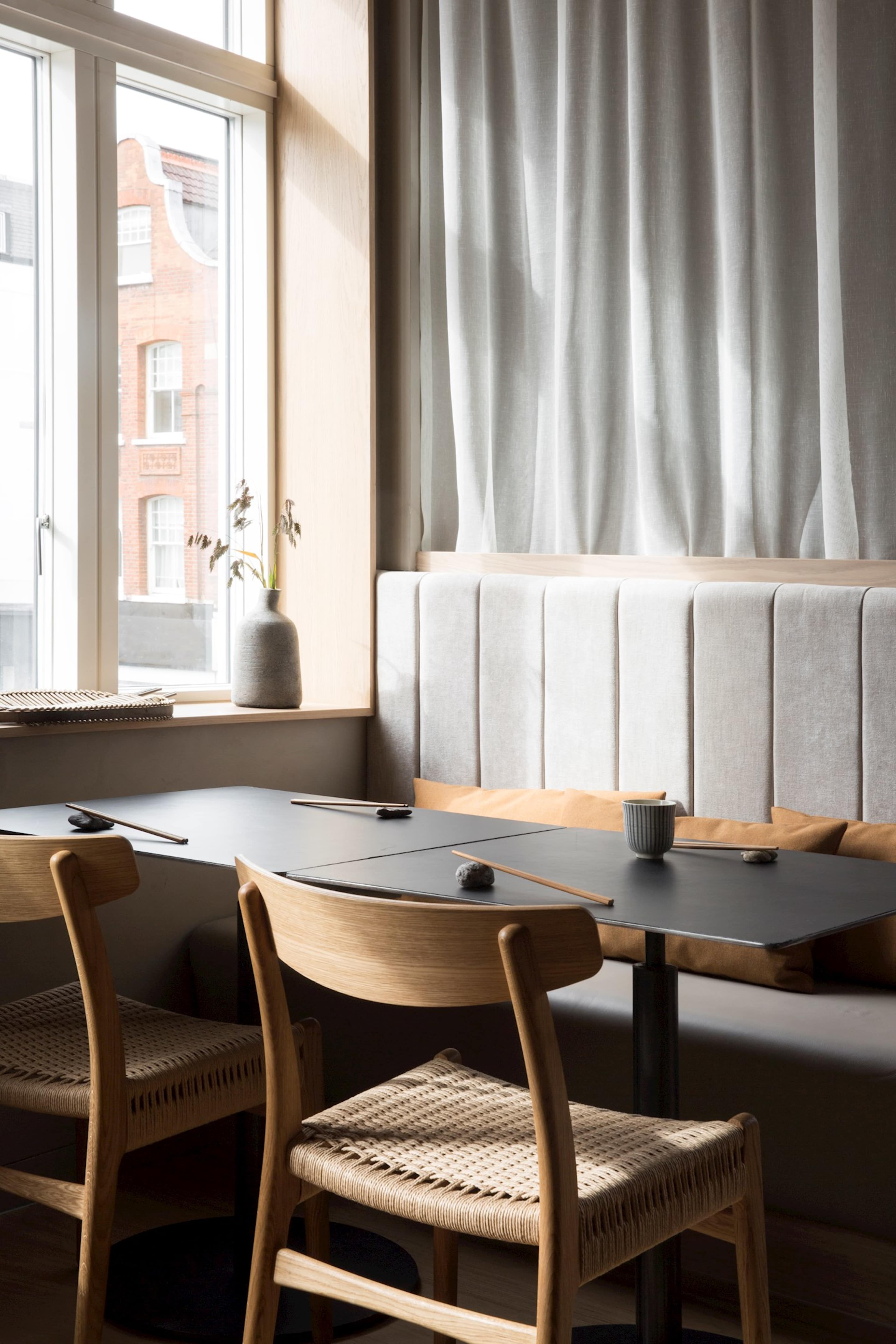 ロンドンのキングスロードに開業したレストラン 「Sticks’n’Sushi」。デザインを手がけたNorm Architectsは、ハンス J. ウェグナーの家具でレストラン全体に共通するアイデンティティを与えています。