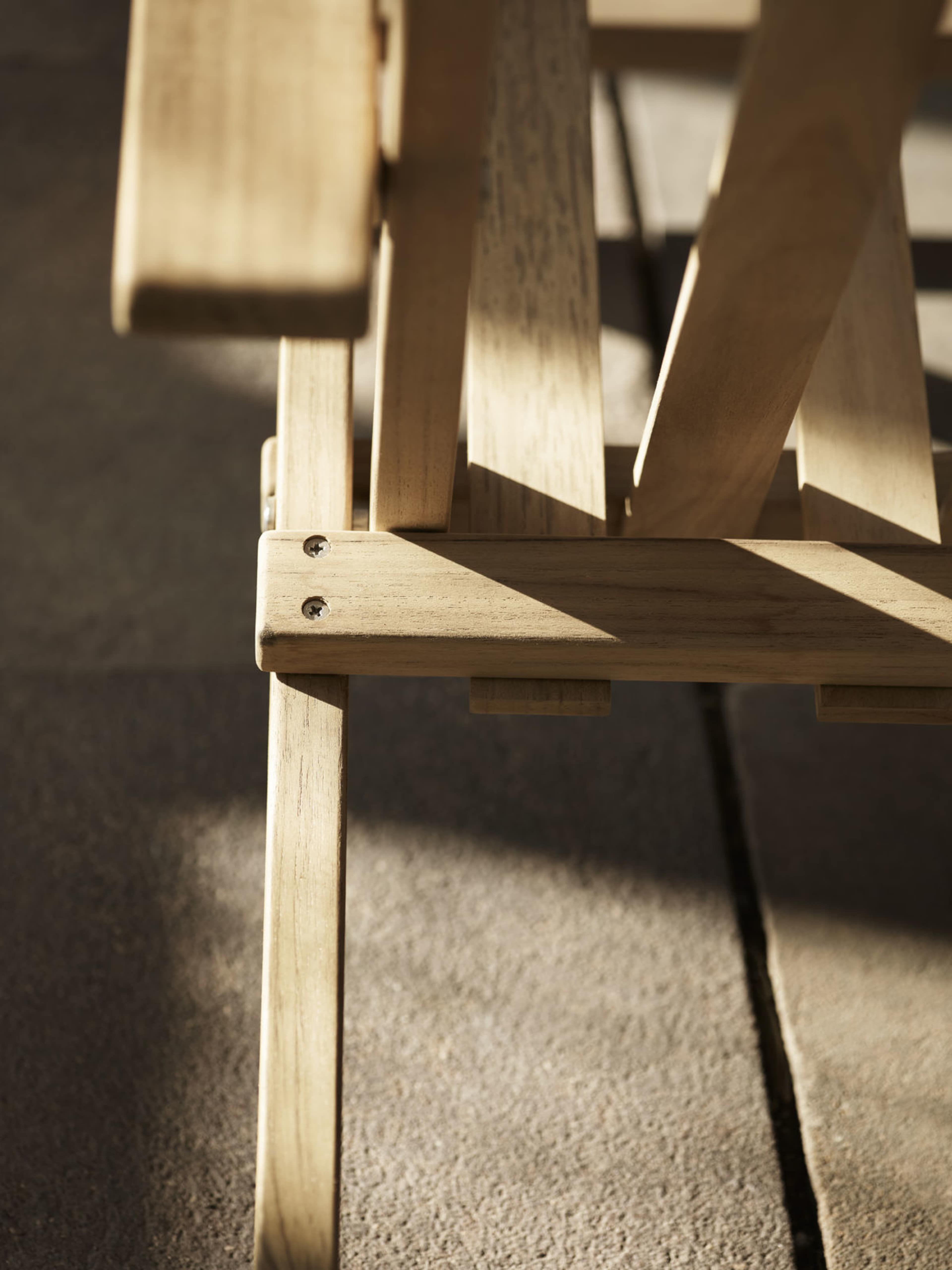 素材は天然油分を含有する、無塗装のFSC®認証のチーク材。高い耐候性と耐久性を備え、美しく経年変化する素材としてよく知られています。丸く面取り加工されたエッジと等間隔に施されたスチール製のネジは、シリーズを構成する全製品に共通する意匠。モーエンセンらしい細部へのこだわりです。チーク材を用いたコンパクトなデザインは、屋外のみならず、屋内でも魅力を十分に発揮します。