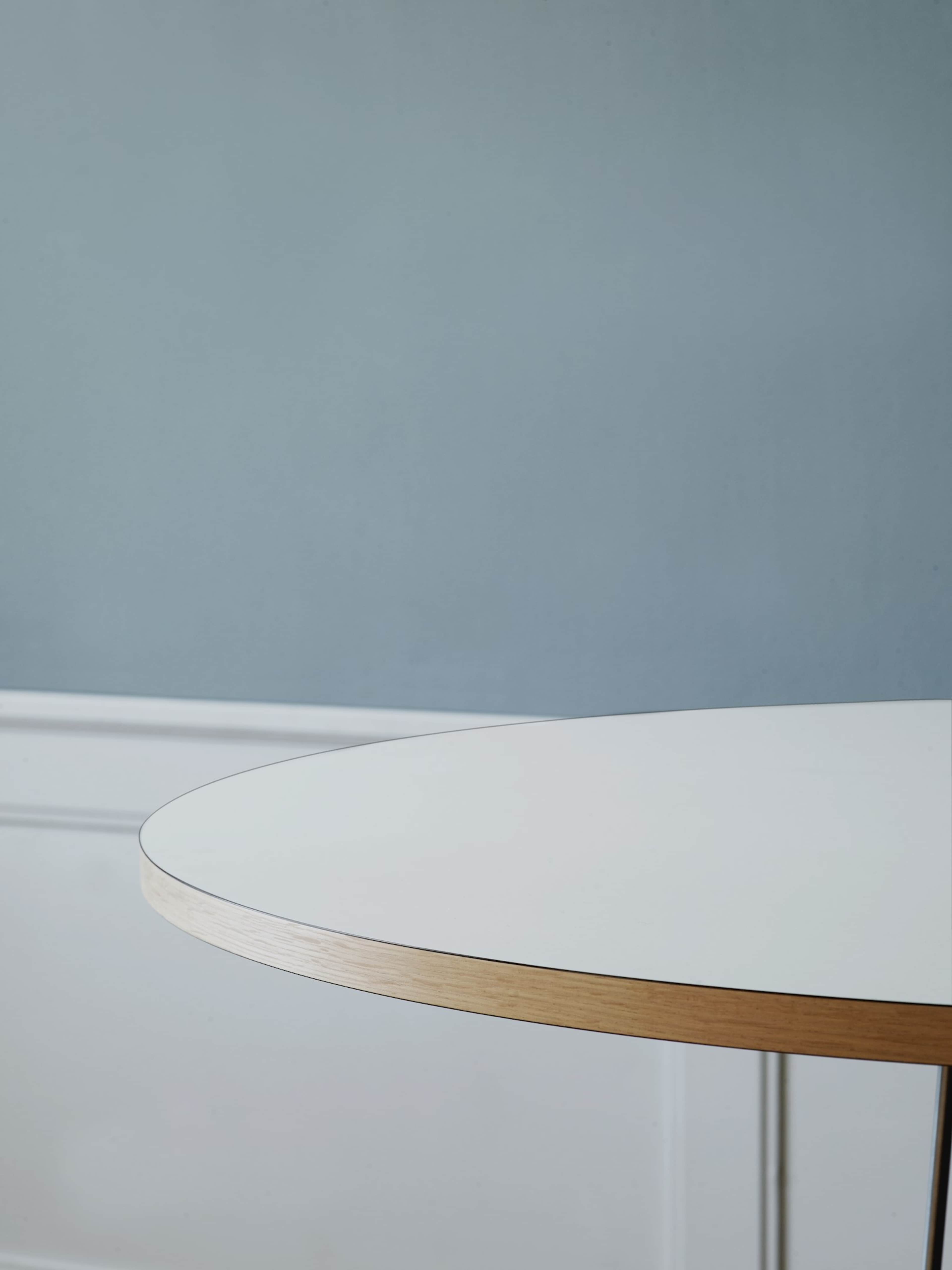 テーブルの脚を中央にまとめることで、使用時に脚のスペースを最大に確保するなど様々な配慮がされています。人の交流とコミュニケーションを考慮した円形の天板もこだわりの一つです。