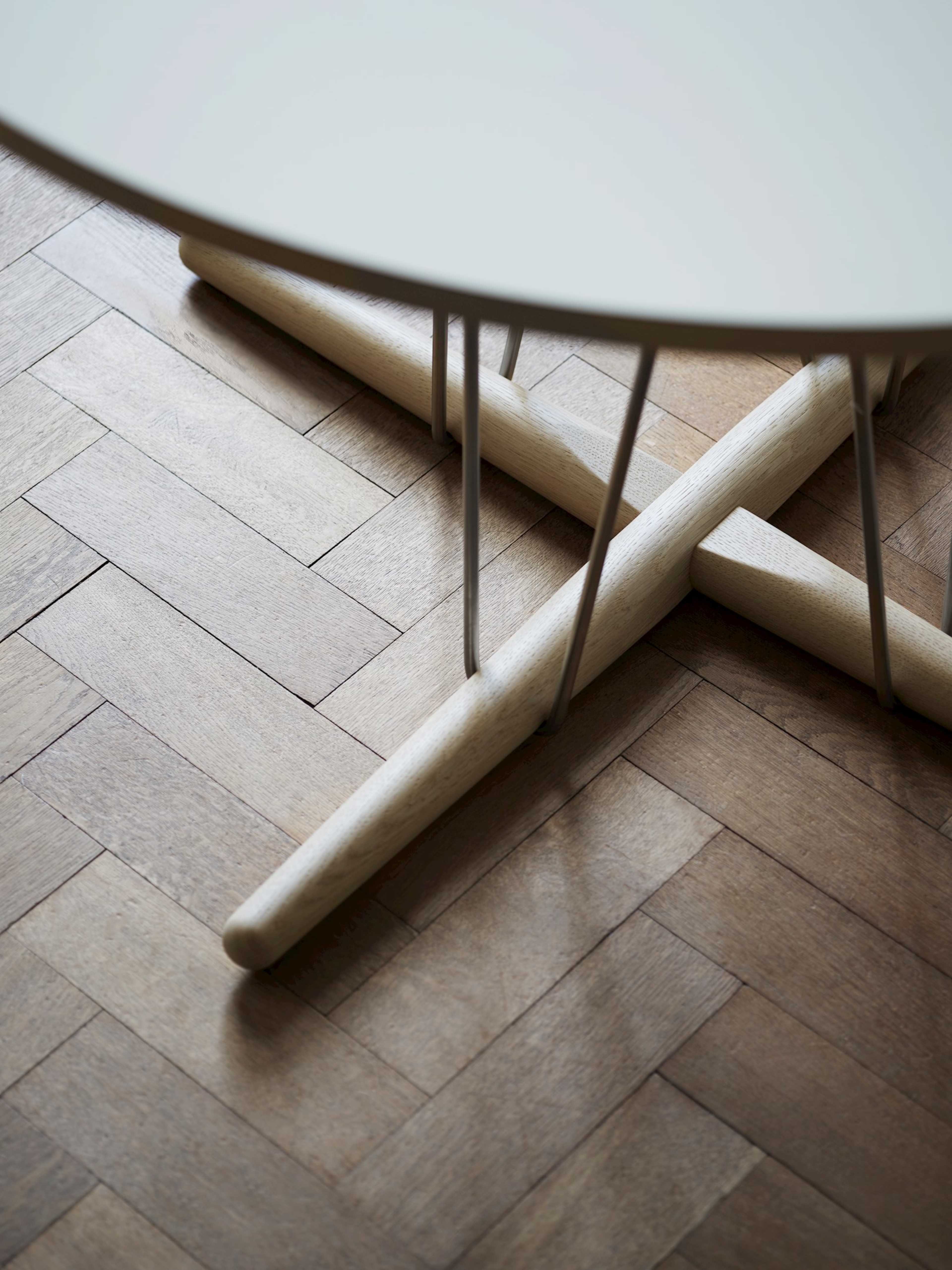 カール・ハンセン&サンが継承する名作デザイン、職人技巧、そして美学を考慮し開発された、知的で革新的なエンブレイス・シリーズ。新たにラインナップされたテーブルも例外ではありません。木材とスチールという異素材のコンビネーション、そして彫刻を思わせる印象的なフォルム。機能は言うまでもありません。
