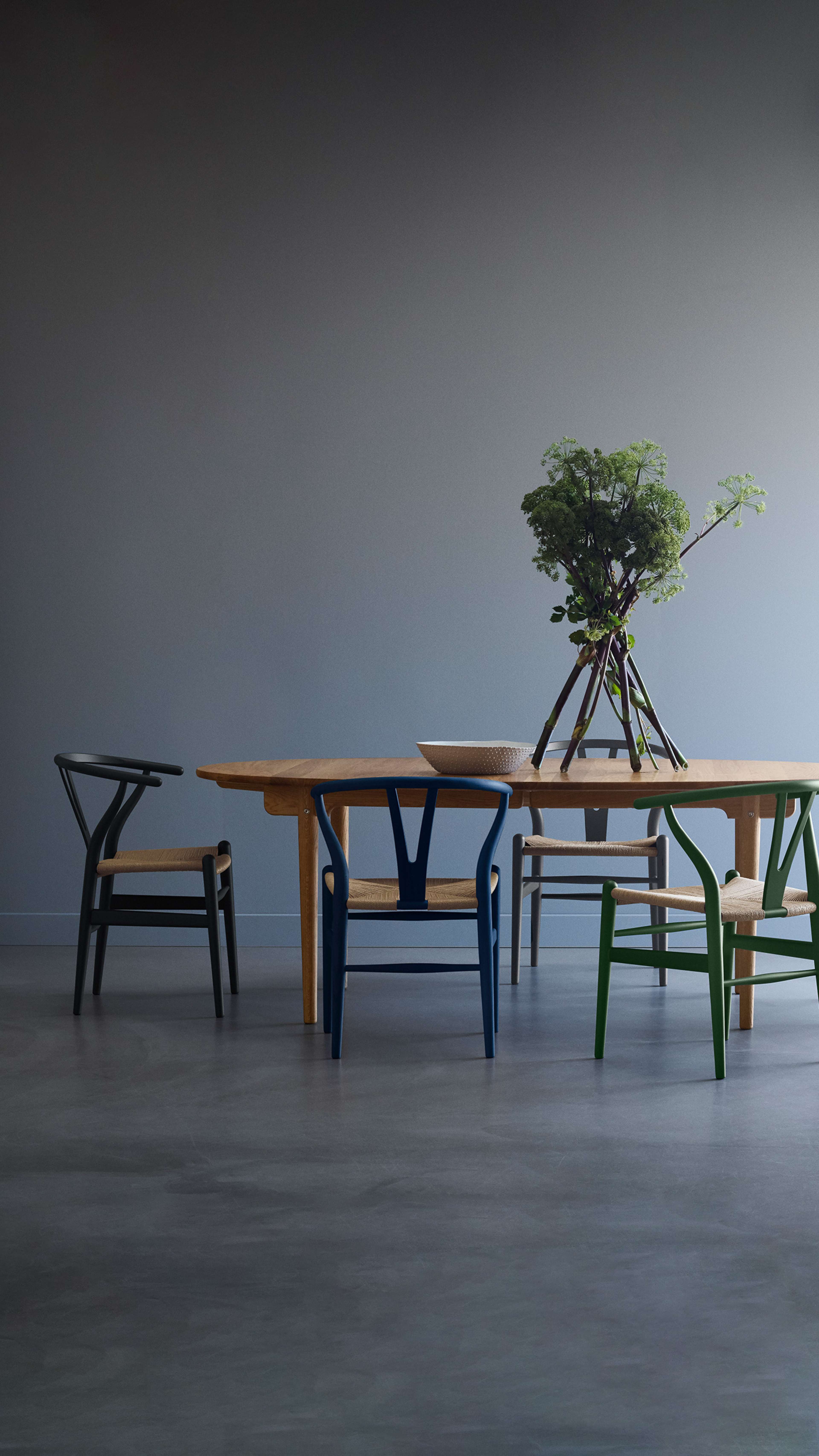 名作CH24 Yチェア、現代的なマットブルーでイメージを刷新。