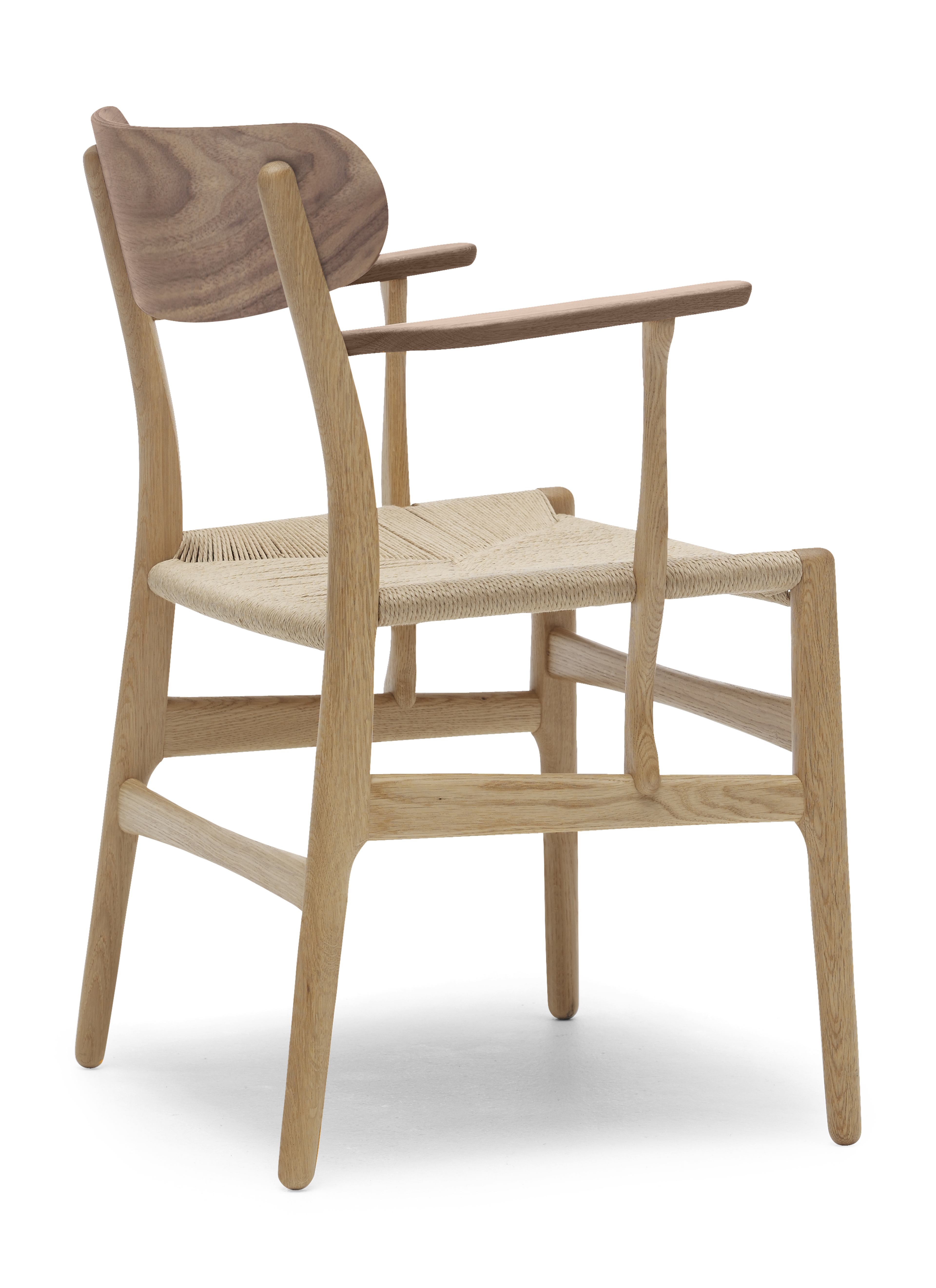 De eetkamerstoel CH26 van Hans J. Wegner werd in productie genomen door Carl Hansen & Søn in nauwe samenwerking met de Hans J. Wegner Design Studio volgens de originele werktekening van Wegner. De stoel maakt deel uit van een serie iconische stoelen die Wegner heeft gemaakt voor Carl Hansen & Søn. Samen met de CH22 Lounge Chair creëerde Wegner een werktekening om de vorm van de loungestoel te vertalen naar een eetkamerstoel, de CH26. Toch maakte hij zelfs nooit een model van de stoel, die dan ook decennialang onbekend bleef bij het publiek. In 2016 — hetzelfde jaar als van de herintroductie van de CH22 — bracht Carl Hansen & Søn het CH26-ontwerp tot leven. De eetkamerstoel CH26 lijkt sterk op de lounge-uitvoering met zijn organische vormen, verfijnde rugleuning en handgeweven zitting. De stoel heeft verhoudingen die ideaal zijn voor langere periodes zitten aan een eettafel of een bureau.