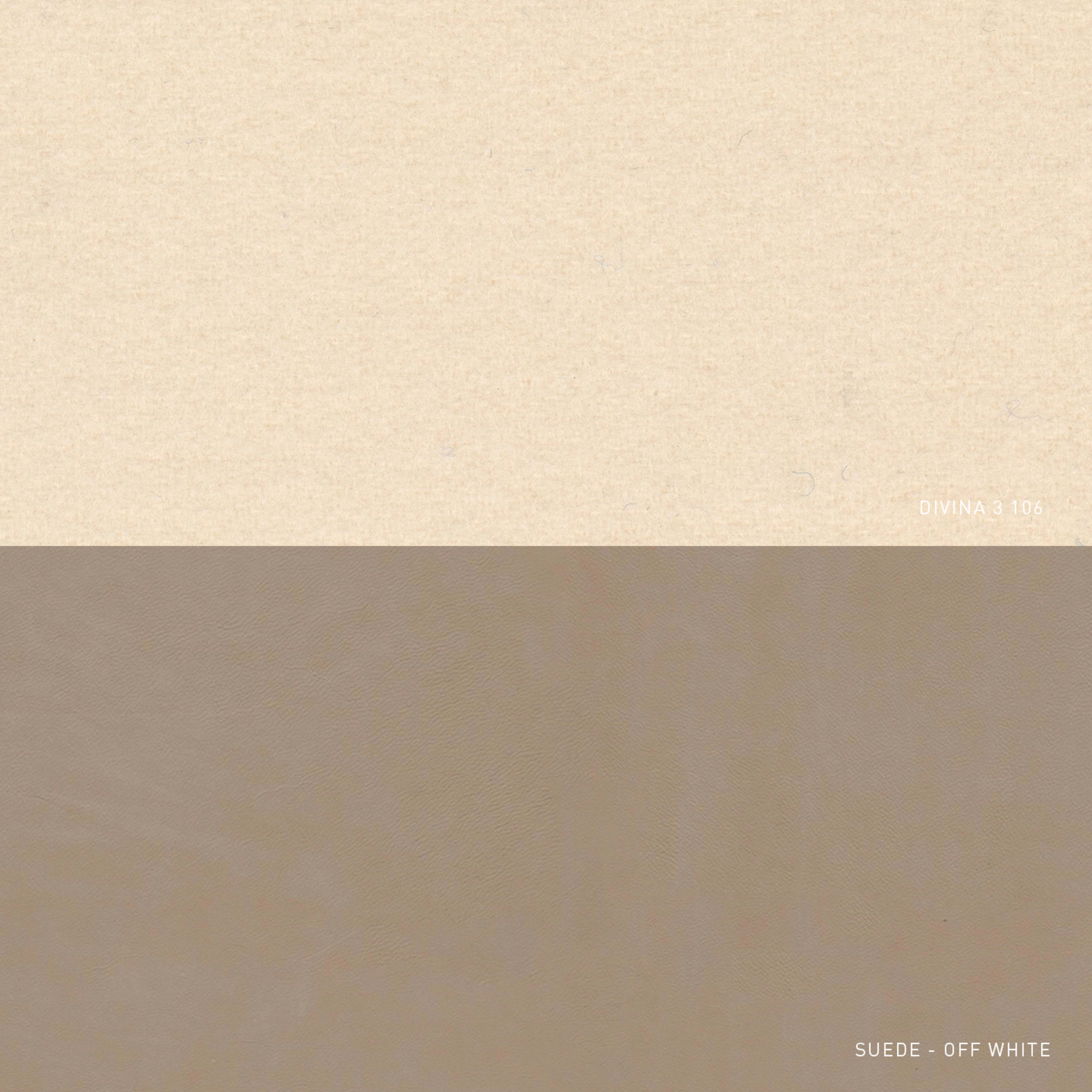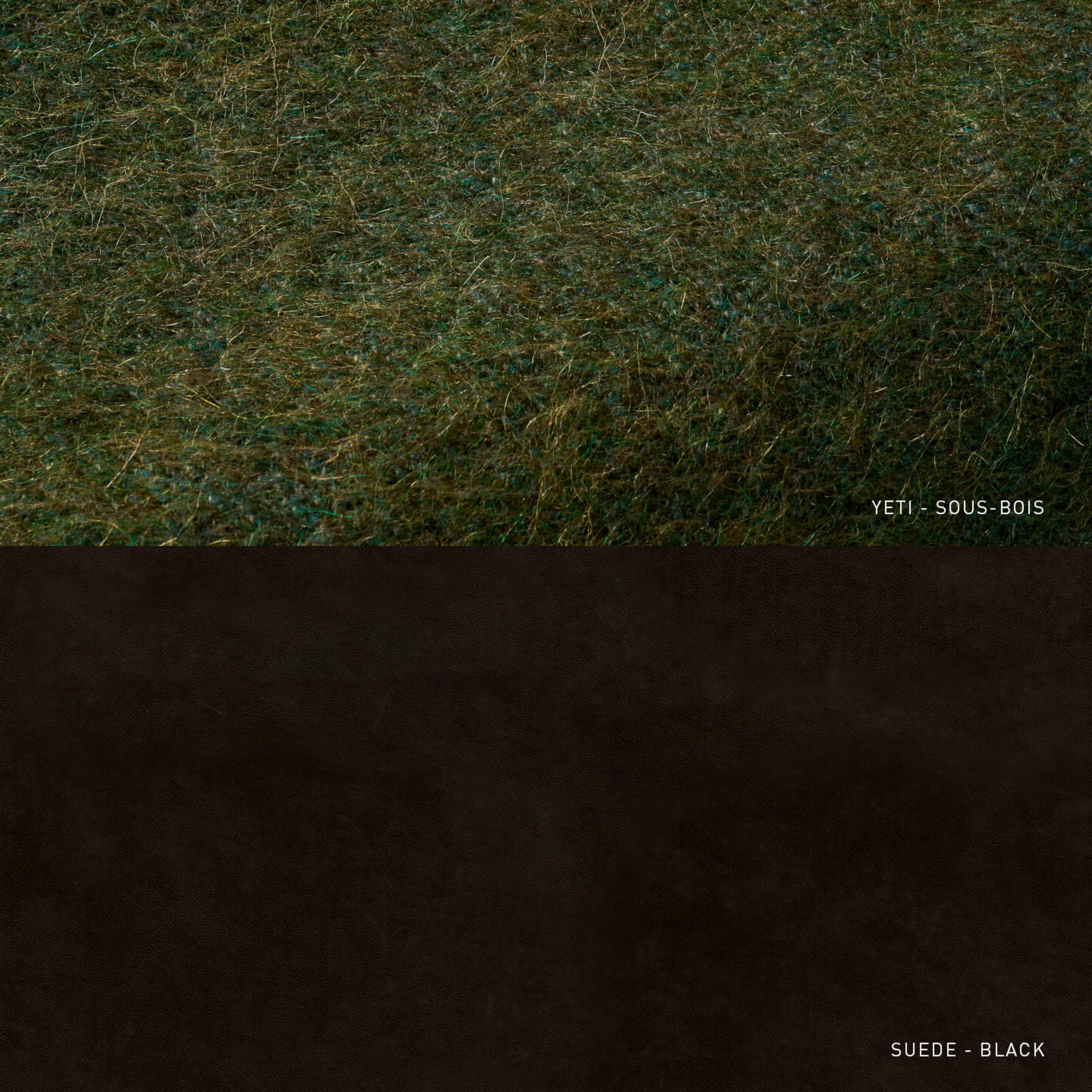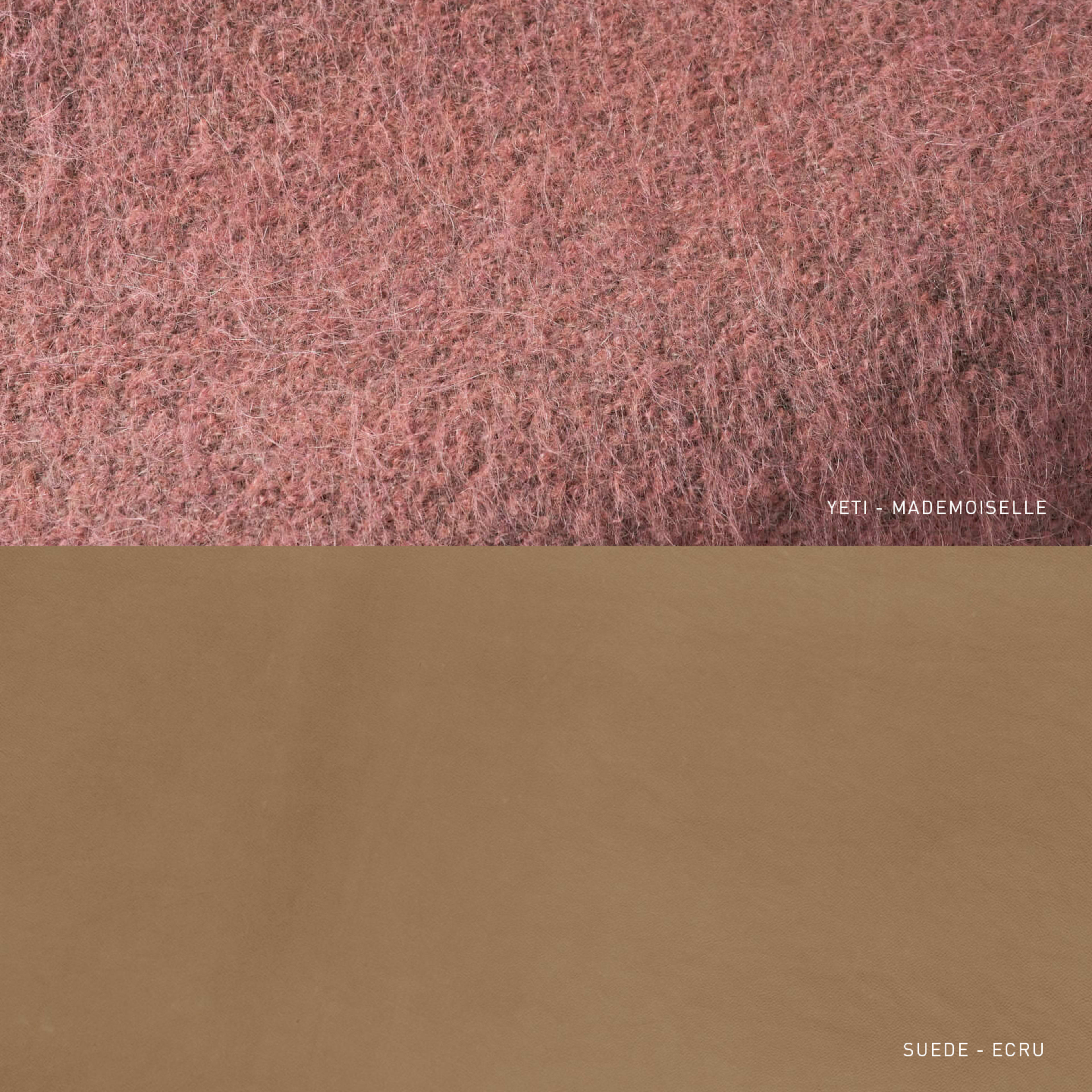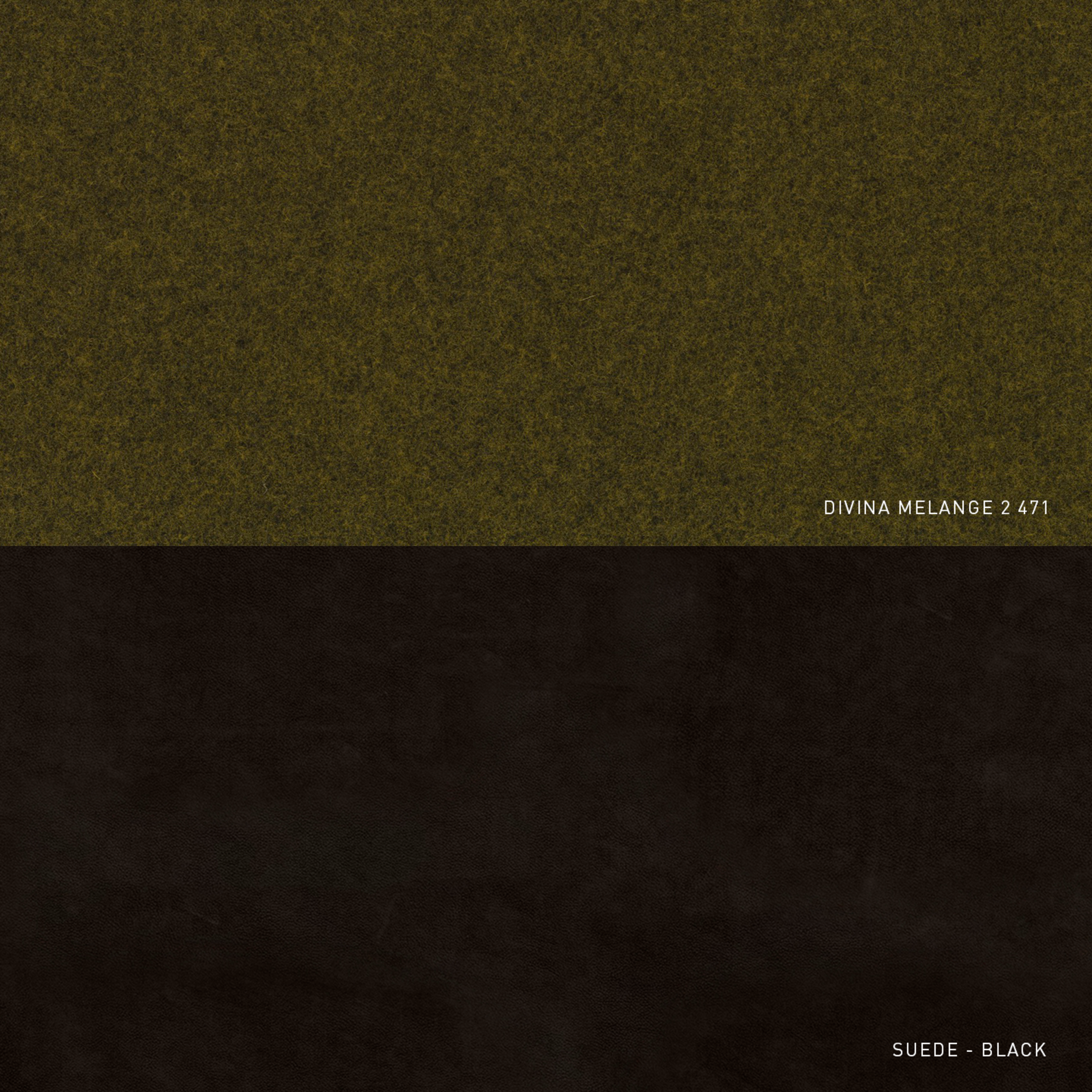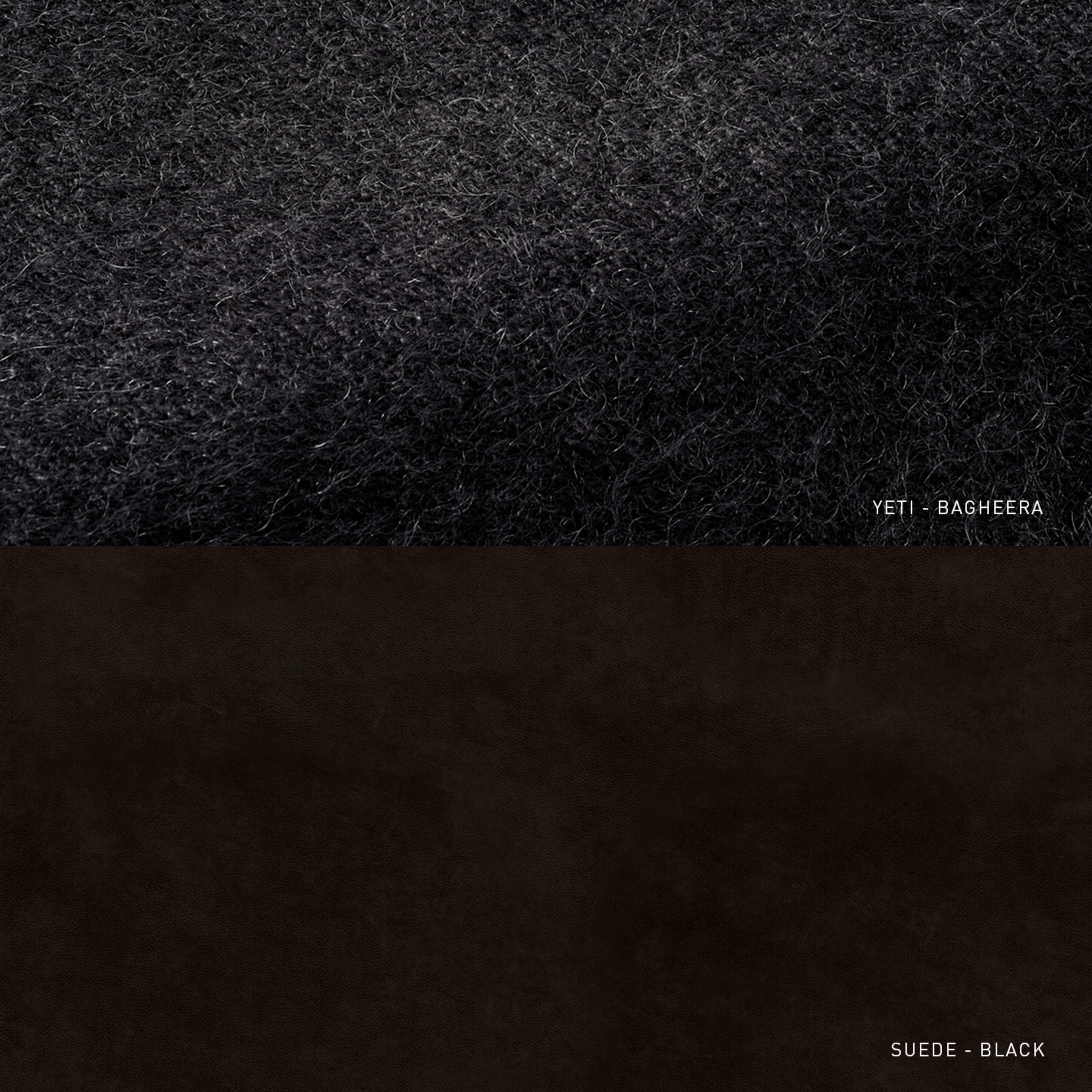 Verkrijgbaar in twee opties; Yeti & suède - een gemengde stof van mohair, wol en alpaca met lederen suède details is geschikt voor huizen, en Divina & suède - een vilten wollen stof met lederen suède details is geschikt voor robuustere omgevingen.