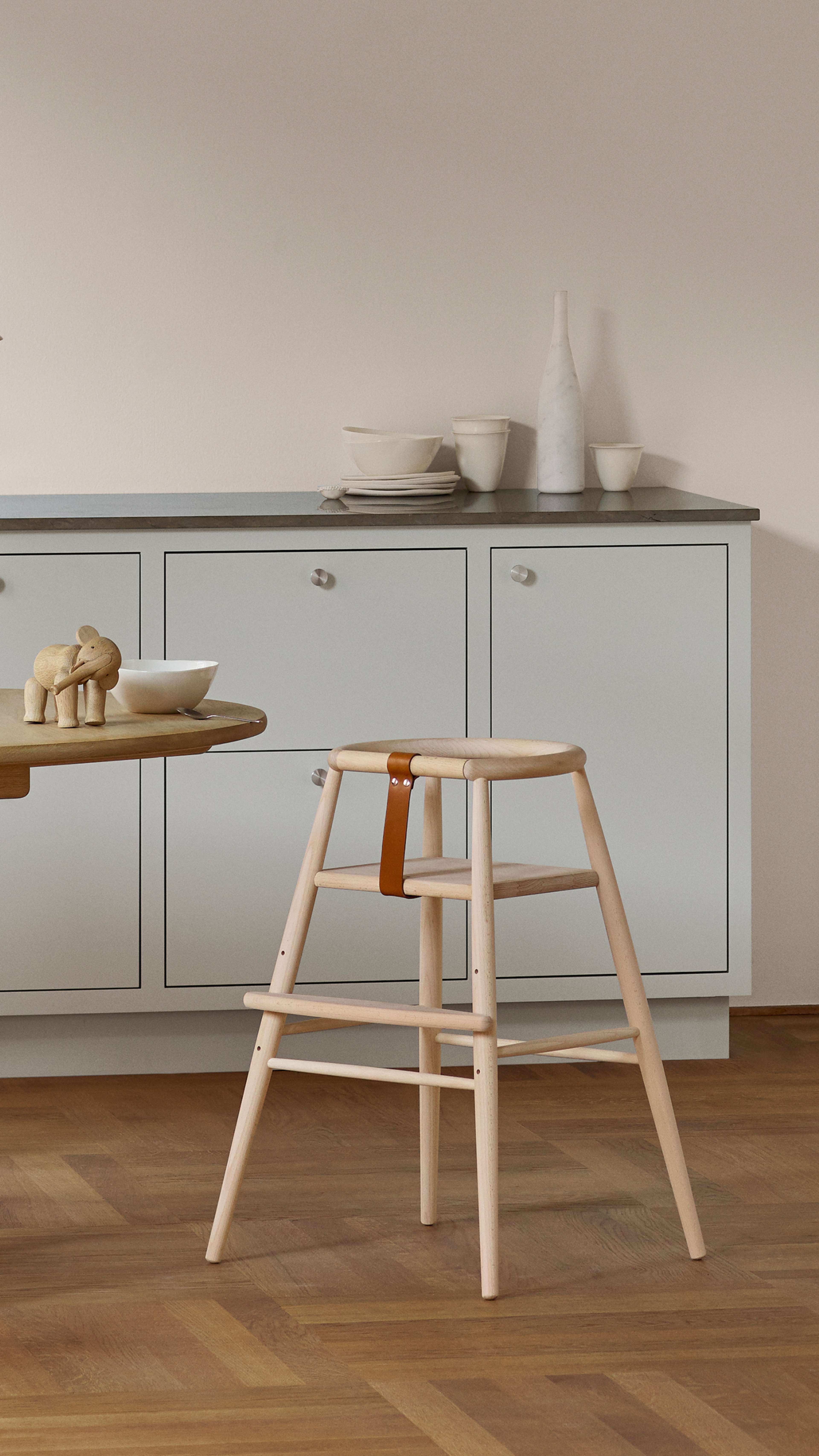 Barnmöbler ska framför allt vara funktionella och underlätta vardagen för barnfamiljer, men de ska också vara visuellt och estetiskt tilltalande. Designerparet Nanna och Jørgen Ditzel, som i dag anses vara bland de främsta representanterna inom dansk design, var väl medvetna om detta. Under hela sin karriär vågade de utmana designtraditioner och experimentera med nya material samtidigt som de skapade en rad funktionella möbler – däribland ND54 High Chair. De designade barnstolen 1954 eftersom de själva behövde en funktionell och vacker stol till sina egna tvillingflickor som föddes samma år.