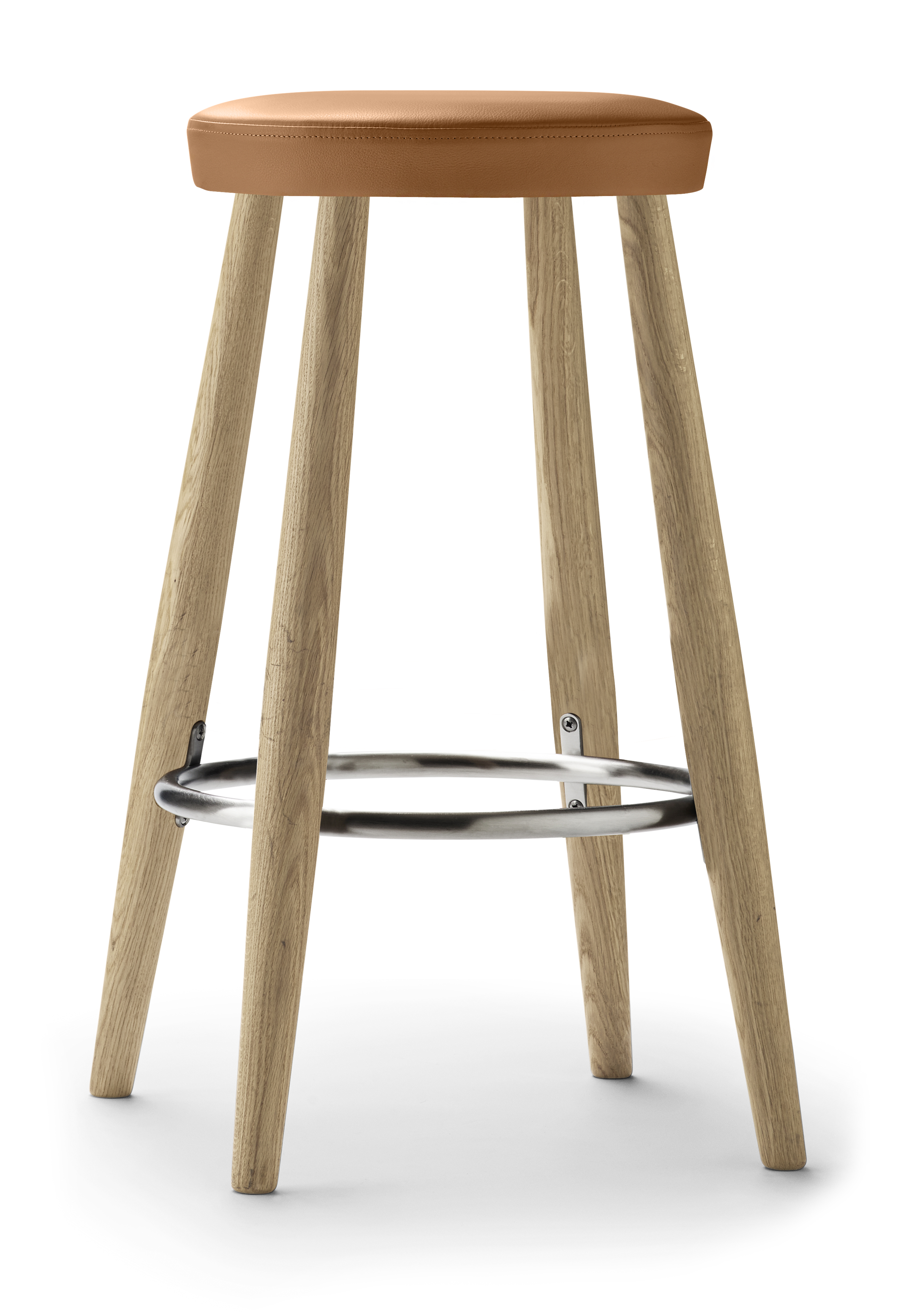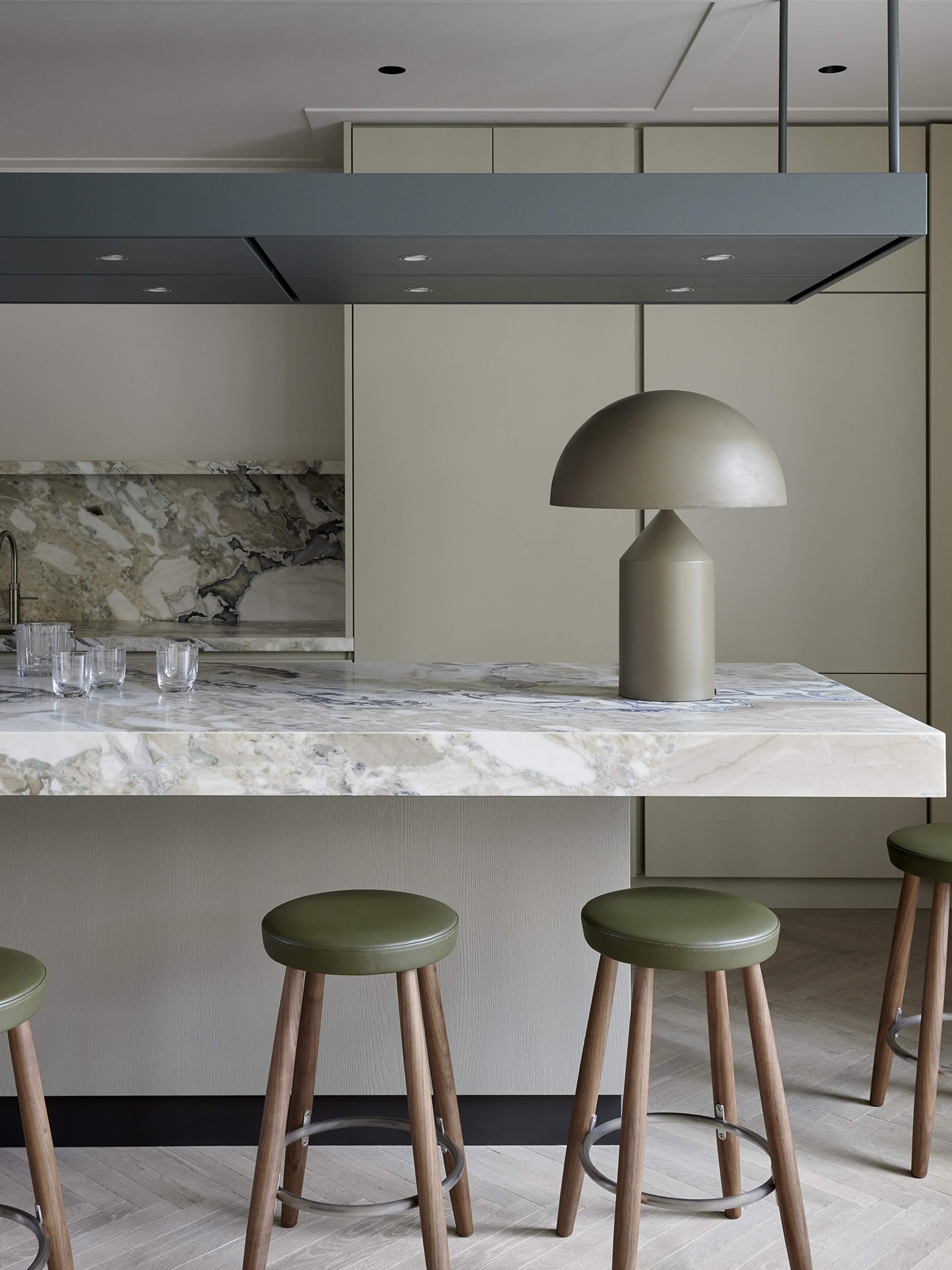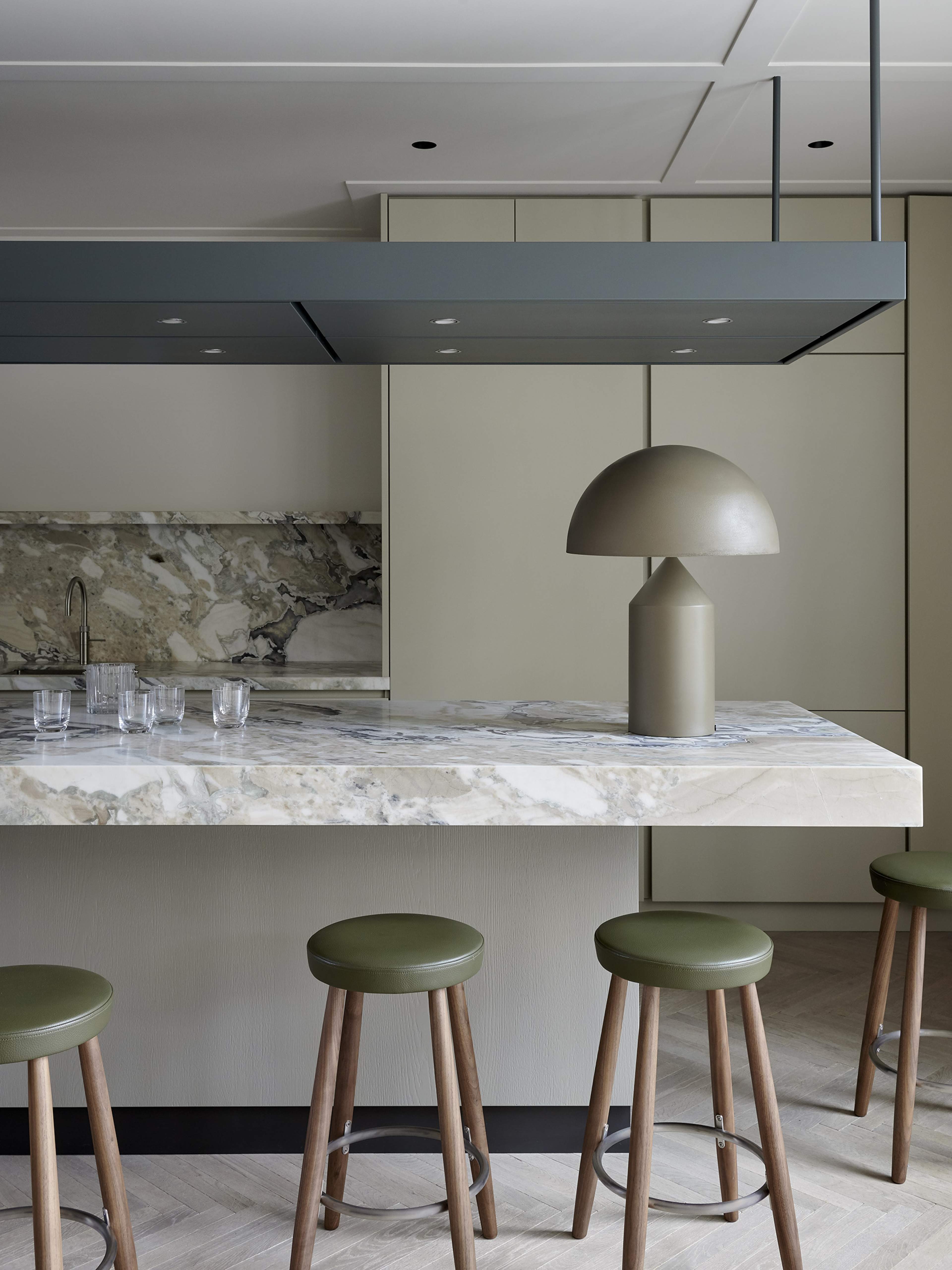 ”Vi letade efter en enkel design som utgjorde en lekfull motpol till kökets strama linjer”, förklarar han. ”Pallarnas uppgift var att mjuka upp de material och färger som användes.”