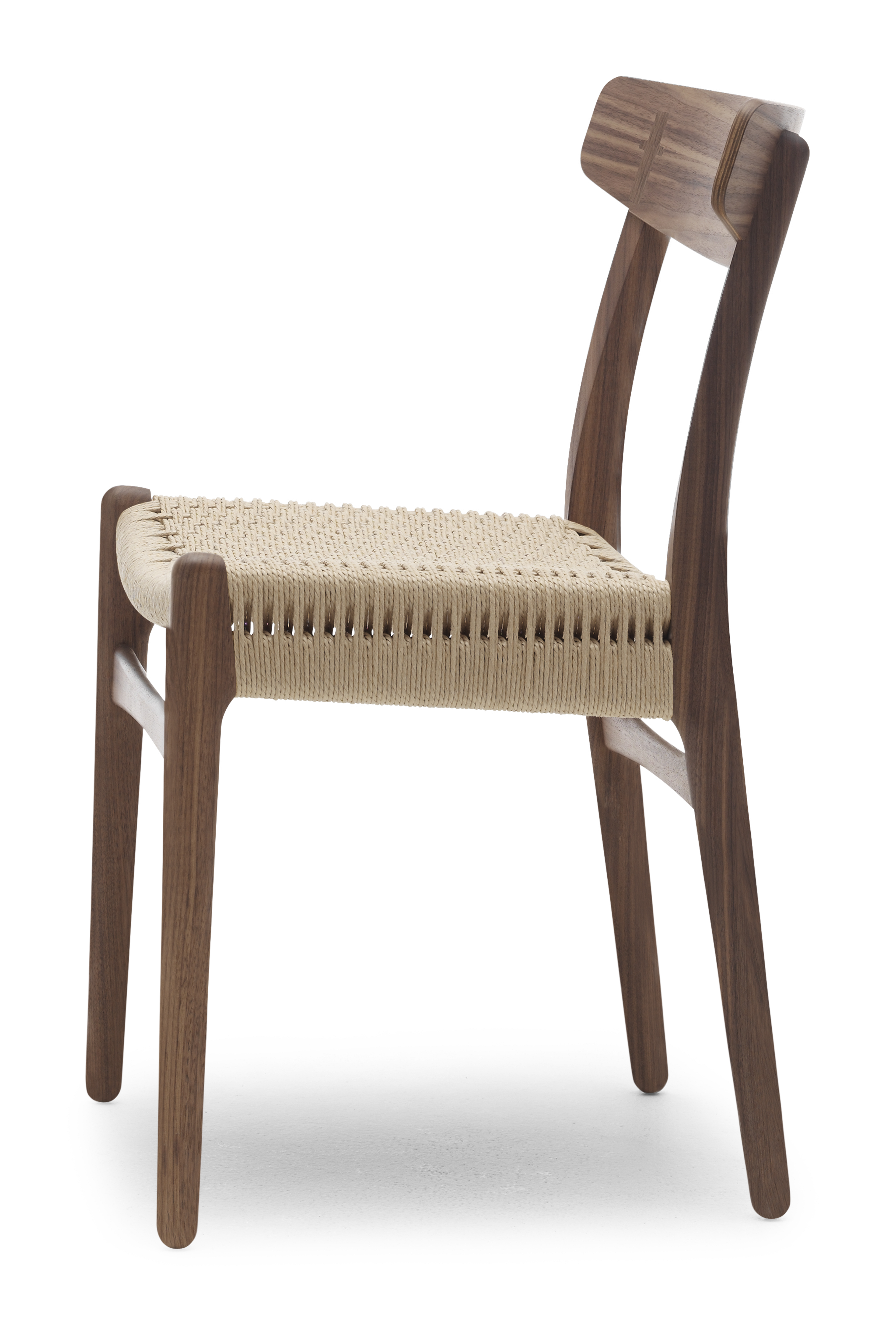 CH23 Dining Chair var en av de första stolarna som Hans J. Wegner designade exklusivt för Carl Hansen & Søn 1950. De möbler han skapade vid denna tid var inte bara unika utan satte med sitt konstnärliga uttryck och sin ergonomiska form också nya standarder för modern möbeldesign. Även om CH23 Chair kan verka okomplicerad vid första anblicken, innehåller den många utsökta och sofistikerade detaljer, däribland de eleganta korsformade täcklocken på ryggstödet, en dubbelvävd sits och välvda bakben som säkerställer optimal stabilitet. Carl Hansen & Søn nylanserade CH23 2017 och gjorde återigen de första mästerverken till en del av sin kollektion. Som alltid förblir designen trogen Wegners ursprungliga, handritade skisser, med alla estetiska och strukturella komponenter intakta.