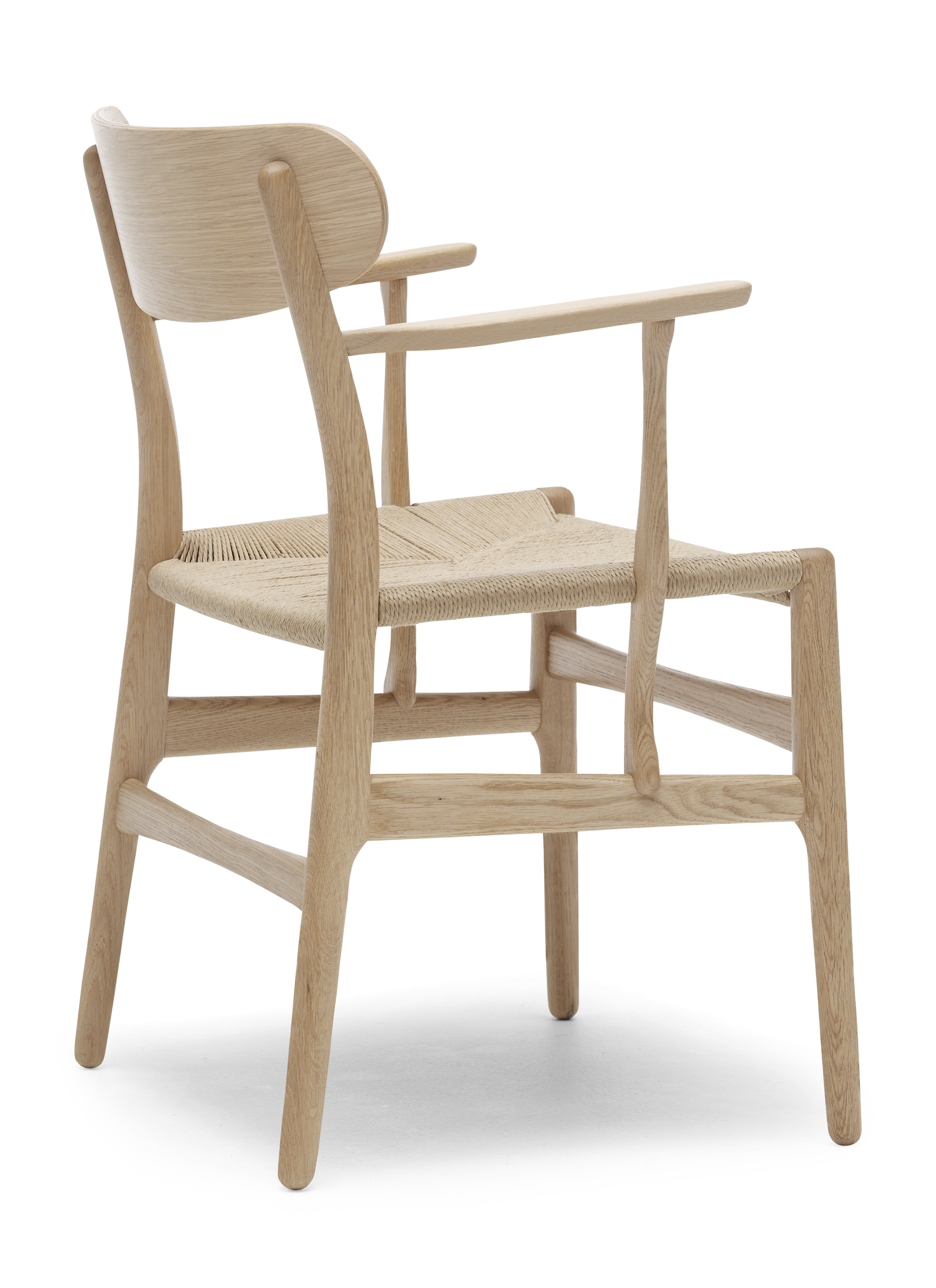 CH26 Dining Chair av Hans J. Wegner togs i produktion av Carl Hansen & Søn i nära samarbete med Hans J. Wegner Design Studio och i enlighet med Wegners ursprungliga ritning. Stolen ingår i en serie klassiska stolar som Wegner skapade åt Carl Hansen & Søn. Wegner gjorde en ritning för att översätta formen hos CH22 Lounge Chair till en matstol. Det blev CH26. Däremot tillverkade han aldrig någon prototyp av karmstolen och den förblev okänd för allmänheten i årtionden. 2016 – samma år som CH22 nylanserades – väckte Carl Hansen & Søn CH26 till liv. CH26 Dining Chair liknar fåtöljversionen med sina organiska former, raffinerade ryggstöd och handvävda sits och har proportioner som är idealiska när man ska sitta länge vid ett matbord eller skrivbord