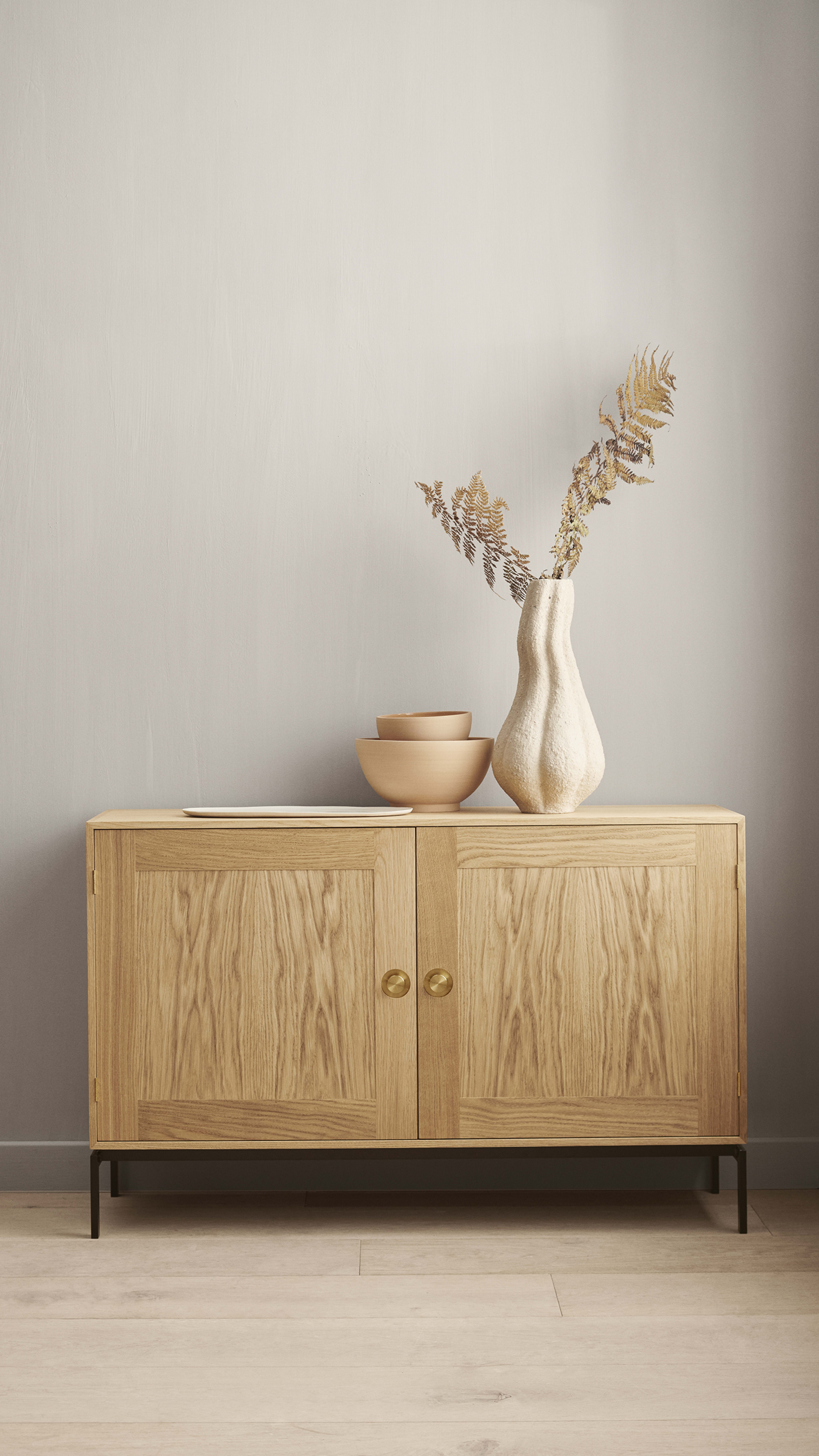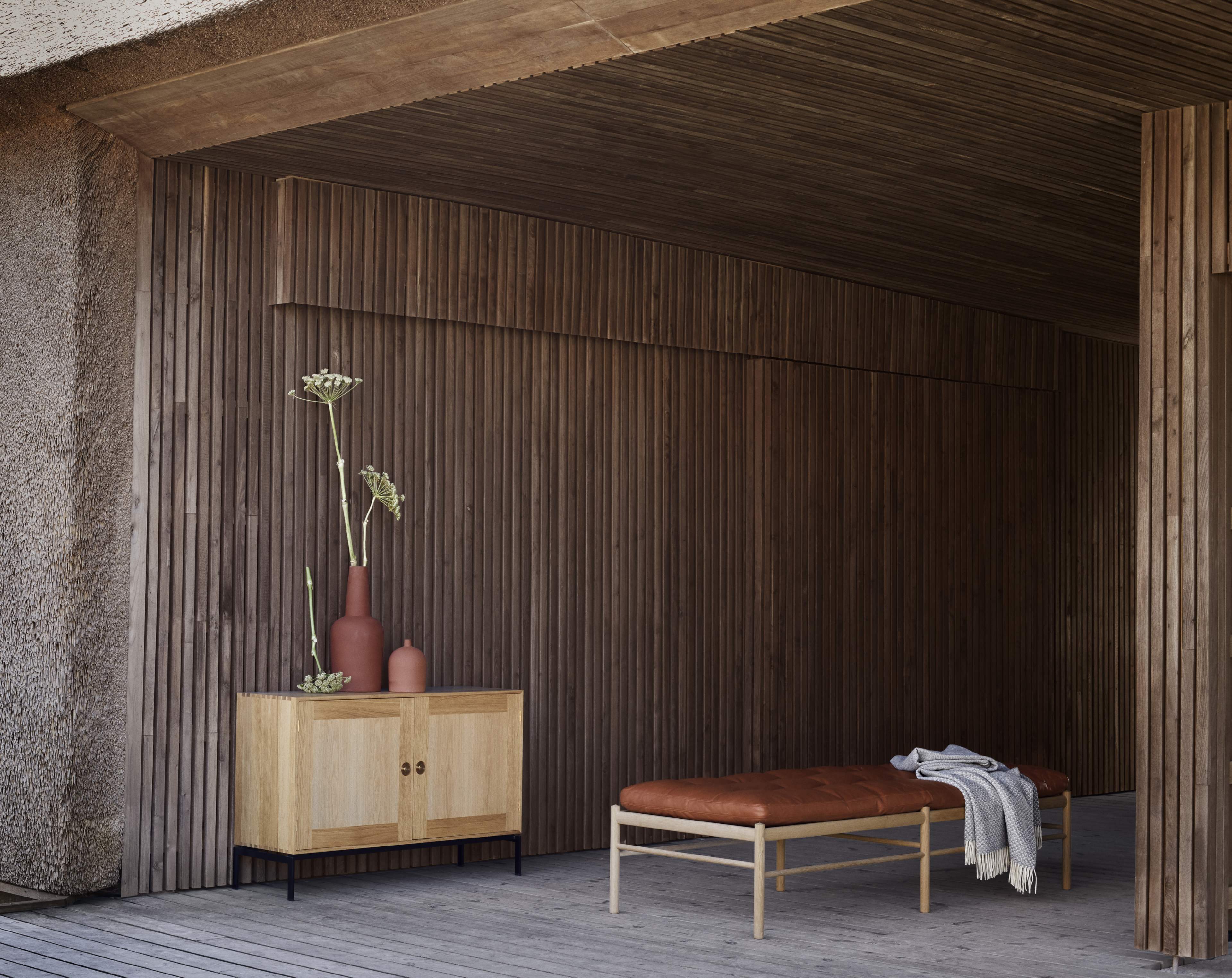 Hyllan, som ritades 1963 av Preben Fabricius och Jørgen Kastholm, är resultatet av duons gemensamma intresse för funktionell, minimalistisk design med fokus på proportioner, handgjorda detaljer och naturmaterial. FK63 Bookcase System i FSC®-certifierad massiv ek, som behandlas med olja för att framhäva träets struktur och ådror, symboliserar formgivarnas kompromisslösa inställning till design. Möbelns omsorgsfullt utformade snickeridetaljer inkluderar skåpdörrar i full bredd med mässingshandtag och hyllor som kan väljas med utdragbara lådor – och båda kan naturligtvis anpassas för att möta växande behov. Hyllan finns i en väggmonterad eller fristående version, den senare vilar på ett slankt stativ av pulverlackerat stål.